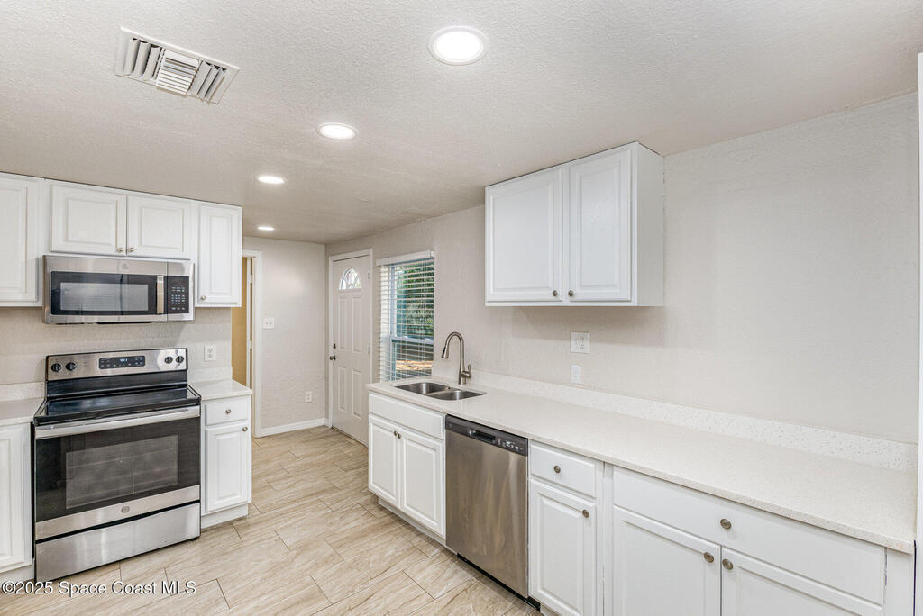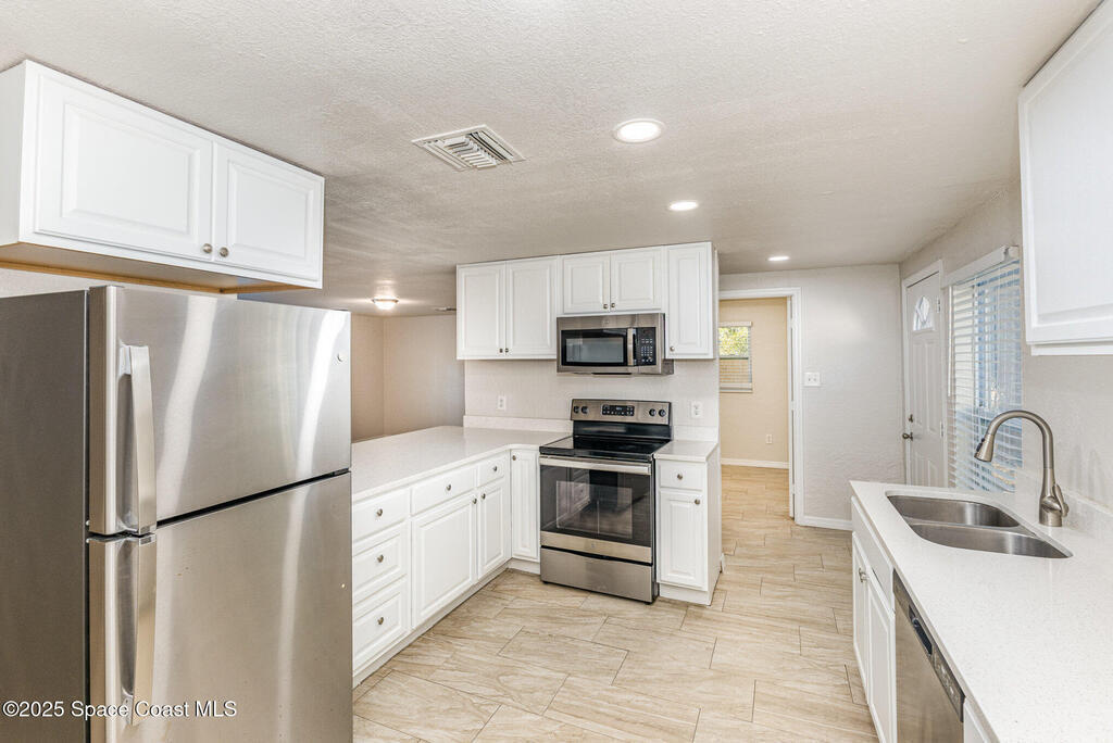 Welcome to your move-in-ready home in Palm Bay! This property boasts updated tile flooring throughout, a modern white kitchen featuring granite countertops, and stainless steel appliances. The spacious backyard is perfect for outdoor activities and relaxation. Located just minutes from shopping, dining, and entertainment options, you'll enjoy convenient access to Hammock Landing, parks, and recreational facilities. Plus, you're only about a 20-minute drive from the beautiful shores of Indialantic Beach. Don't miss the opportunity to make this well-maintained home yours!