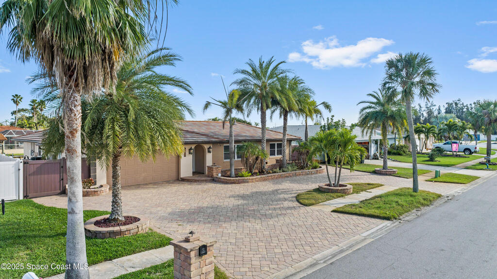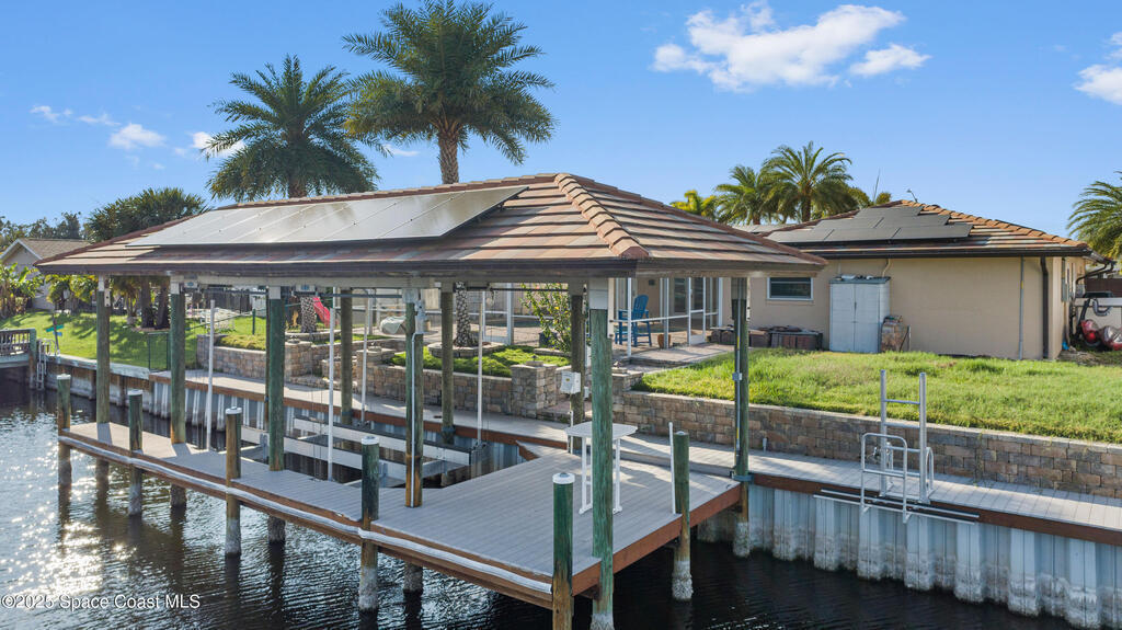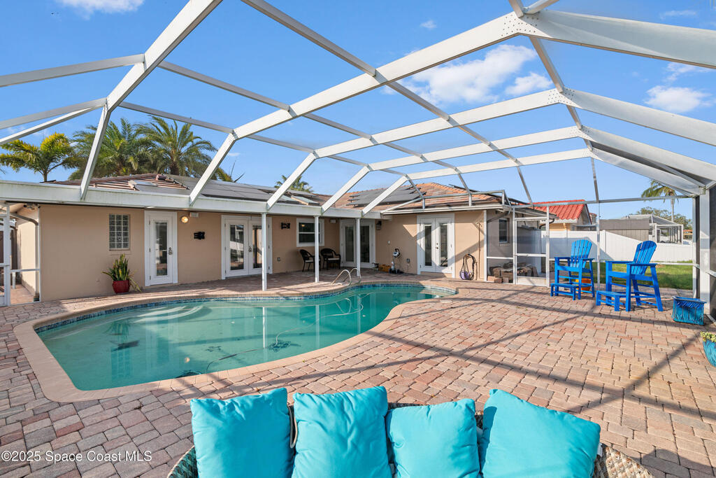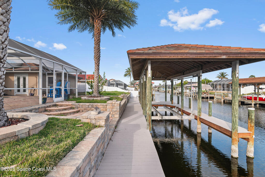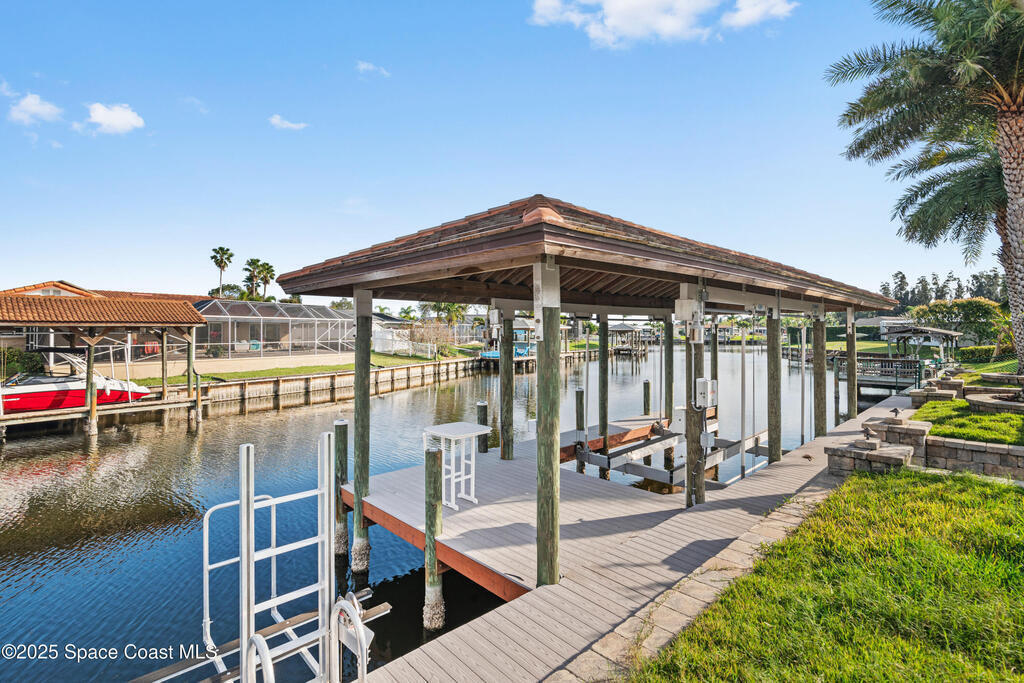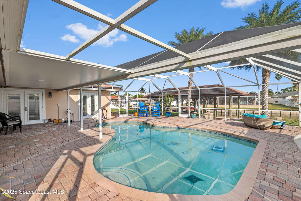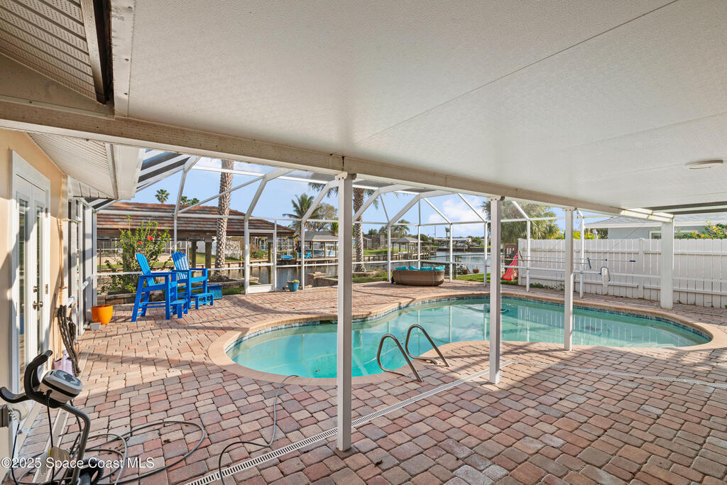 Short Sale - This recently remodeled Florida home offers the perfect blend of luxury and convenience, tailored for professionals who cherish waterfront living, gourmet cooking, and entertaining. Step into a chef's dream kitchen, outfitted with stainless steel appliances and sleek granite countertops, designed to inspire culinary creativity. The open-concept layout seamlessly connects the kitchen to spacious living and dining areas, all adorned with premium Luxury Vinyl Plank (LVP) flooring that combines style with durability. Host gatherings in your backyard oasis, featuring a newly resurfaced saltwater pool enclosed within a screen cage, ensuring year-round enjoyment free from pests. The adjacent patio area provides ample space for outdoor dining and relaxation, making it an entertainer's paradise. Enjoy your own boat lift located on navigational canal with direct access to the Banana River, perfect for boating enthusiasts seeking daily adventures. Embrace eco-friendly living with