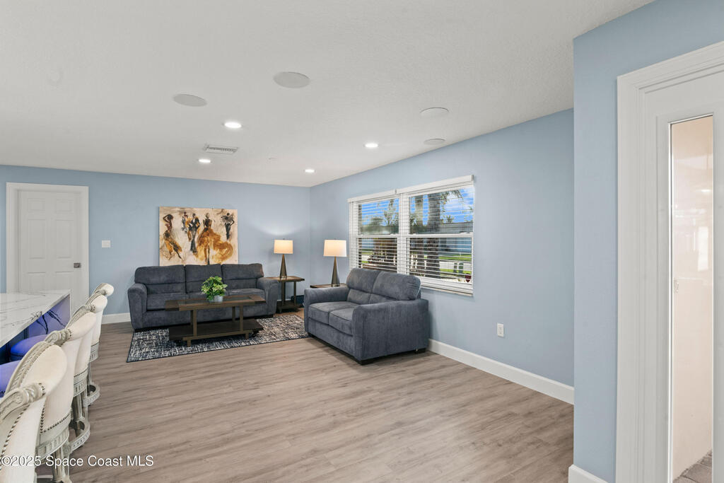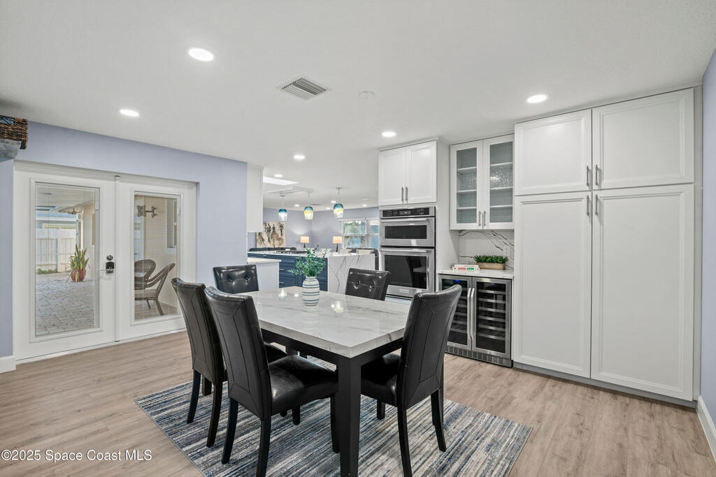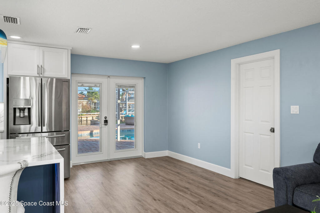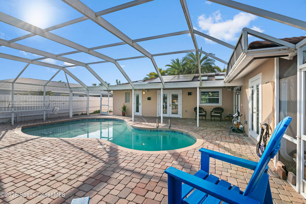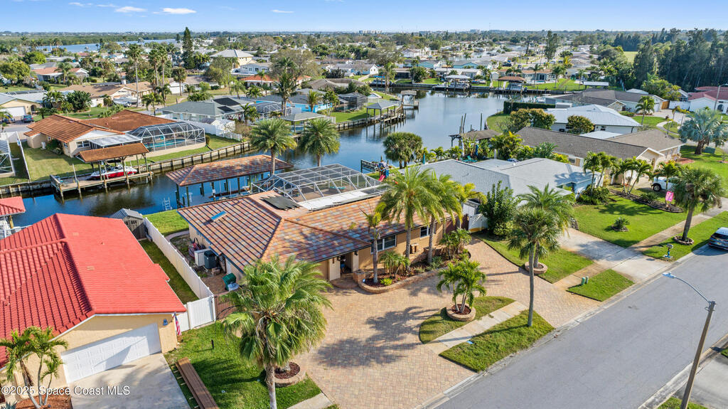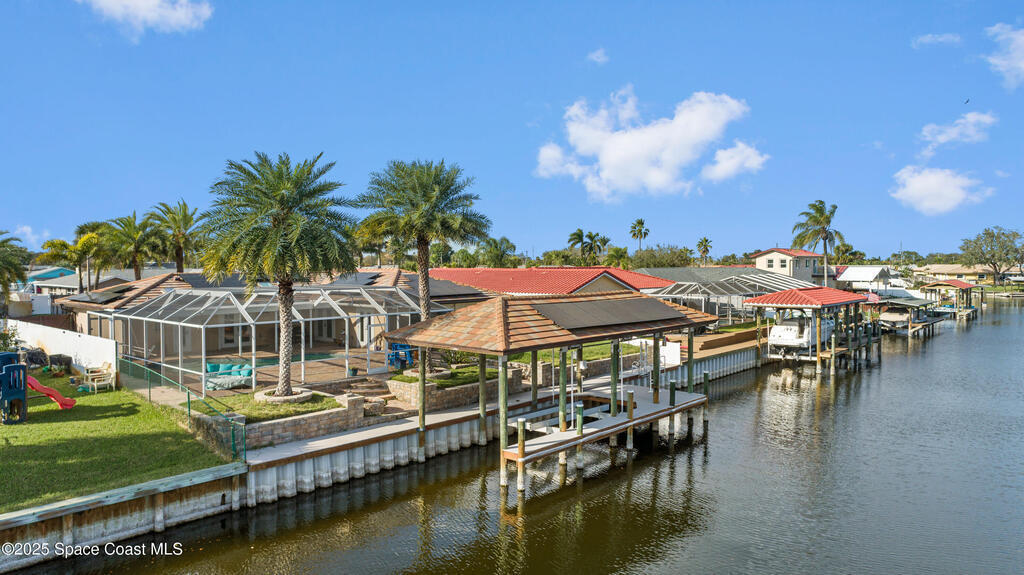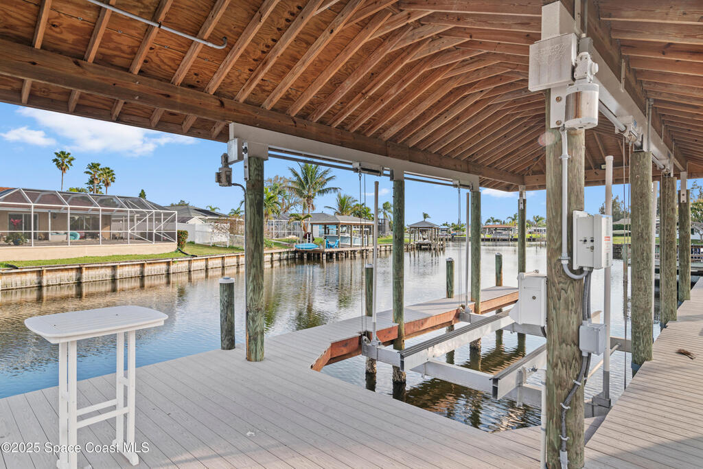 Short Sale - This recently remodeled Florida home offers the perfect blend of luxury and convenience, tailored for professionals who cherish waterfront living, gourmet cooking, and entertaining. Step into a chef's dream kitchen, outfitted with stainless steel appliances and sleek granite countertops, designed to inspire culinary creativity. The open-concept layout seamlessly connects the kitchen to spacious living and dining areas, all adorned with premium Luxury Vinyl Plank (LVP) flooring that combines style with durability. Host gatherings in your backyard oasis, featuring a newly resurfaced saltwater pool enclosed within a screen cage, ensuring year-round enjoyment free from pests. The adjacent patio area provides ample space for outdoor dining and relaxation, making it an entertainer's paradise. Enjoy your own boat lift located on navigational canal with direct access to the Banana River, perfect for boating enthusiasts seeking daily adventures. Embrace eco-friendly living with