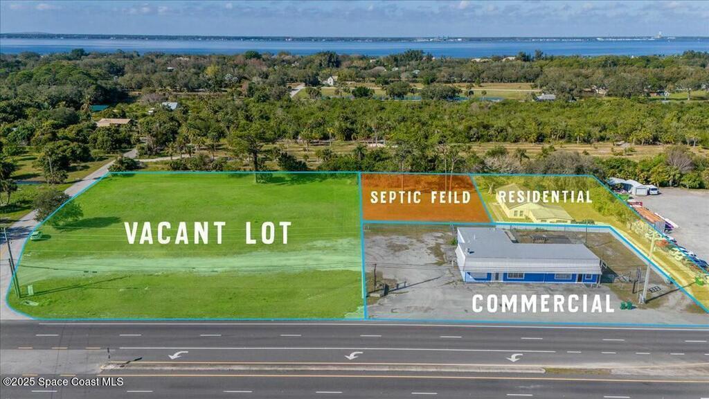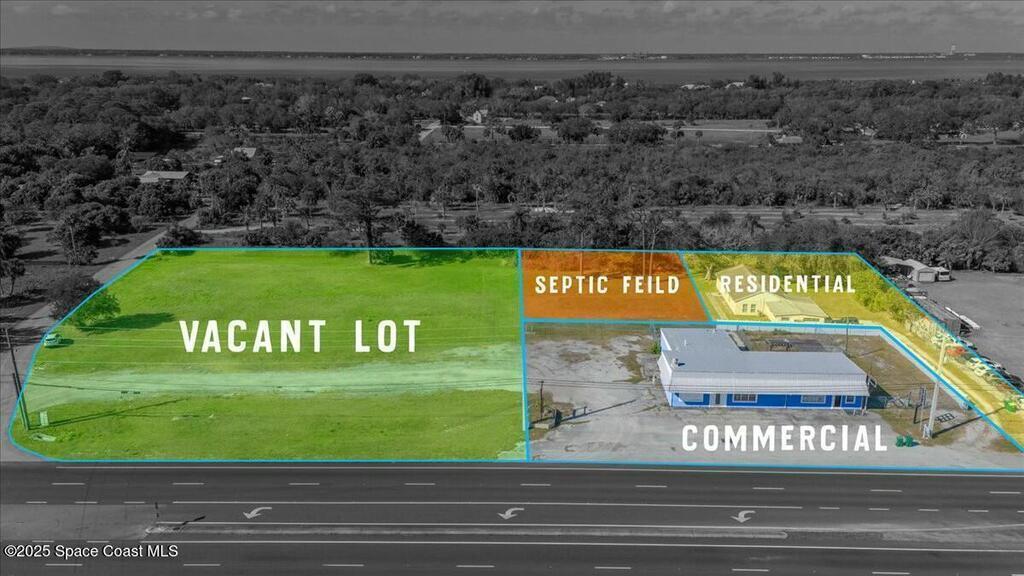 Located just minutes from SpaceX, Blue Origin, and Kennedy Space Center, this is the opportunity you've been waiting for. This prime 2.98-acre BU-1 zoned property offers incredible potential for investors, business owners, or end-users looking to establish themselves in Merritt Island's thriving commercial and residential market. Positioned on a high-traffic corner lot with over 400 feet of frontage on N Courtenay Pkwy and 310 feet on Crisafulli Rd, the site features a protected turn lane, ensuring excellent visibility and accessibility. The property includes a 3,356 sq. ft. standalone commercial building, constructed with concrete block and a metal roof. Additionally, there is a 1,800 sq. ft. single-family home with 4 bedrooms, 2 bathrooms, a 2-car garage. offering residential or rental potential. The vacant land provides more room for development or business expansion.