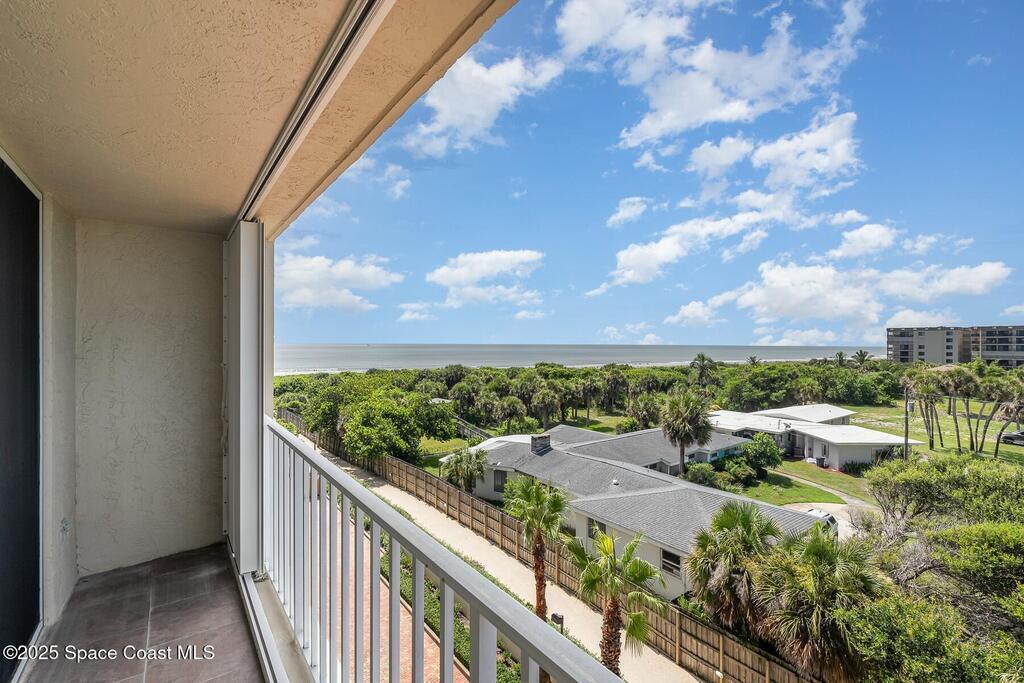 Live the beachfront lifestyle! This 5th-floor 3/2.1 split-floor-plan unit in Emerald Seas lives like a home with over 2,600 sf., Southern exposure with wrap around balcony. Views of miles of coastline, stunning sunrises, sunsets, & rocket launches. Spacious kitchen with wood cabinets. Spacious bathrooms and office area. This gated, oceanfront community boasts resort-style amenities: a heated pool, private beach access, fitness center, tennis courts, & NEW pickleball courts. No special assessments--concrete restoration ($50K) is complete & paid in full. Welcome to your beachside paradise!