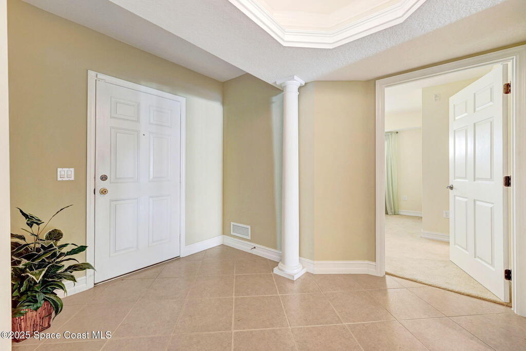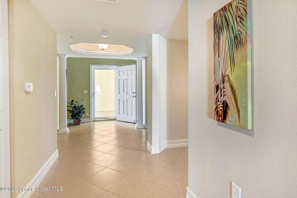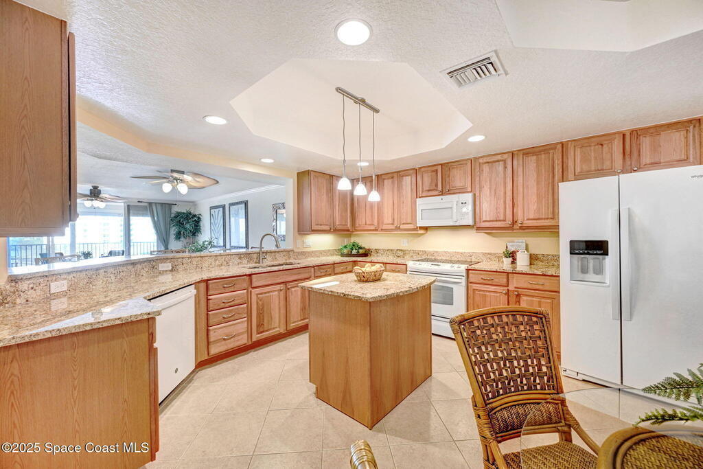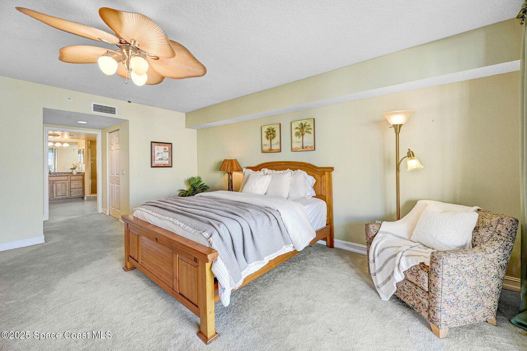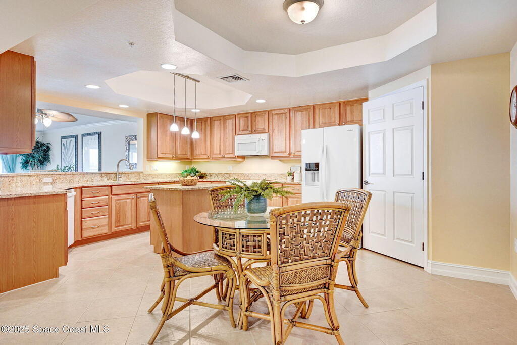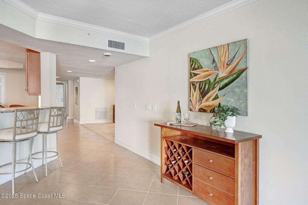 This Flamazing Island Pointe 3rd floor condo offers Indian River views from the kitchen, living area, and primary suite! This 2528 sf, 3-bedroom, 2-bath home has a bright, open-split floor plan filled with natural light. The chef's kitchen features granite countertops, stainless steel appliances, a walk-in pantry & a large movable island, ideal for entertaining. A versatile bonus room can serve as a den, office, or formal dining area. The spacious primary suite includes his/her closets & a luxurious en-suite bathroom with a garden tub, separate shower & dual vanities. Guests are required to check in with the gate guard, and the private garage is conveniently located at the front of the building. Enjoy resort-style amenities which include a clubhouse, exercise room, heated pool, spa, sauna, & tennis/basketball courts. minutes from I-95, Cocoa Village, beaches, shopping. The ultimate in luxury living!