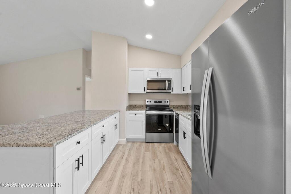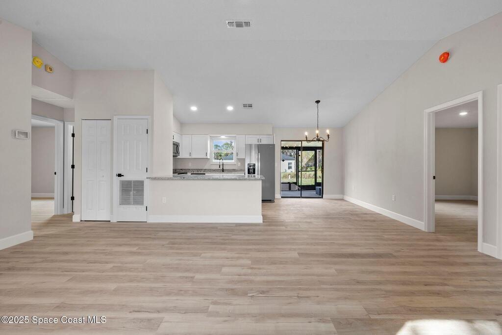 Beautifully remodeled home in Palm Bay Florida! This 3 bedroom 2 bathroom sits on a large lot and comes with fresh new upgrades! All new flooring throughout, full kitchen remodel, appliances, interior doors, bathroom remodels and all newer roof, AC and duct work, windows and stucco'd exterior. The interior of the home also has all new texture with an interior and exterior paint! Located only 20-25 to the beach and within close proximity to Interstate 95. Great family home with a split floor plan, screened in back patio and oversized back yard. Come view today!