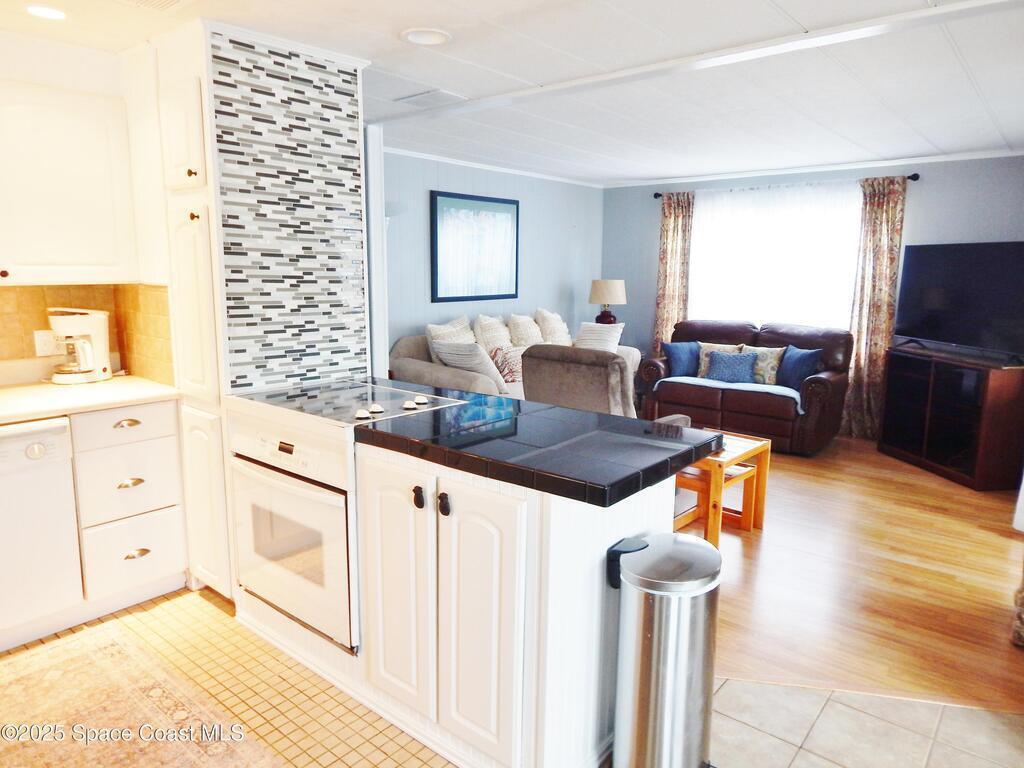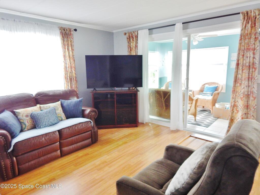 Beautiful 2 Bed/1.5 Bath home in this 55 and over waterfront community. Brand new window treatments, ceiling fans, and New electrical service connection from pole to home by FPL. Updated with interior paint, electrical panel, moldings, light fixtures, and kitchen plumbing in 2022. Siding, windows, gutters, carport, French doors, and A/C system were all updated within the last 8 years. The kitchen was updated in 2013 with new backsplash, countertops, appliances, tile flooring, and dishwasher. You will love the Florida Room, complete with sliding glass doors and new laminate flooring. This home comes furnished, making it the perfect winter getaway. Palm Bay Estates features a heated pool, clubhouse, picnic area, community boat dock, and boat ramp with quick access to the Turkey Creek Sanctuary and the Indian River. Boat storage/RV parking is available based on availability.