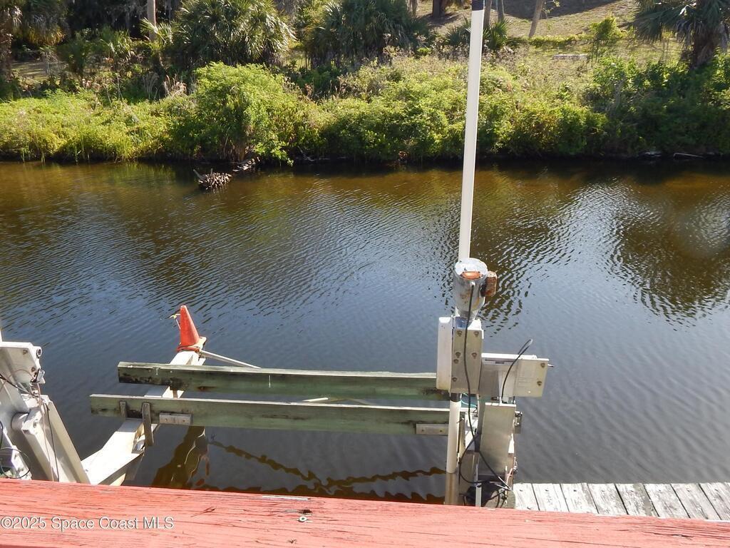 Built-in 2005, this 2 bed/2 bath home in Palm Bay Estates 55 and over waterfront community is the place to live!! Fully furnished with a new A/C, hot water heater, and updated boat lift & dock, as well as a washer and dryer, make it move-in ready. Located on the widest part of the canal, it lets you turn the boat around & makes it easier to get it to the dock. The home is tucked in the back of the parking lot, adding to the privacy you might be looking for. Barbecue on your wooden deck and enjoy the breezes. Take the boat out on the Indian River, down to the inlet, and out to the Ocean. The perfect home awaits, and the low HOA fees cover the cable, internet, a heated pool, clubhouse, and picnic area. The owners are including the car parked by the house.