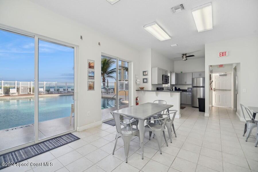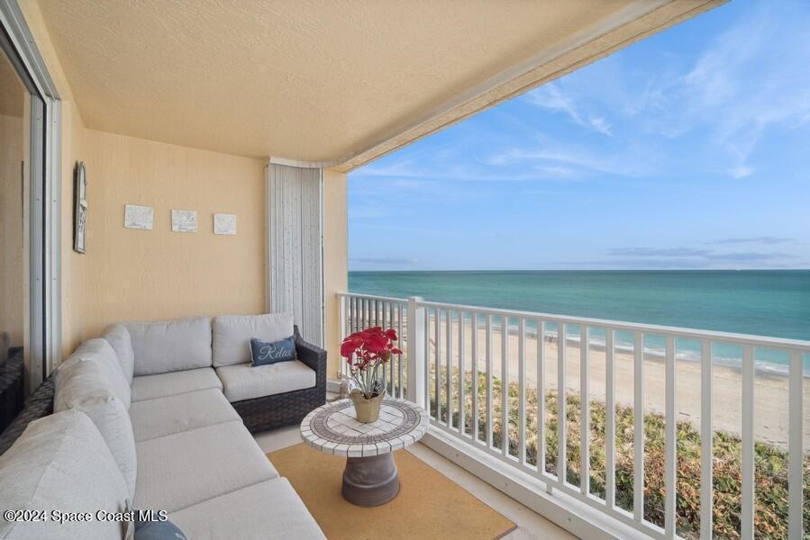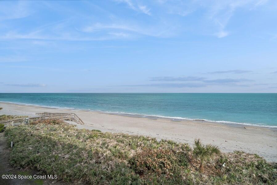 Wake up to panoramic ocean views and enjoy rocket launches from your private balcony in this fully redesigned 3rd-floor direct oceanfront condo at Lantana. This 3-bed, 2.5-bath residence with a flex room offers over 2,000 sq ft of elevated coastal living. The chef's kitchen boasts leathered granite countertops, custom cabinetry, and premium stainless appliances--all with endless ocean views. Thoughtful upgrades throughout include elegant flooring, bespoke cabinetry, and exquisite granite finishes. Enjoy private beach access, a heated pool, fresh exterior paint, restored balconies, and a 1-car detached garage with extra storage--all with NO assessments. This is oceanfront living at its finest!
