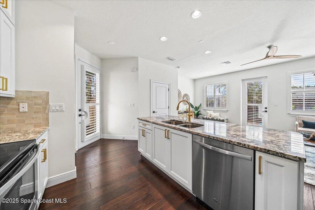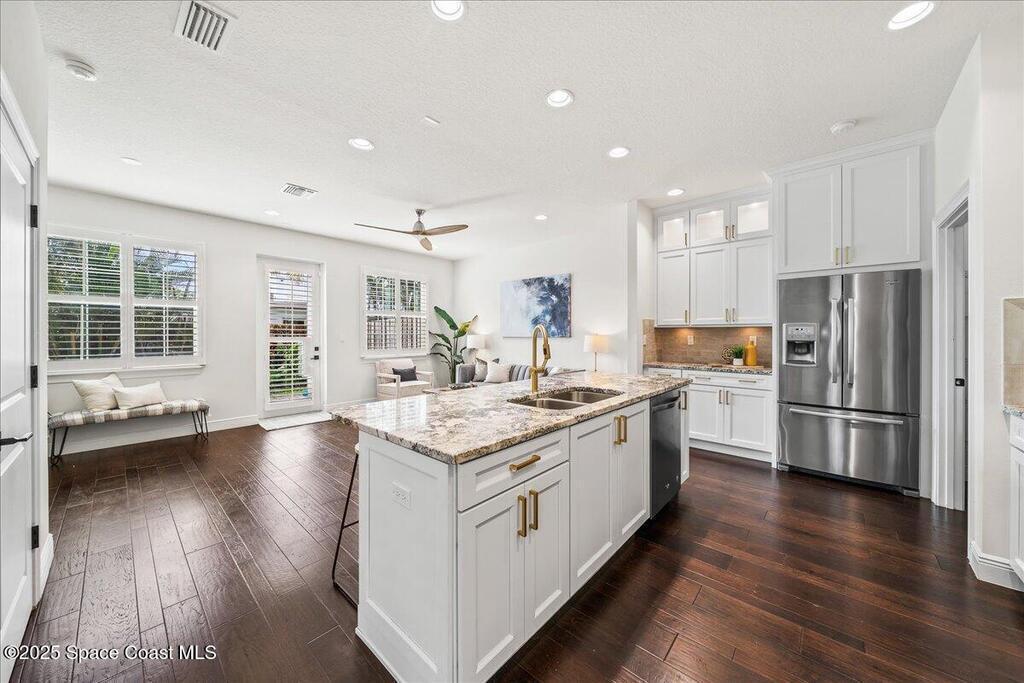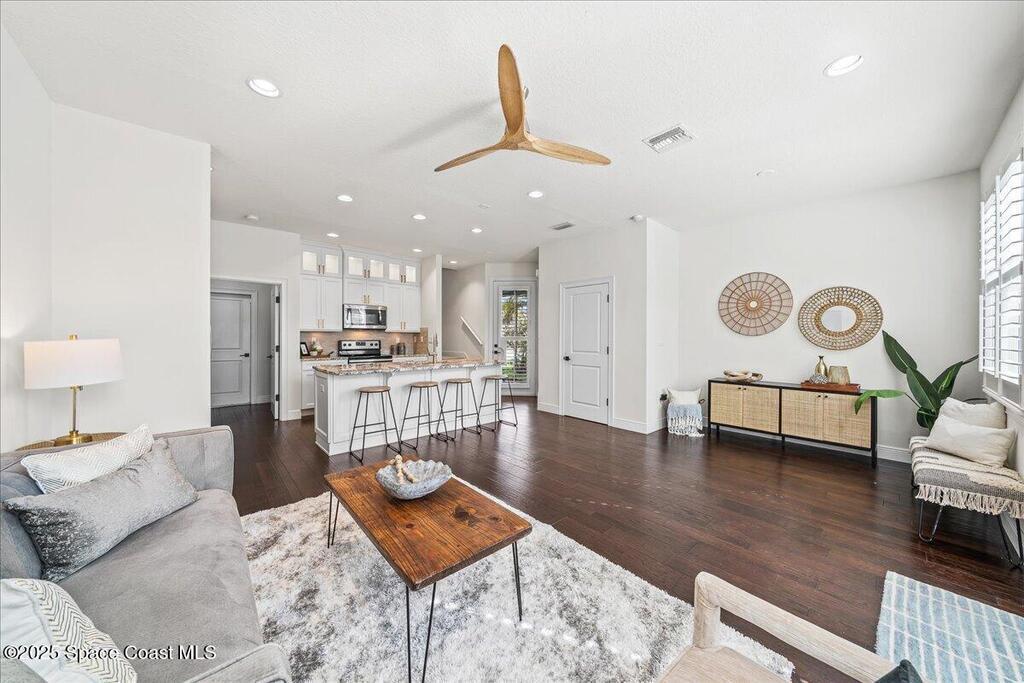 DO NOT MISS THIS AMAZING OPPORTUNITY IN INDIALANTIC - KEY WEST STYLE TOWN HOME LOCATED IN IDYLLIC LOCATION SOUTH OF FIFTH AVE STEPS FROM THE BEACH!!!!!!! Meticulously maintained and updated town home boasting coastal charm in a spacious open floor plan with tons of natural light. Gorgeous wood flooring in main living area, plantation shutters throughout entire home, new carpet, show stopping custom kitchen with counter seating, white cabinets, stunning quartz countertops, stainless steel appliances, and updated fixtures. Ocean views from upper level, huge, spa like master bath, gigantic master closet, lush landscaping, gorgeous paver patio in fenced backyard for entertaining and enjoying the relaxing ocean sounds and breezes. New, upgraded 2024 HVAC and brand new fencing. Walk, bike, or take your golf cart to the beach, restaurants and shops on 5th Ave. Beachside Florida living at its absolute best! Seller is agent.