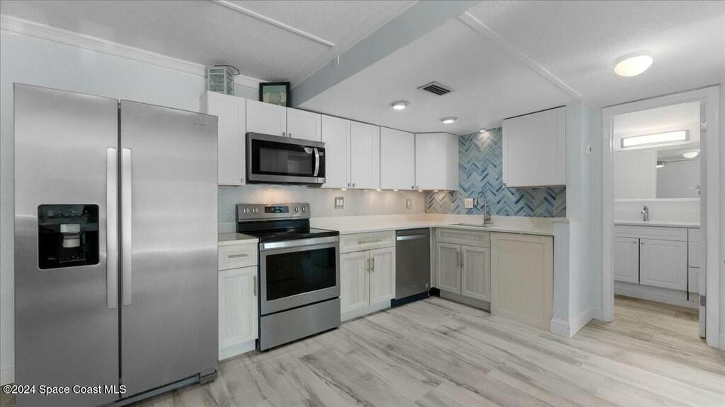 Newly upgraded fresh and clean. Enjoy the serenity of Ocean Views from sunrise to sunset.Walk to dinner and bars, its all within blocks of this condo Bathroom tiles from Italy designed with marble accents. Close to everything including Cocoa Beach Pier, Restaurants. Shopping , Parks. No Smoking, No pets