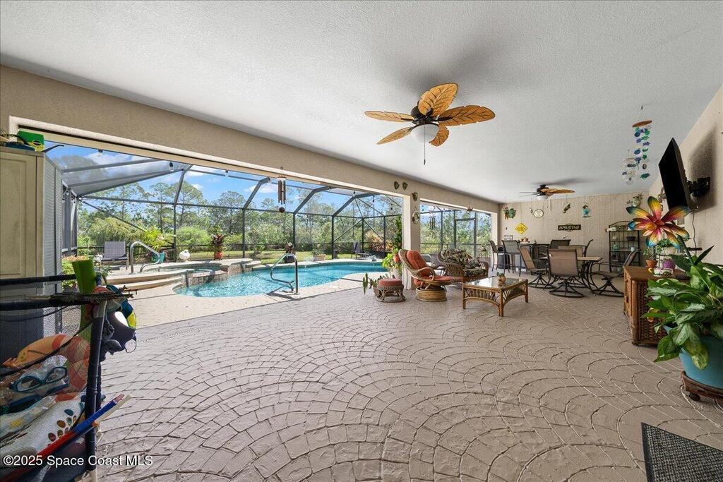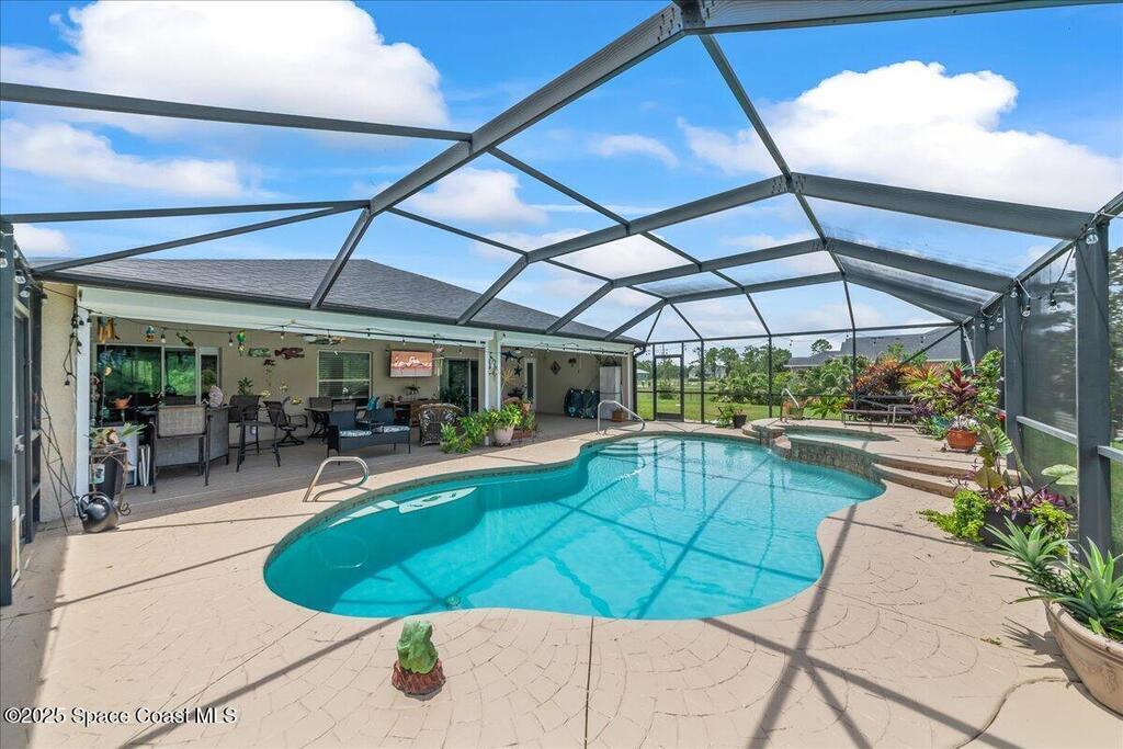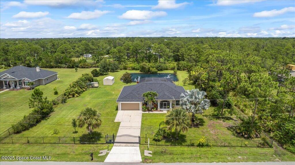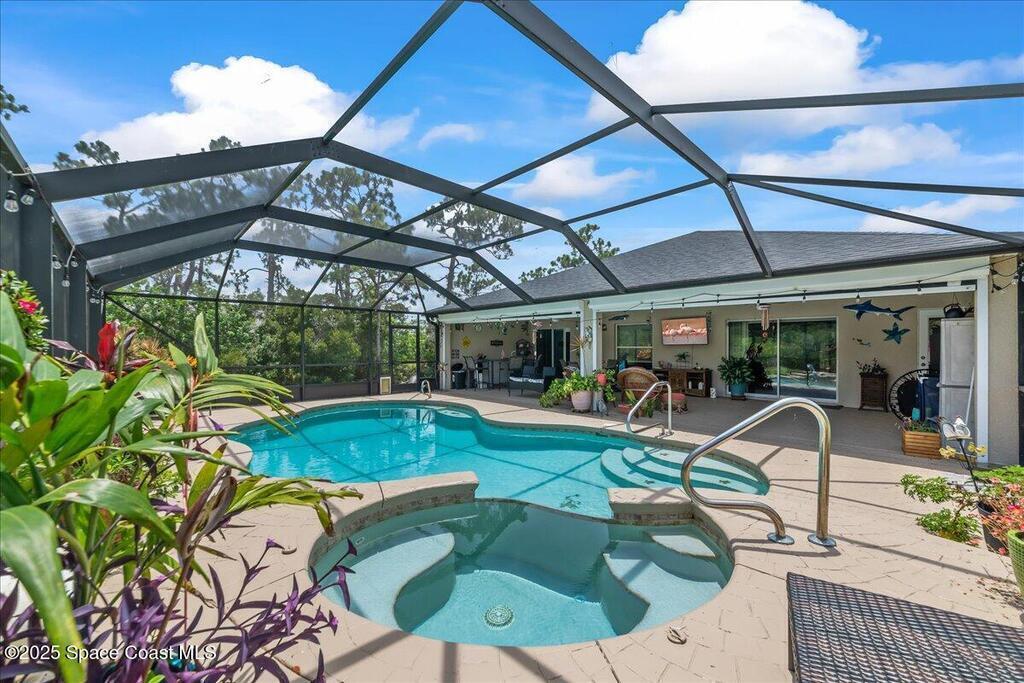 BACK ON MARKET, BUYER FINANCING FELL THROUGH. Fully inspected and surveyed with a clean report. New roof July 2025! Tucked behind a gated entry on over an acre of fully fenced land, this peaceful 4 bed 2 bath retreat offers space to breathe and room to roam. From the moment you walk in, you'll feel the warmth of an open layout with soaring ceilings, wood look tile, and a natural flow that brings people together. The kitchen is the heart of it all, stylish yet functional, it connects seamlessly to the living and dining spaces. Step outside to your private sanctuary, a covered patio overlooking the pool, spa, lush landscaping, and a tranquil pond, your daily escape. The primary suite is a true retreat with lanai access, a spacious walk in closet, and dual vanities. A charming chicken coop adds personality and a touch of country charm (chickens included!). A rare find and a steal at this price, offering privacy and comfort in a setting that feels miles away yet close to everything.
