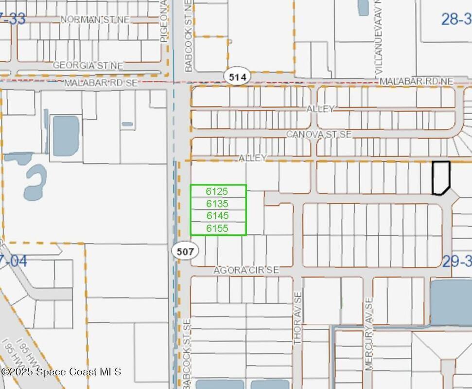 Exceptional 3-acre commercial opportunity on highly trafficked Babcock St SE in Palm Bay. Zoned for general commercial use, these three, one+ acre prime parcels boast high visibility and 305 feet of combined frontage on Babcock St., making it ideal for a variety of ventures. Take advantage of this rare chance to secure a large strategic foothold in Palm Bay's thriving business landscape, fueled by unprecedented residential growth. Close proximity to I-95 and major retailers. Sale will include 6135, 6145 and 6155 Babcock St. SE, approximately one half mile South of Malabar Rd. May be combined with 6125 (MLS #1038443) for a total Lot Size of 405x450 182,250 sq ft.