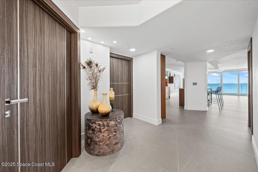 Direct Oceanfront at the exclusive Somerset! Fully renovated, this gorgeous 3 bed, 2.5 bath feels brand new with top of the line upgrades throughout. New flooring, enhanced with sound control lining in every room, all new bathrooms with high end fixtures and new impact windows and doors. Separate guest bedroom with ensuite bath, designer chef's kitchen featuring custom Swiss-manufactured wild walnut cabinets, luxurious quartz countertops with matching backsplash, and premium appliances from Wolf, Subzero, and Miele--perfect for culinary enthusiasts and entertainers alike. For convenience, the residence includes reserved underground garage parking, private clubhouse, pool and direct beach access! Located just 10 min from Melbourne International Airport and 45 min from Orlando, you'll enjoy easy access to travel, dining, and entertainment. For Space enthusiasts, enjoy spectacular views of Space X rocket launches from the privacy of your balcony! Schedule your private showing today!