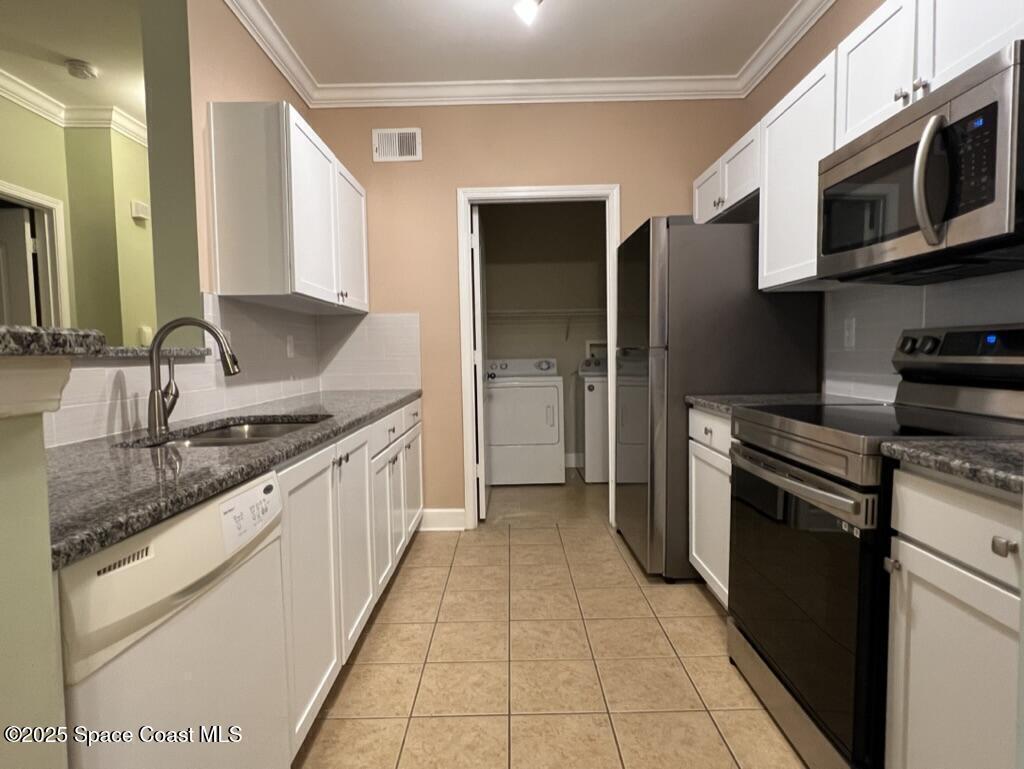 Ready to move into- Lovely unit in a beautiful community! Live in the heart of Viera. Gated community has pedestrian gate to the Avenues of Viera shopping/dining center! Resort style community pool and well equipped gym make living here seem like vacation every day! Fully equipped kitchen, well designed floorplan, in-unit laundry room with washer and dryer. Max two vehicles per unit. One small pet may be considered.