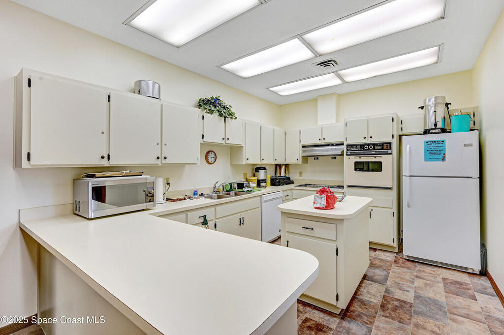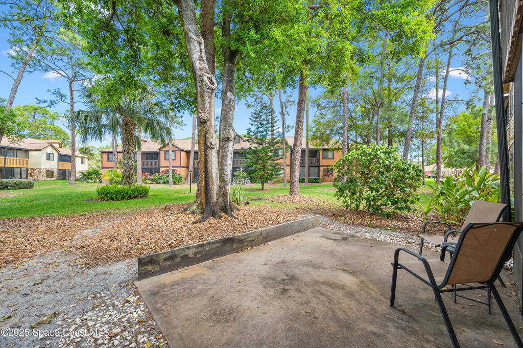 Enjoy this lovely first floor condo in the established Greenwood Village Community. Secure entrance leads to the front door opening into the spacious living room with corner wood burning fireplace. You'll enjoy preparing meals in the light and bright kitchen featuring white cabinets and counters and a convenient pantry. Enjoy morning coffee on the screened porch or attached patio as you listen to birds in the treed yard. The primary bedroom has a walk in closet and ensuite bath. The second bedroom offers options as an office or guest room. The community clubhouse is located is just steps away and is the perfect place to meet friends for shuffleboard, dip in the heated pool, workout session or many other activities. Enjoy carefree living and friendly neighbors with easy access to nearby shopping, restaurants and beautiful Florida beaches!