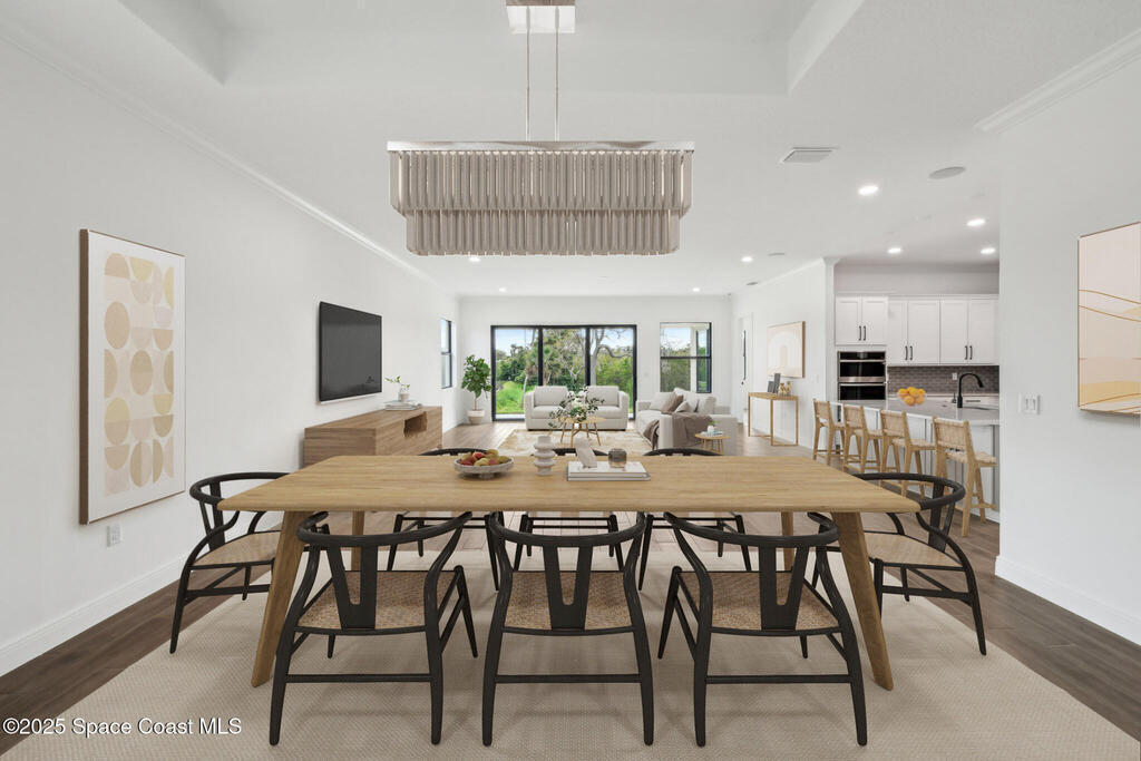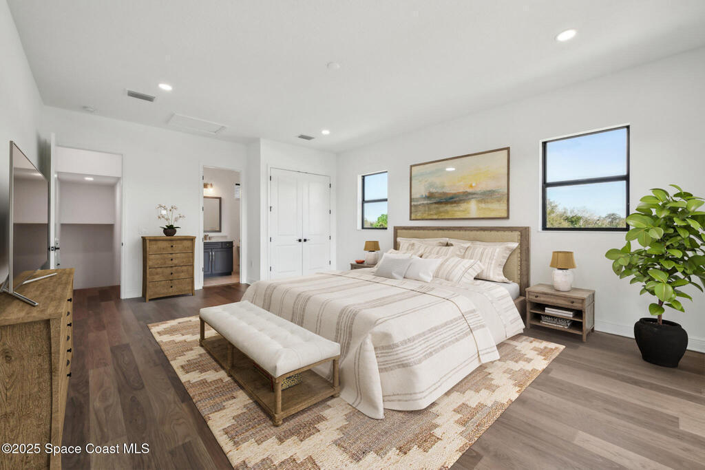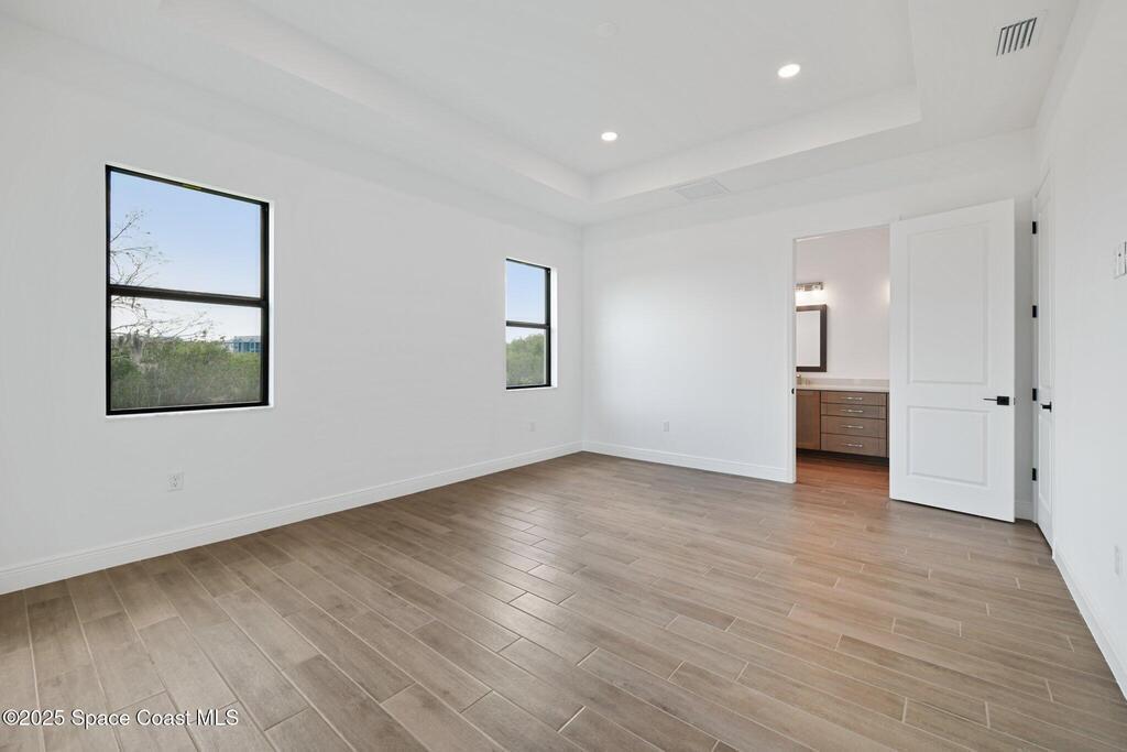 Live on the river and preserve. Brand New & Move-In Ready! This stunning 4-bedroom, 3-bath, 3-car garage home spans nearly 2,900 sq. ft. in a gated, riverfront community with a shared dock, optional boat slip, community pool, green space, and low HOA dues. Upstairs, a private 4th bdrm with an en-suite bath doubles as a second master or bonus room, complete with a balcony overlooking the river. Luxury finishes include 10' ceilings, impact windows, plank tile flooring, premium appliances, soft-close cabinetry, and a free-standing tub in the primary bath. A pavered driveway and fresh landscaping enhance curb appeal, while the backyard offers conservation and river views--with room for a pool or extended patio. Minutes from Eau Gallie Arts District, beaches, Melbourne Airport, and I-95--your dream home awaits!