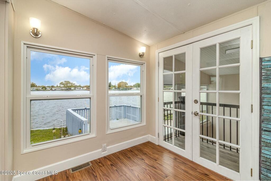 Waterfront home with an accessible lake in an active 55+ community where you OWN the land! This beautifully updated property is perfect as a vacation getaway or a full-time residence. Enjoy peaceful water views from the kitchen, dining area, living room, or your own private deck. The newly updated master bedroom features a walk-in closet with plenty of storage space, and the home includes the convenience of indoor laundry. Recent upgrades include new siding and windows for low maintenance and lower electric bills, a resealed roof, complete re-plumbing, updated electrical, and a newer A/C unit plus a mini-split for additional comfort.Located in a gated community with great amenities: swimming pool, shuffleboard, clubhouse, boat ramp, and numerous activities--all with a low HOA fee. RV and boat storage are available on a first-come basis. Enjoy easy access to I-95 and nearby beaches.