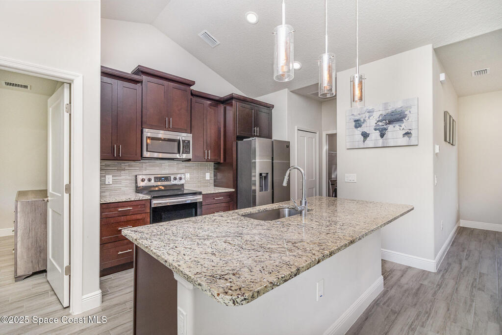 Upgraded to the teeth! This home boasts it all. Wood look porcelain tile through out the entire living area and bedrooms. Tiled showers. Granite counter tops. HUGE under truss rear and front porch. Upgraded light fixtures. Vaulted ceilings. Smart home features. Staggered kitchen cabinets with crown and under molding. Stainless steel appliances and oversized mud room for storage. Master bathroom features a glass shower enclosure. huge walk in closet and double vanity. Split floor plan. Triple sliding glass doors for entertaining and natural light. City Water. New landscaping. No rear neighbors sharing your fence for extra privacy. painted and finished garage floors. Gutters and carriage lights on the exterior. I could keep going but I am reaching the character limit allowed. Come take a look!