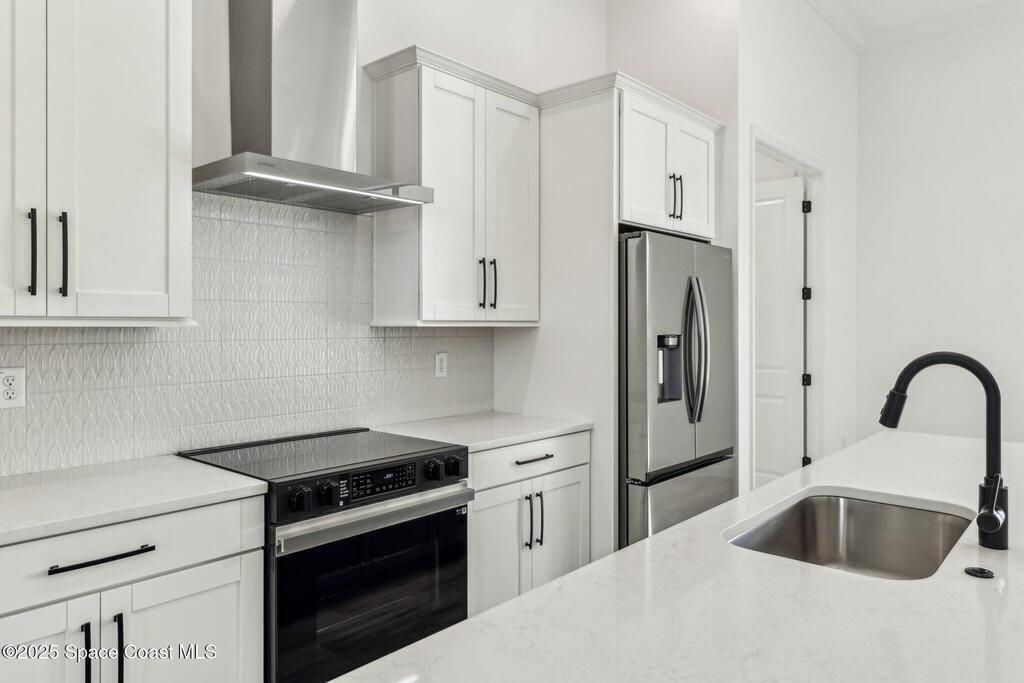 Riverfront. Quality Built. Move-In Ready.This 4-bed, 3-bath, 2-car garage home offers 2,400 sq ft of luxury living on the Eau Gallie River with serene views of lush conservation and a shared dock. Secure a boat slip and enjoy life in this gated new construction community featuring resort-style amenities, green space, meticulous landscaping, and low HOA dues. Built w/ modern finishes: 10' ceilings, 8' six-panel doors, impact windows, plank tile floors, premium appliances, soft-close cabinetry, and spa-inspired bathrooms with floor-to-ceiling tile. Curb appeal shines with a pavered driveway and fresh landscaping. The backyard overlooks the river and conservation land--with space for a pool or extended patio. Minutes to the Eau Gallie Arts District, Atlantic beaches, Melbourne Airport, and I-95. A rare blend of quality, location, and lifestyle--don't miss it!