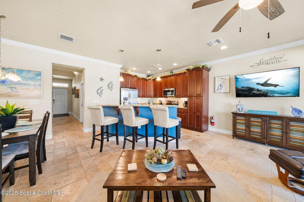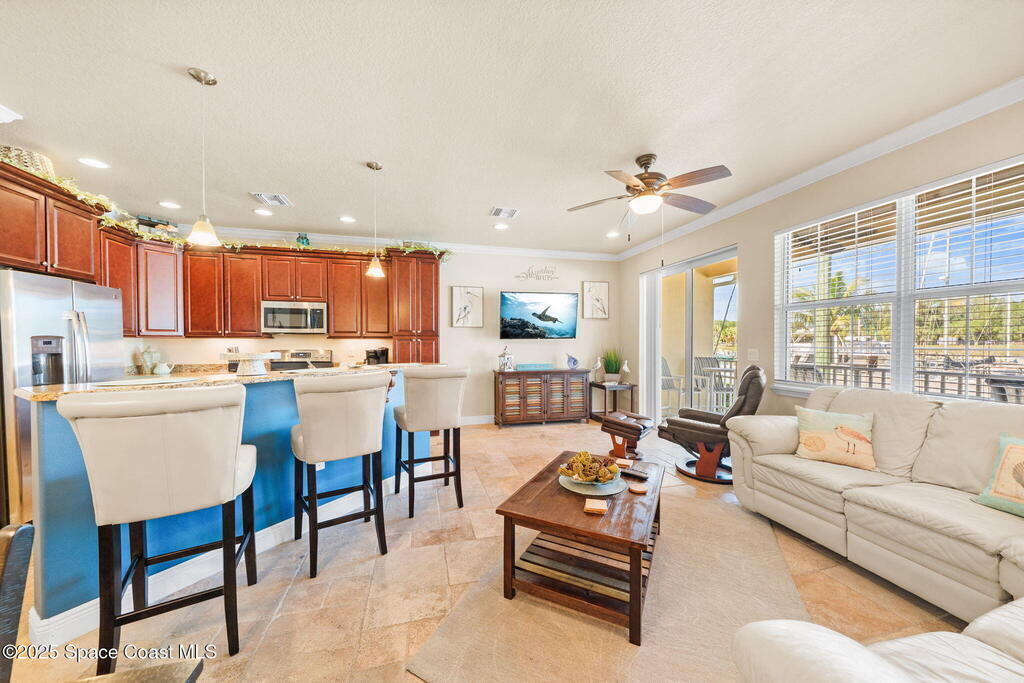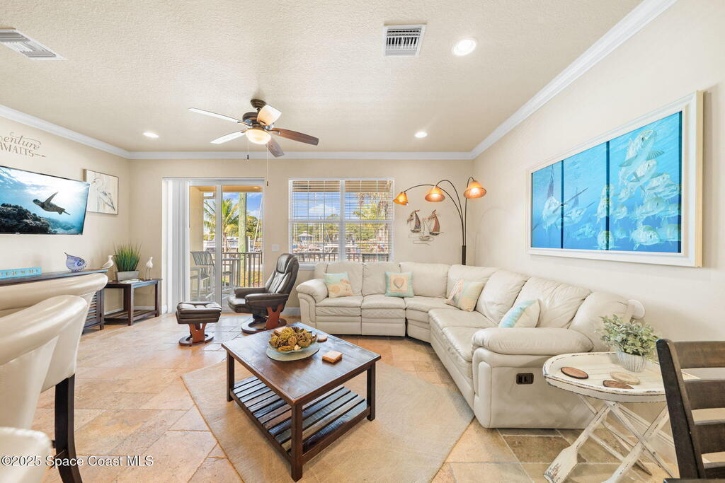 Welcome to Cape Crossing, Brevard's premier waterfront community, where luxury meets convenience. This stunning 3-bedroom, 2.5-bathroom townhome offers breathtaking marina views and a prime location just minutes from Kennedy Space Center, Port Canaveral, and the beaches. Fully furnished with coastal decor, this spacious retreat includes all utilities and WiFi, making it an effortless choice for short-term stays. Enjoy resort-style amenities, including a pool, hot tub, sauna, fitness center, and clubhouse, all designed for relaxation and recreation. Step outside to the community dock, perfect for watching dolphins swim by or experiencing spectacular rocket launches. For dining convenience, enjoy Dolphins, the on-site waterfront restaurant. Conveniently located just 10 minutes from Kennedy Space Center and Port Canaveral, with Orlando International Airport only 40 minutes away, this property offers the ideal blend of tranquility and accessibility.