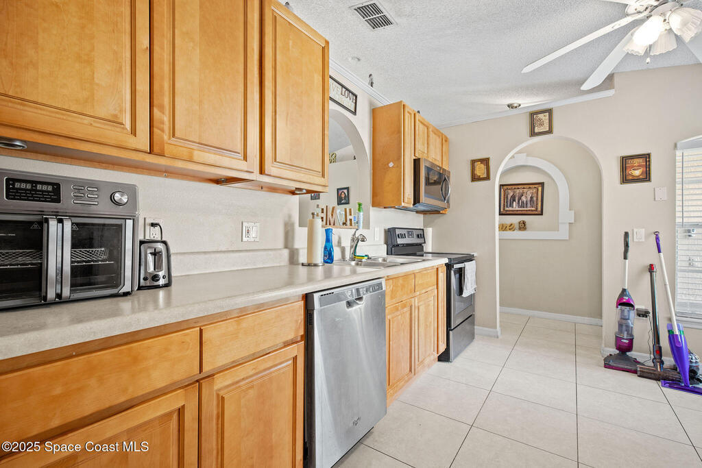 Move-In-Ready 3-Bedroom Home in Central Melbourne with Recent Updates - This nicely maintained 3-bedroom, 2-bath home offers 1,264 sq. ft. of comfortable living space in a prime location. The split floor plan provides privacy and functional flow, making it ideal for families, roommates, or guests. Enjoy peace of mind with a newer roof and recent exterior improvements, including fresh exterior paint and stucco refinishing in 2022. Inside, the open-concept layout features vaulted ceilings that create a bright, spacious feel. Tile flooring runs throughout the main living areas, and the kitchen offers plenty of workspace for cooking and gathering. Step outside to a fenced backyard--perfect for outdoor relaxation, pets, and entertaining. This home is just minutes from shopping, dining, parks, and top-rated schools, offering both comfort and convenience. Move-in ready and easy to love--don't miss this opportunity. View the 360 virtual tour at: https://my.matterport.com/show/?m=9AQBjo9LpgK
