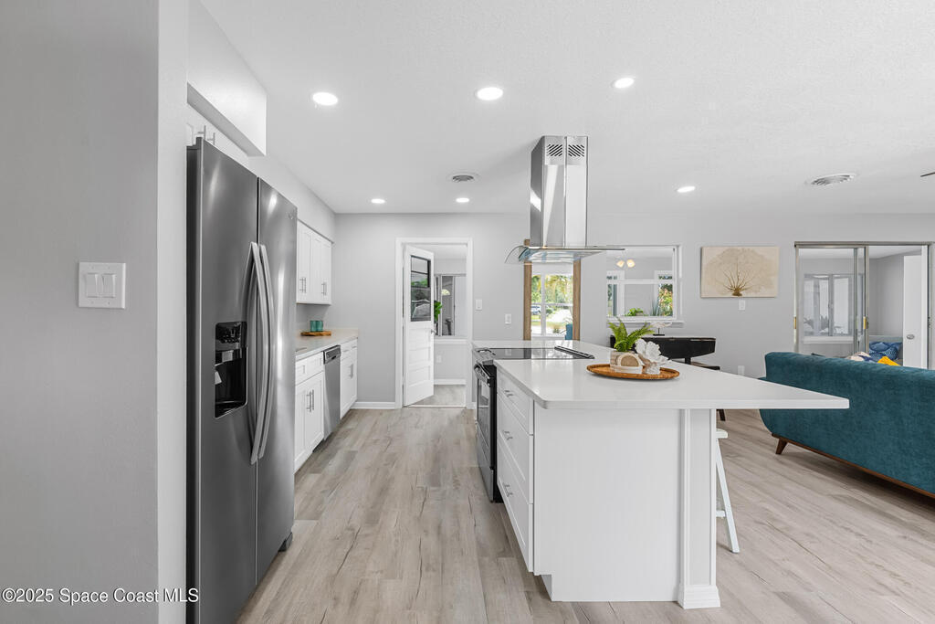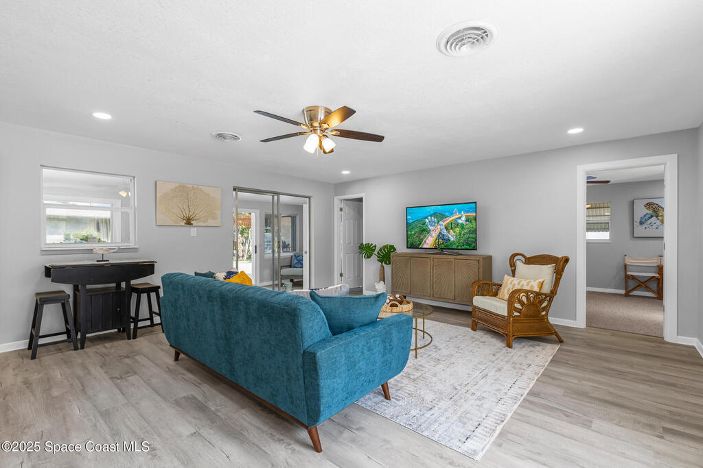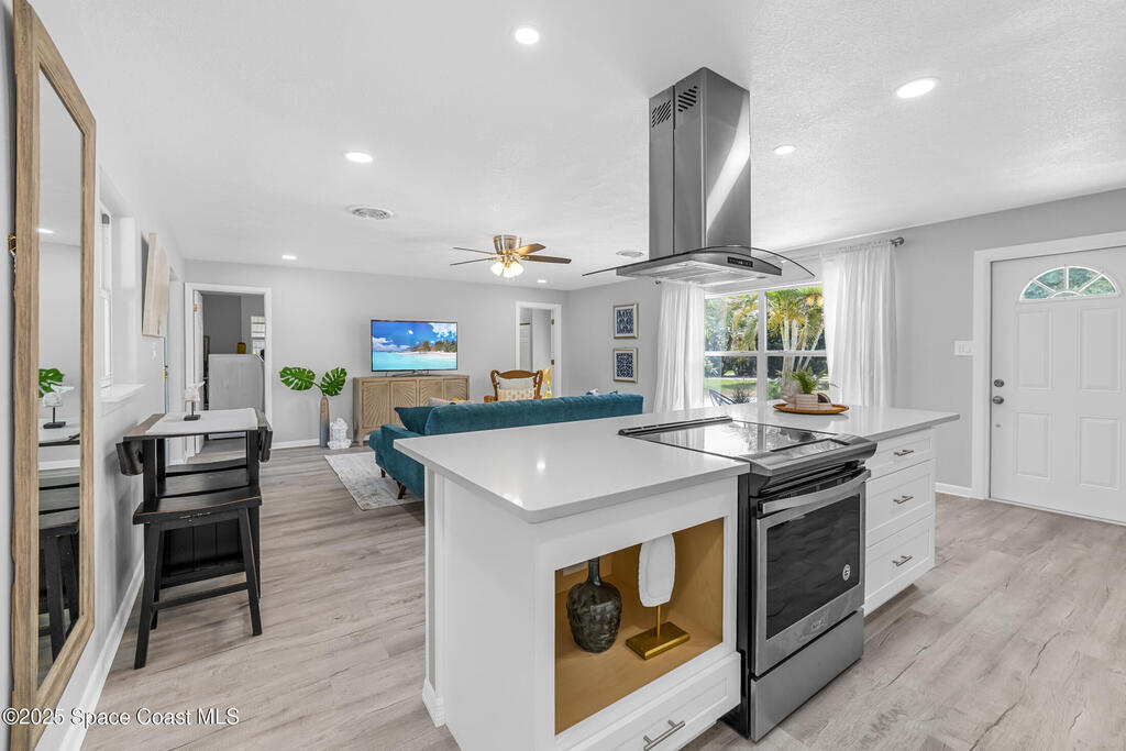Welcome to 24 Hardee Circle, nestled in a fantastic neighborhood just steps away from the Indian River and a short walk to Historic downtown Cocoa Village! Community benches at the river perfect for catching stunning sunrises. This beautifully renovated 4-bedroom, 2-bath pool home is ideal as a primary residence or a high-performing Airbnb. The bright, open layout is designed for easy living and entertaining. The kitchen features white cabinetry, quartz countertops, Whirlpool appliances, a microwave, and a sleek hood over the stove. A cozy living room invites relaxation, while the air-conditioned back porch offers extra year-round space. Spacious bedrooms provide ample closet storage, and a large circular driveway ensures plenty of parking. For added peace of mind, accordion hurricane shutters protect every window.Roof 2017, A/C 2024