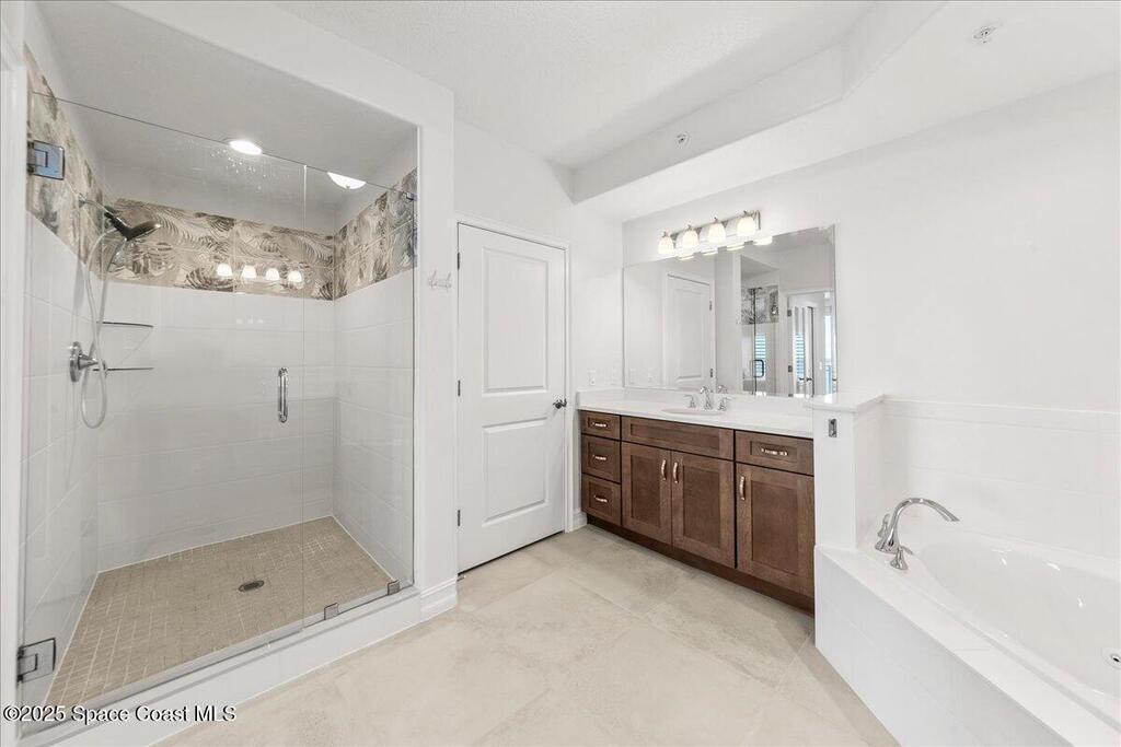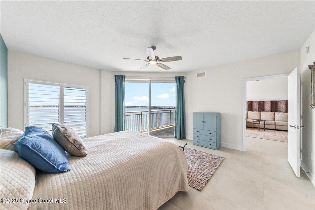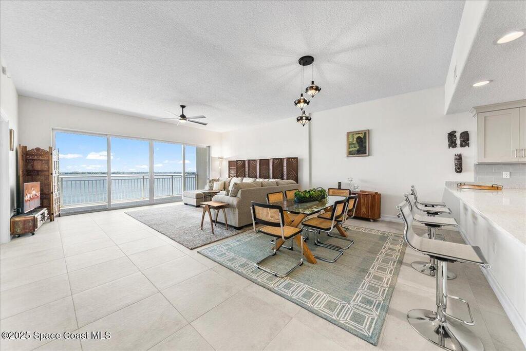 OCEAN and river views from the 9th-floor residence, built in 2022, offering the feel of a brand-new home with modern finishes and pristine condition. Featuring 10' ceilings and floor-to-ceiling impact-resistant glass, this stunning condo showcases breathtaking panoramic views of the Indialantic skyline and the vibrant blue ocean, where cruise ships are a regular sight. Off the expansive 165 sq. ft. balcony, enjoy the ever-changing beauty of the Indian River, with playful dolphins, diverse bird species, and marine life creating a serene natural backdrop.Designed as a premium upgraded unit by the developer, this 3-bedroom, 3-bath condo was thoughtfully curated by a designer, featuring carefully selected coastal tile and accents throughout its 2,082 sq. ft. of refined living space. The well-appointed kitchen with tile backsplash, center island,soft-close maple cabinetry, GE appliances, and a beverage fridge, offering both style and functionality.