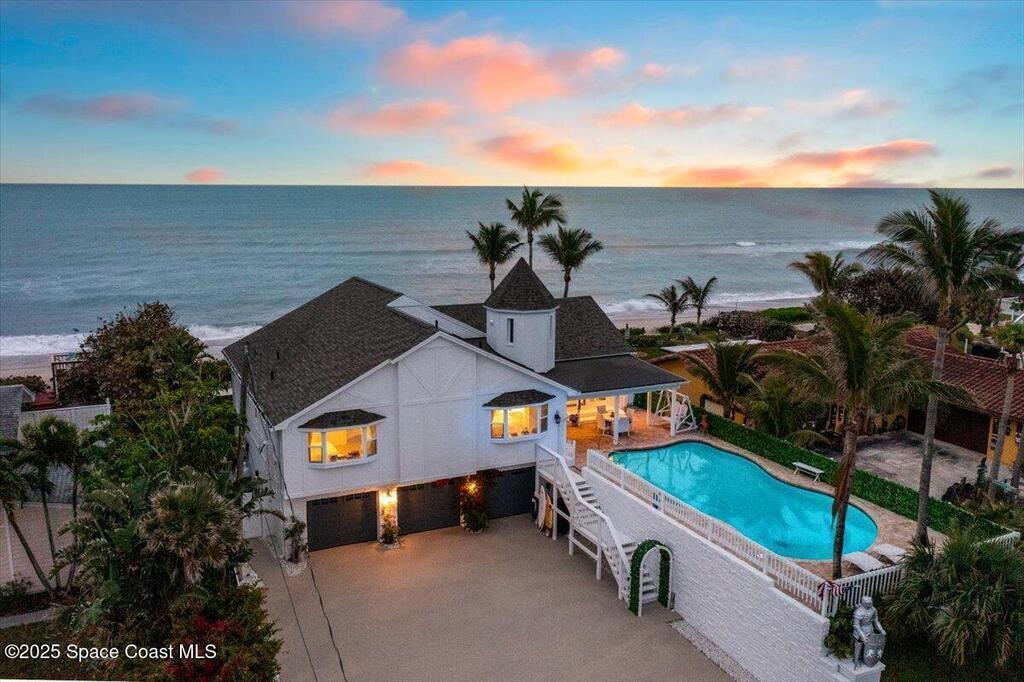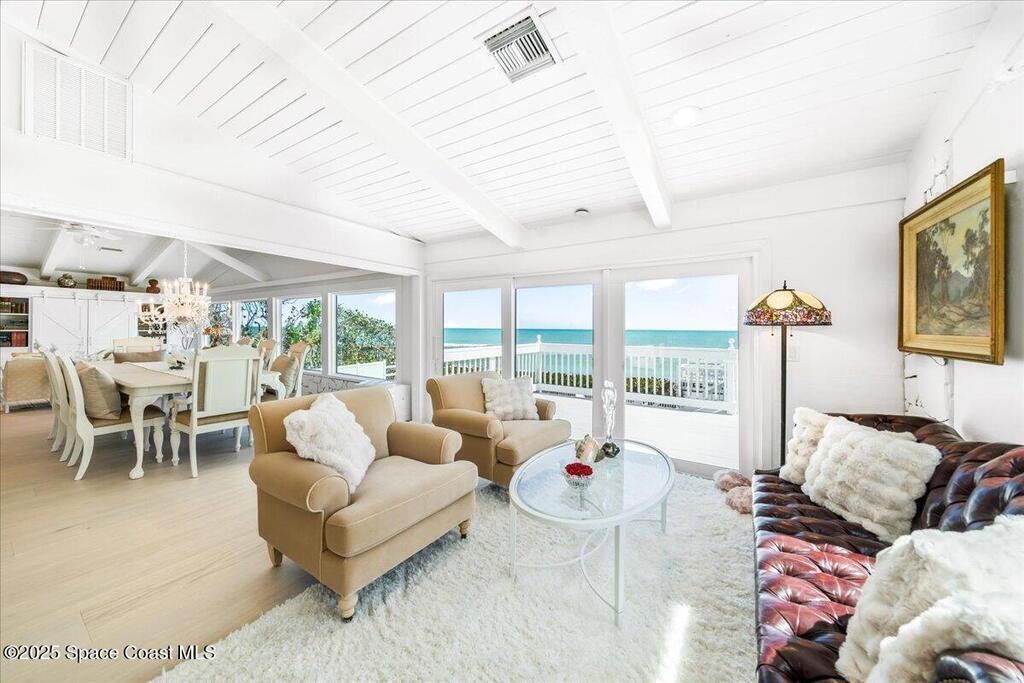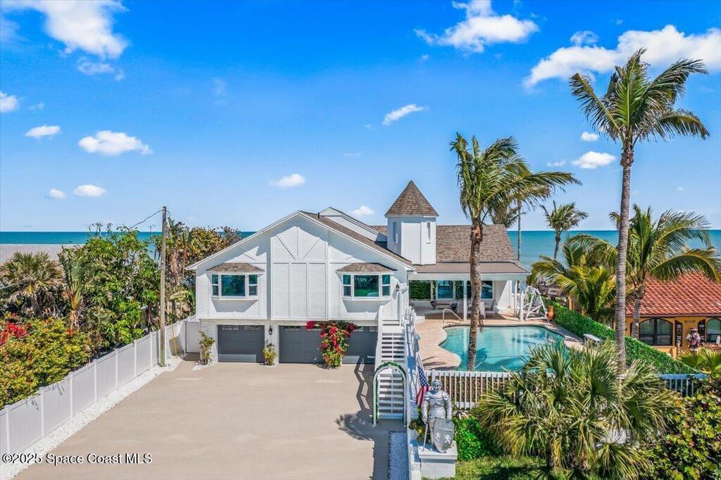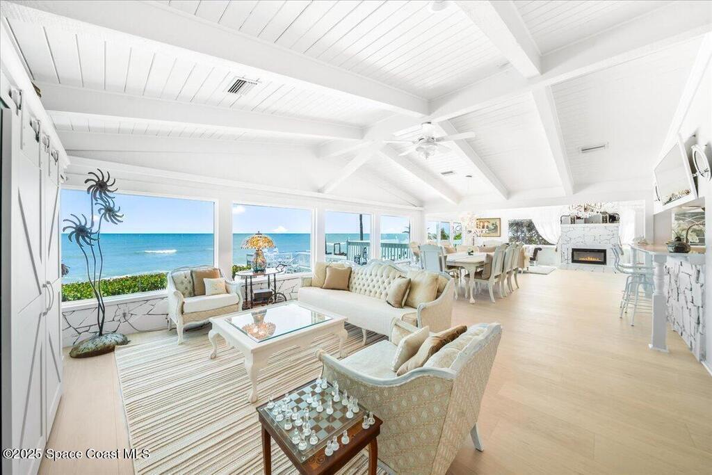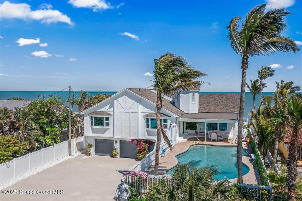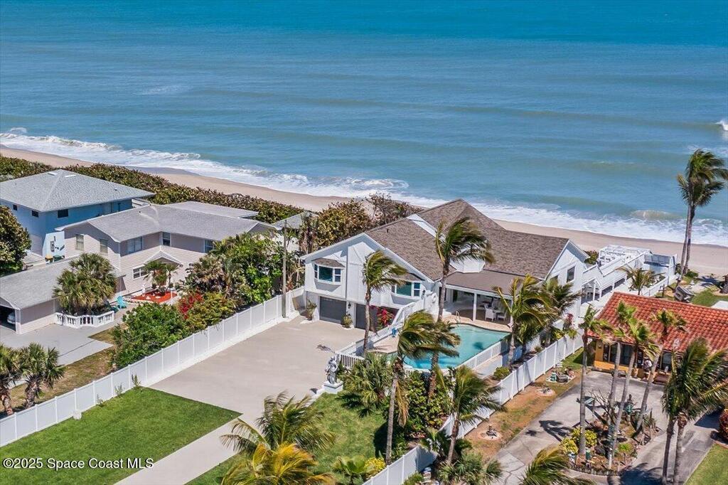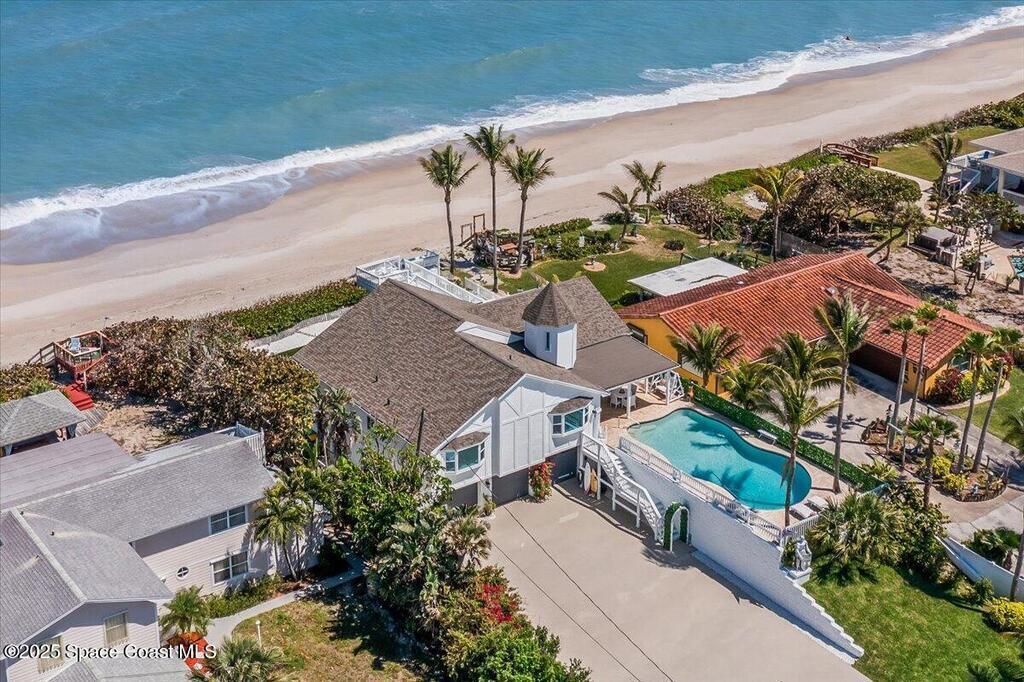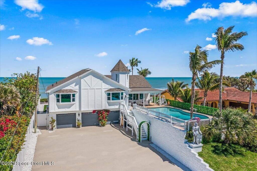 Escape to your own oceanfront retreat, where luxury meets tranquility on .73 acres of pristine coastline. This completely renovated 5-bedroom, 4-bath estate in Melbourne Beach offers 75 feet of direct beachfront, a resort-style saltwater pool, and multiple ocean-view decks, including a Captain's Lookout for breathtaking rocket launches. The thoughtfully designed layout features three bedrooms upstairs, while the lower level offers a private 2-bedroom, 1-bath guest suite with its own full kitchen and private entrance--perfect for guests or multigenerational living. Recent upgrades include a new roof (2023), four new HVAC systems (2025), impact windows, and much more. Step inside to find wide-plank oak flooring, high-end quartz finishes, and a designer kitchen that blends beauty with function. This is more than a home--it's a coastal sanctuary, move-in ready and designed for total relaxation.