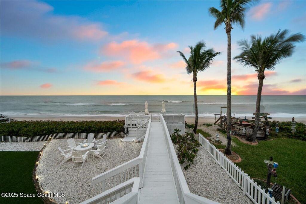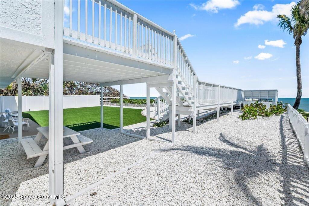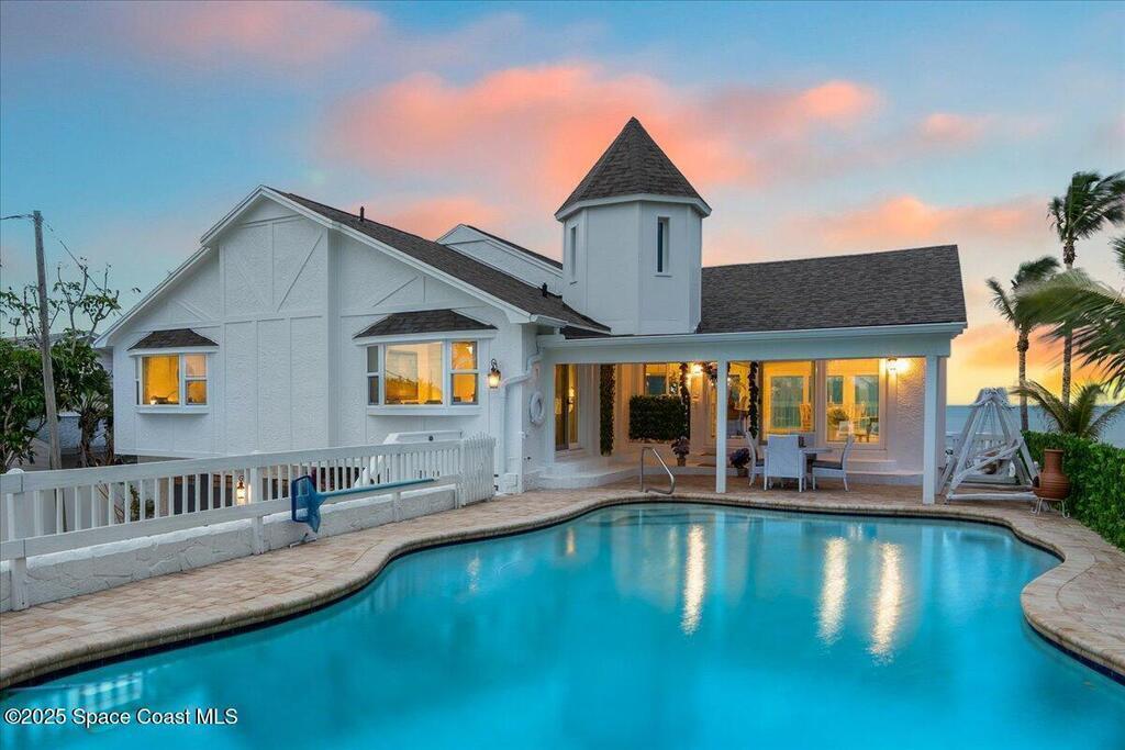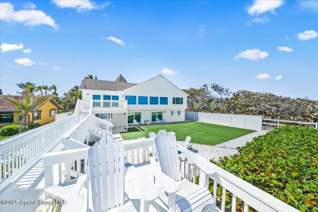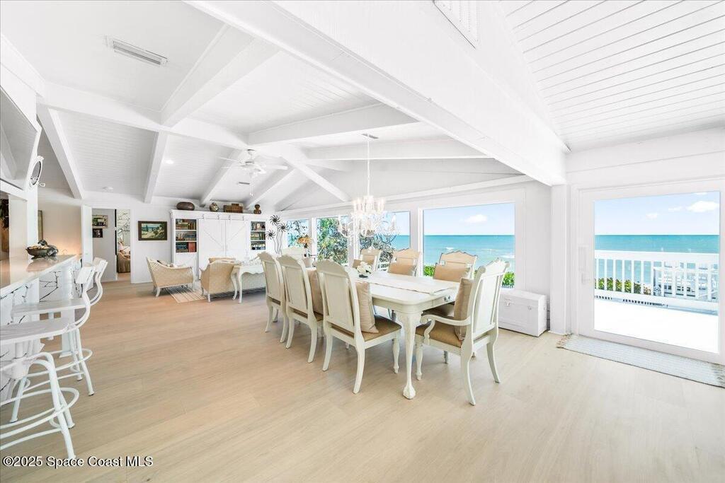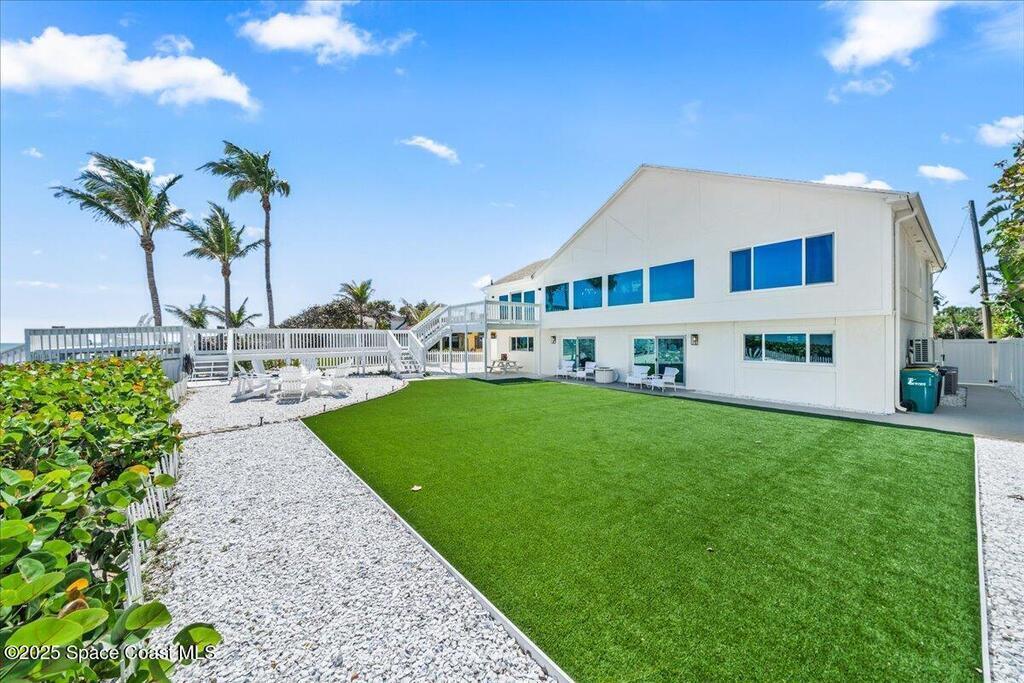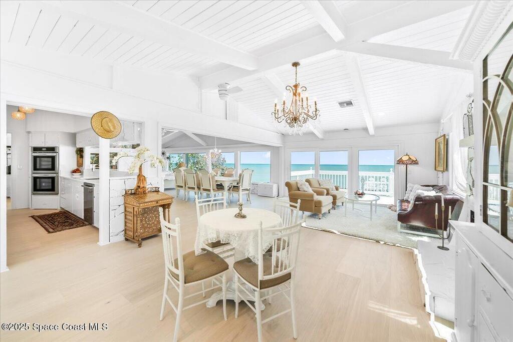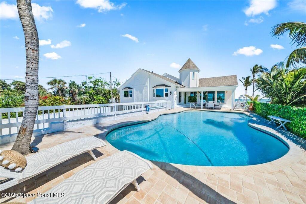 Escape to your own oceanfront retreat, where luxury meets tranquility on .73 acres of pristine coastline. This completely renovated 5-bedroom, 4-bath estate in Melbourne Beach offers 75 feet of direct beachfront, a resort-style saltwater pool, and multiple ocean-view decks, including a Captain's Lookout for breathtaking rocket launches. The thoughtfully designed layout features three bedrooms upstairs, while the lower level offers a private 2-bedroom, 1-bath guest suite with its own full kitchen and private entrance--perfect for guests or multigenerational living. Recent upgrades include a new roof (2023), four new HVAC systems (2025), impact windows, and much more. Step inside to find wide-plank oak flooring, high-end quartz finishes, and a designer kitchen that blends beauty with function. This is more than a home--it's a coastal sanctuary, move-in ready and designed for total relaxation.