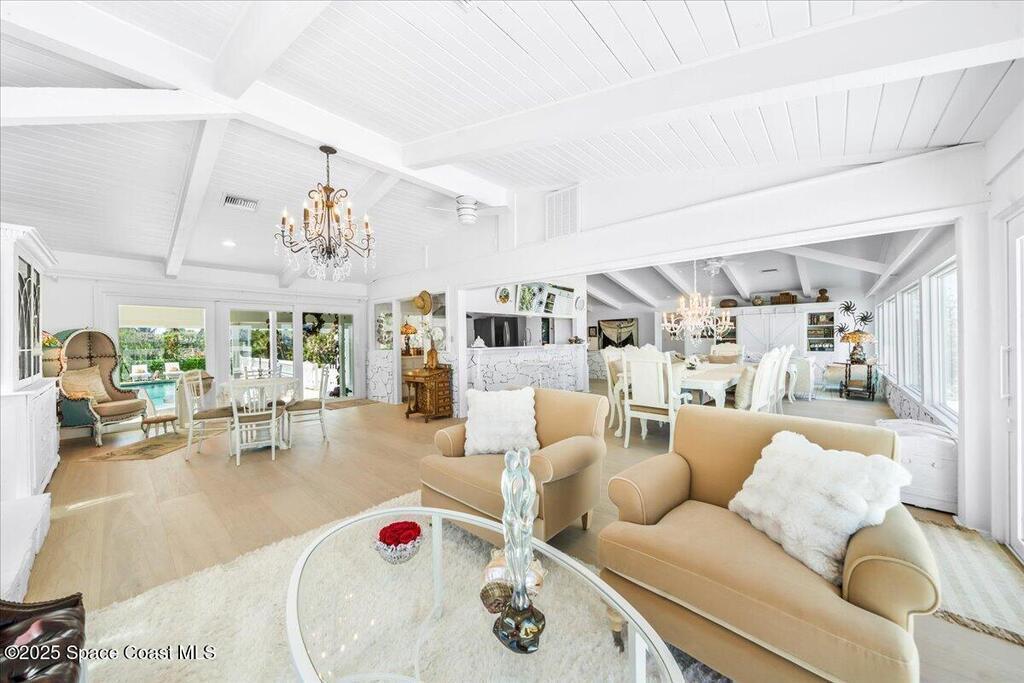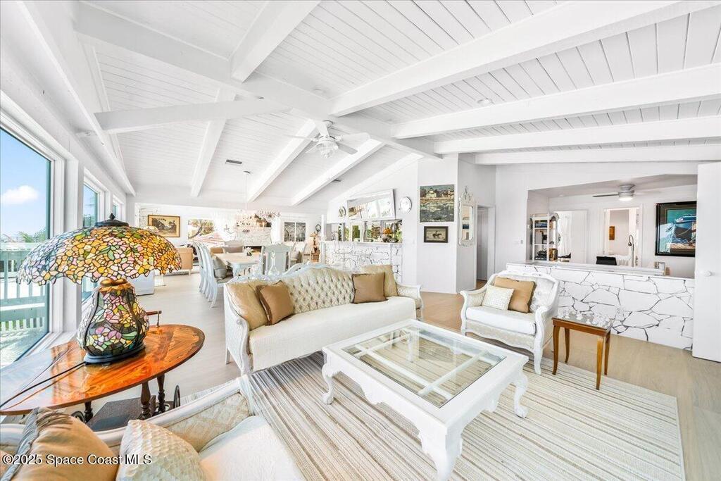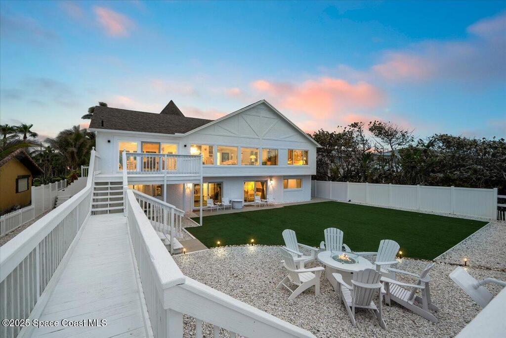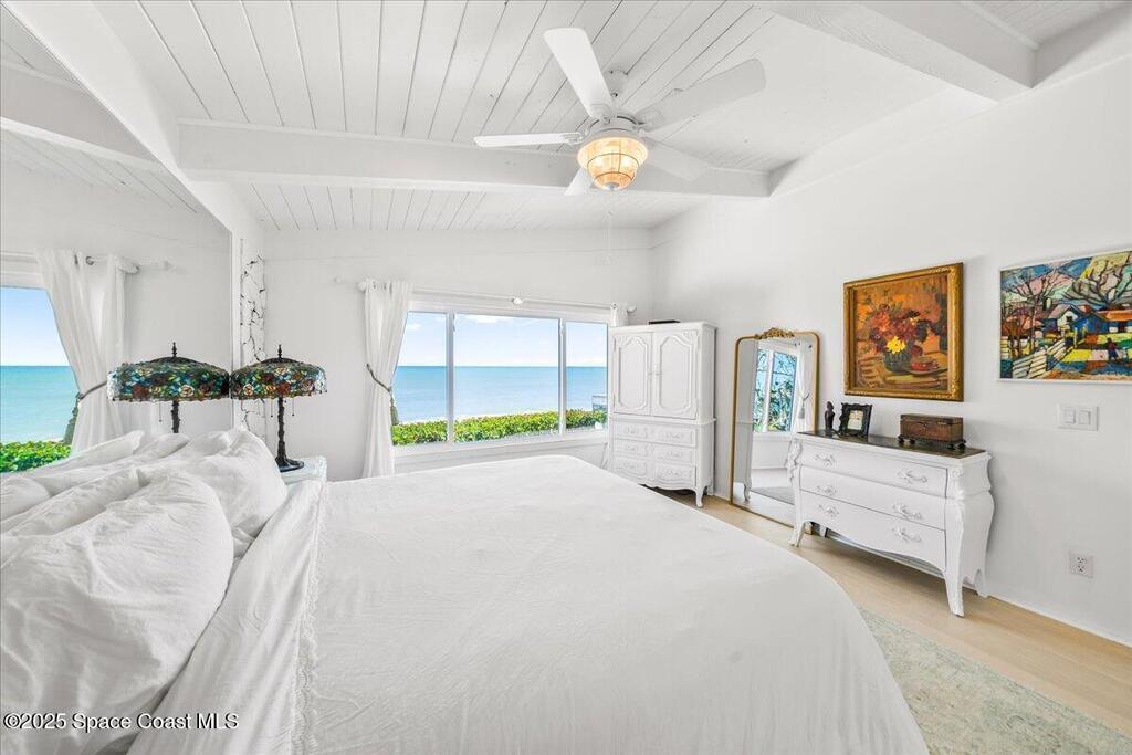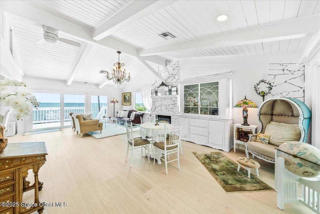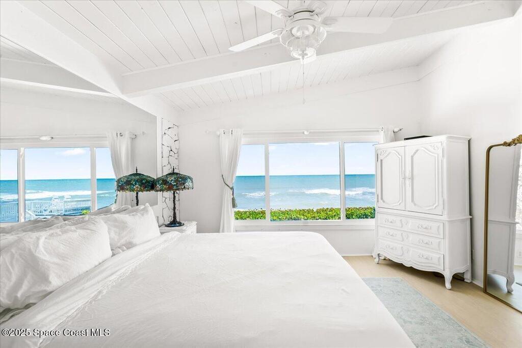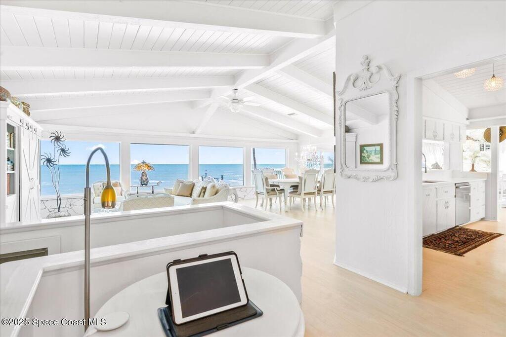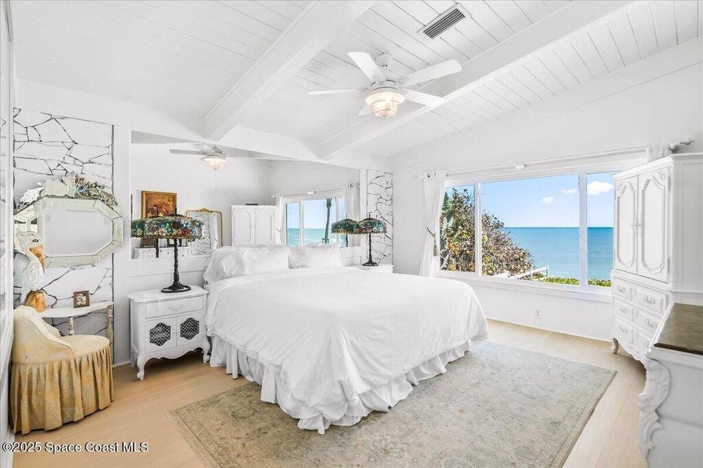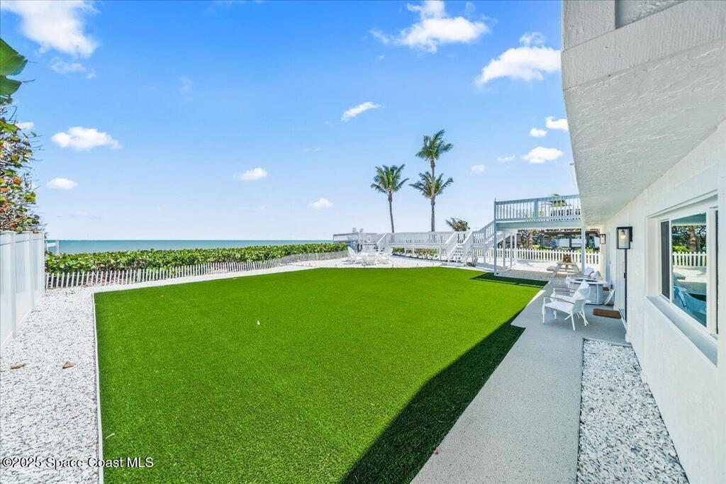 Escape to your own oceanfront retreat, where luxury meets tranquility on .73 acres of pristine coastline. This completely renovated 5-bedroom, 4-bath estate in Melbourne Beach offers 75 feet of direct beachfront, a resort-style saltwater pool, and multiple ocean-view decks, including a Captain's Lookout for breathtaking rocket launches. The thoughtfully designed layout features three bedrooms upstairs, while the lower level offers a private 2-bedroom, 1-bath guest suite with its own full kitchen and private entrance--perfect for guests or multigenerational living. Recent upgrades include a new roof (2023), four new HVAC systems (2025), impact windows, and much more. Step inside to find wide-plank oak flooring, high-end quartz finishes, and a designer kitchen that blends beauty with function. This is more than a home--it's a coastal sanctuary, move-in ready and designed for total relaxation.