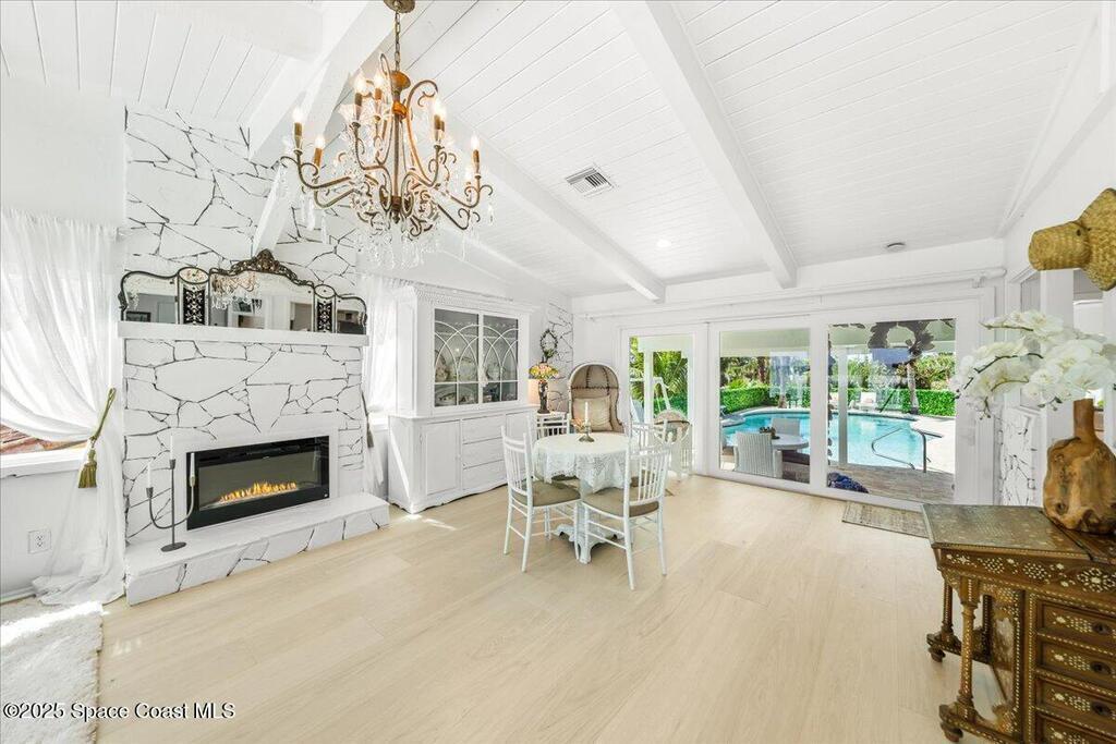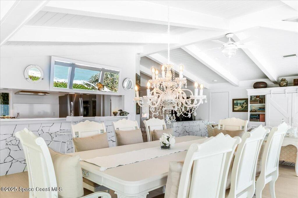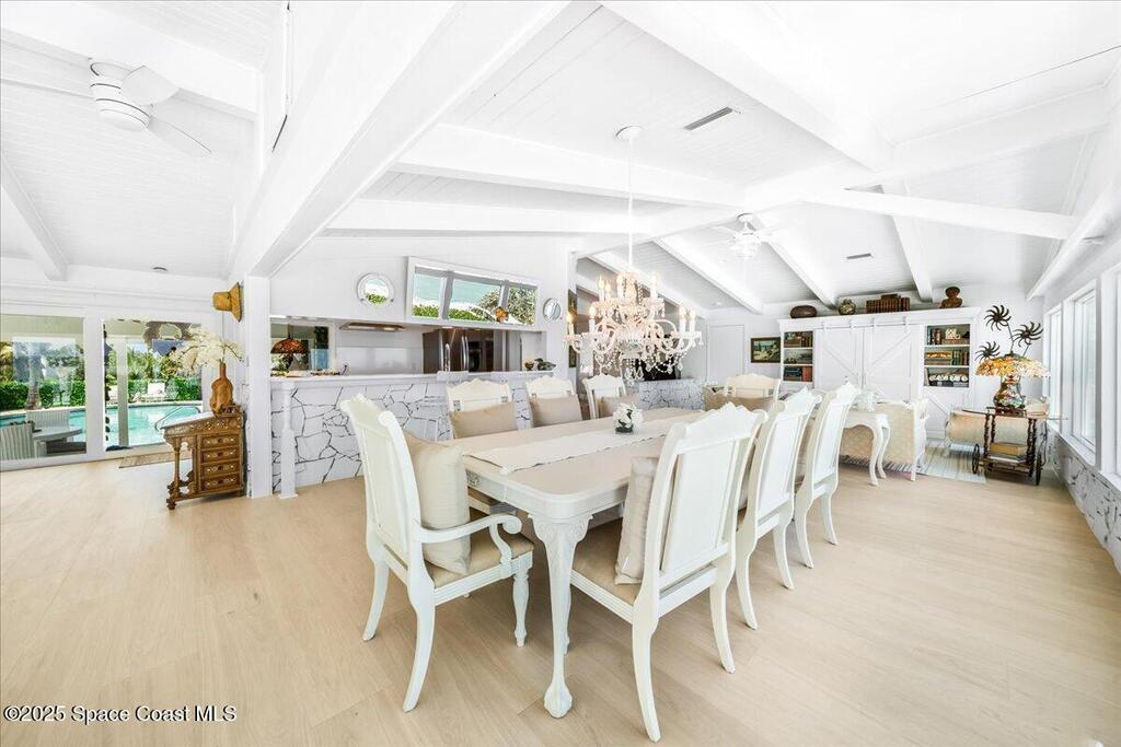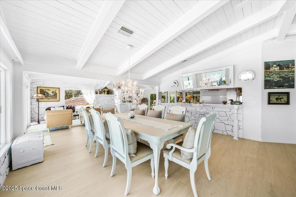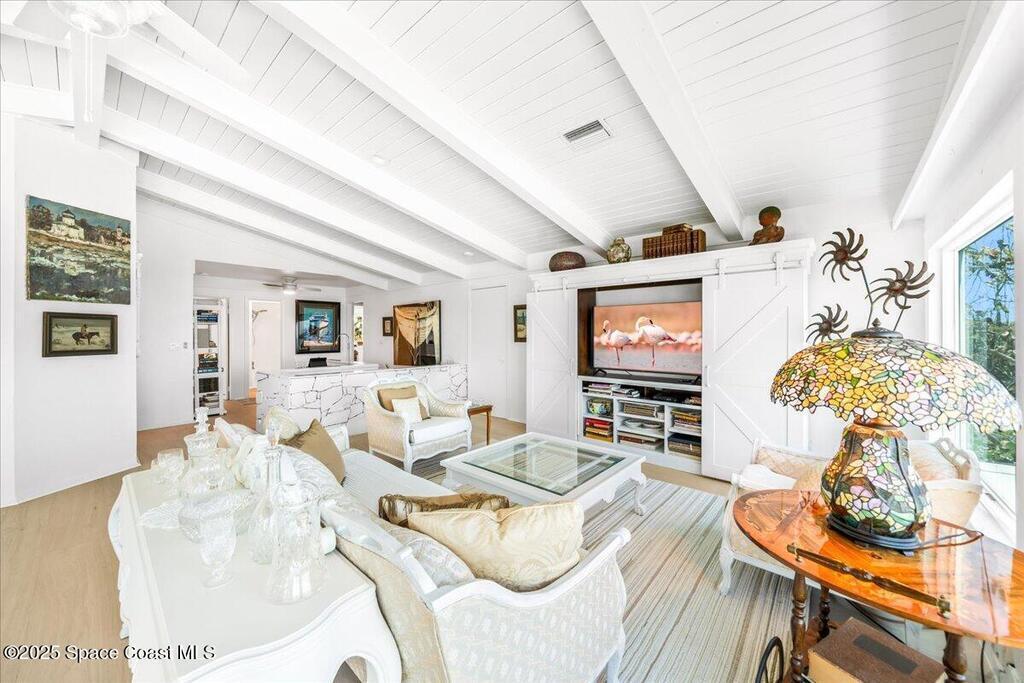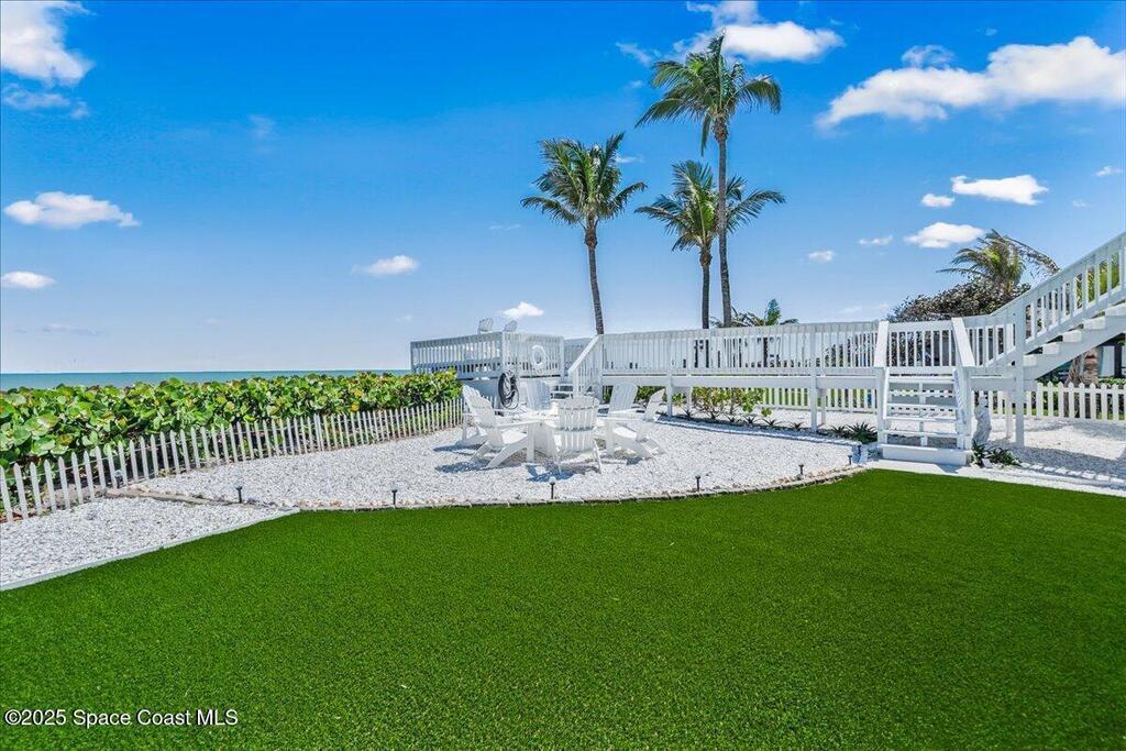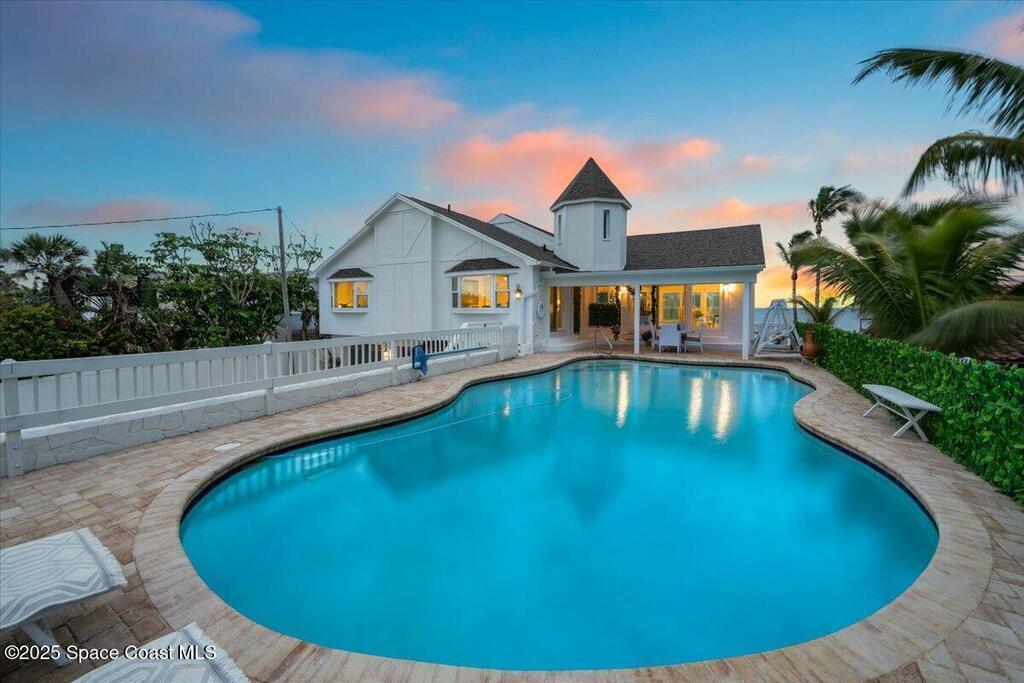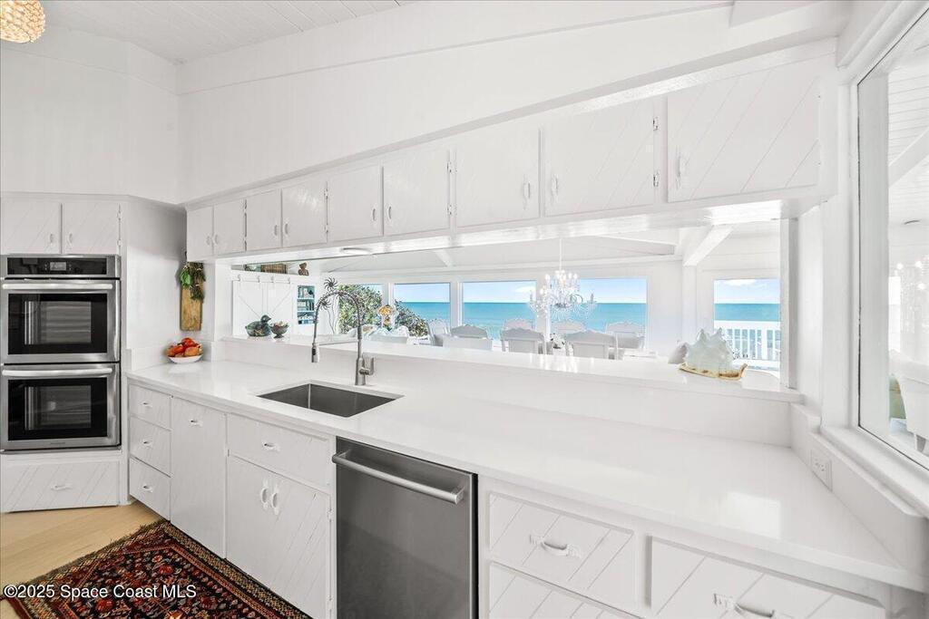 Escape to your own oceanfront retreat, where luxury meets tranquility on .73 acres of pristine coastline. This completely renovated 5-bedroom, 4-bath estate in Melbourne Beach offers 75 feet of direct beachfront, a resort-style saltwater pool, and multiple ocean-view decks, including a Captain's Lookout for breathtaking rocket launches. The thoughtfully designed layout features three bedrooms upstairs, while the lower level offers a private 2-bedroom, 1-bath guest suite with its own full kitchen and private entrance--perfect for guests or multigenerational living. Recent upgrades include a new roof (2023), four new HVAC systems (2025), impact windows, and much more. Step inside to find wide-plank oak flooring, high-end quartz finishes, and a designer kitchen that blends beauty with function. This is more than a home--it's a coastal sanctuary, move-in ready and designed for total relaxation.