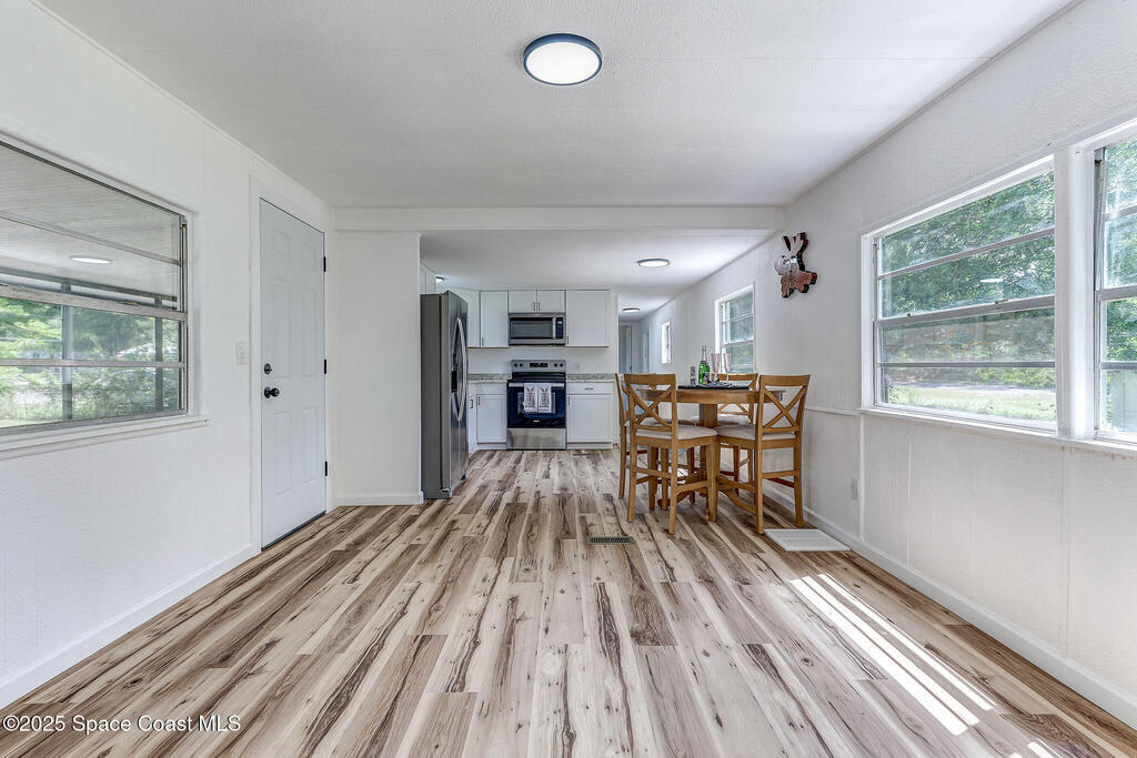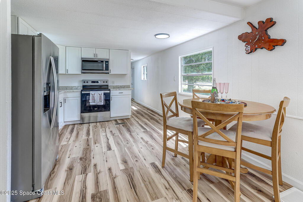 Tucked away in peaceful Mims, FL, this charming 3-bed, 1-bath home on 0.21 acres offers cozy, newly remodeled 720 sq ft of living space. Enjoy a spacious living/dining area, central A/C, and a well-maintained metal roof. Ideal for a first home or a peaceful retreat, the large lot provides space for outdoor activities and relaxation. This is a true hidden gem--don't miss out on this perfect opportunity to embrace Florida living!