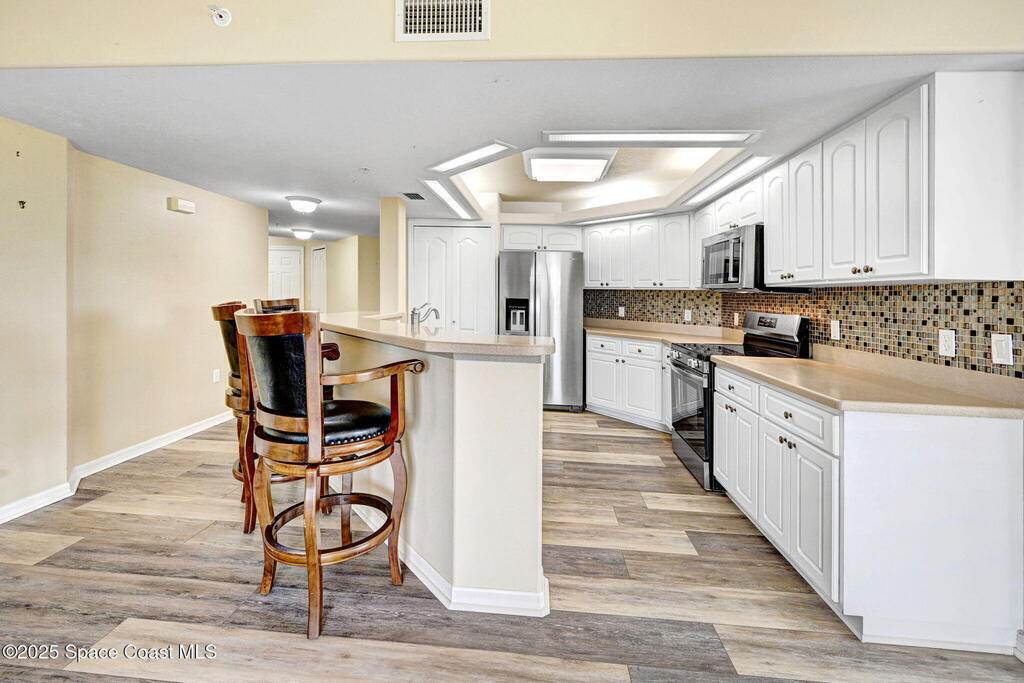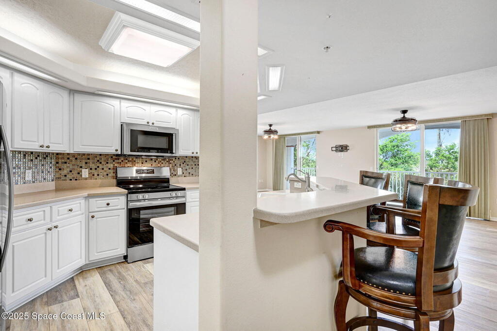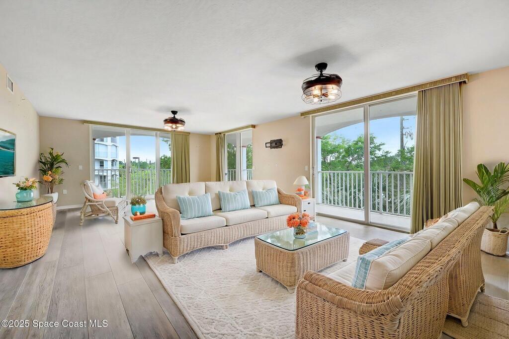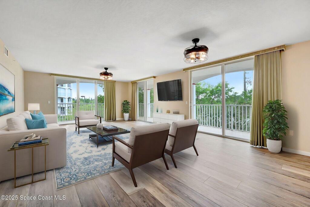 Welcome to the beautiful condos of Harbor Del Rio in Merritt Island! This dream condo is nestled in the heart of tranquility and convenience! What a beautiful condo this is! Step inside this 3-bedroom, 2-bathroom residence to discover an inviting open concept layout that seamlessly integrates the living, dining, and kitchen areas, ideal for both entertaining and everyday living. The abundance of natural light streaming through the numerous windows illuminates the space, creating a warm and welcoming ambiance. The kitchen is inviting featuring sleek Corian countertops, newer appliances, and ample cabinet space for all your culinary needs. Enjoy panoramic, scenic views from the wraparound balcony which is a perfect area for relaxing or simply savoring your morning coffee. Retreat to the spacious bedrooms, each offering comfort and privacy for restful nights. Relax in the community pool, and enyoy the clubhouse! There is a workout room, meeting room and kitchen in the building!