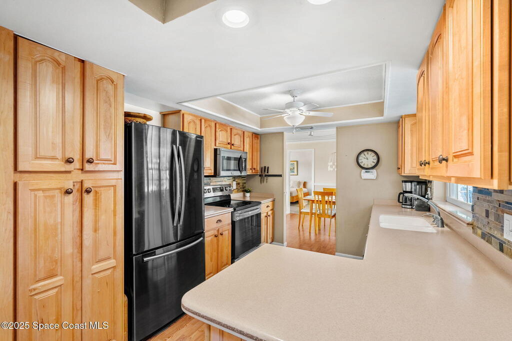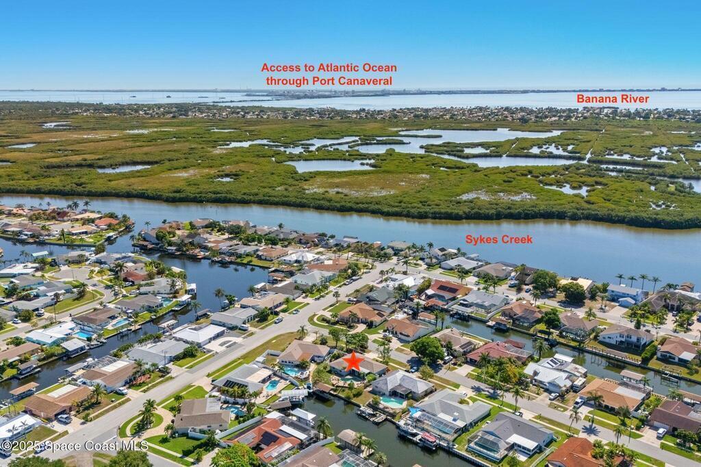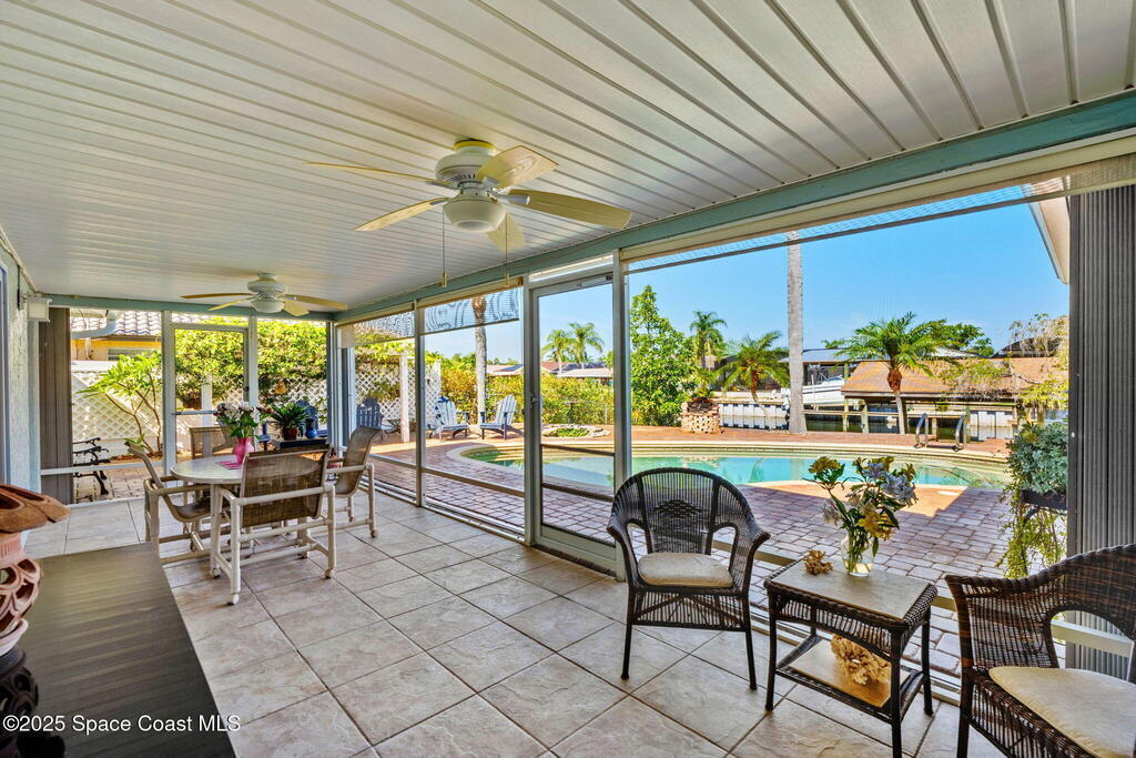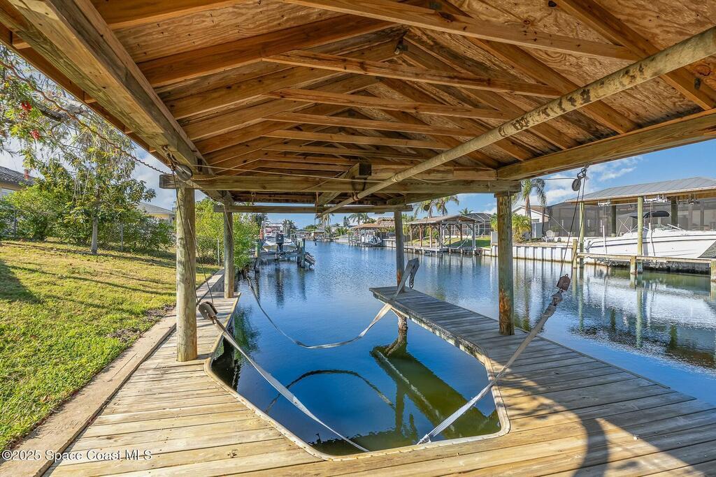 Welcome to this stunning canal front pool home located in the highly desirable Diana Shores subdivision, centrally located near top-rated schools, shopping, and dining! This home is perfect for boat enthusiasts, with a private dock and covered boat lift for direct access to the canal, providing easy passage to nearby Sykes Creek and Banana River. The private pool, fire pit, and spacious screened porch located in the fully fenced backyard create the perfect outdoor oasis for enjoying Florida's year-round sunshine. Inside the living areas seamlessly flow into outdoor spaces offering easy access to the porch, pool, and dock area, while the split floorplan provides privacy for the primary en suite.This home boasts a BRAND NEW ROOF (May 2025), updated impact glass windows, as well as a newer AC system (including ducting) replaced in 2023, and water heater replaced in 2022. Don't miss your opportunity to own this exceptional property in one of Merritt Island's most desirable locations!
