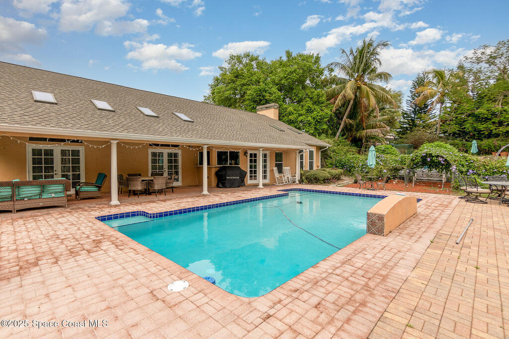 Welcome to your personal sanctuary--this 4 bedroom 3.5 home is nestled on a lush, park-like acre with mature landscaping and a stunning collection of trees including coconut palms, royal poinciana, southern magnolia, and majestic live oaks. This rare gem offers both peaceful seclusion and the ideal space for entertaining extended family and friends in style.Step inside to a welcoming foyer that leads into a bright and airy living room, where French doors open to reveal serene views of the sparkling in-ground pool, expansive covered lanai, and tranquil Honeymoon Lake.