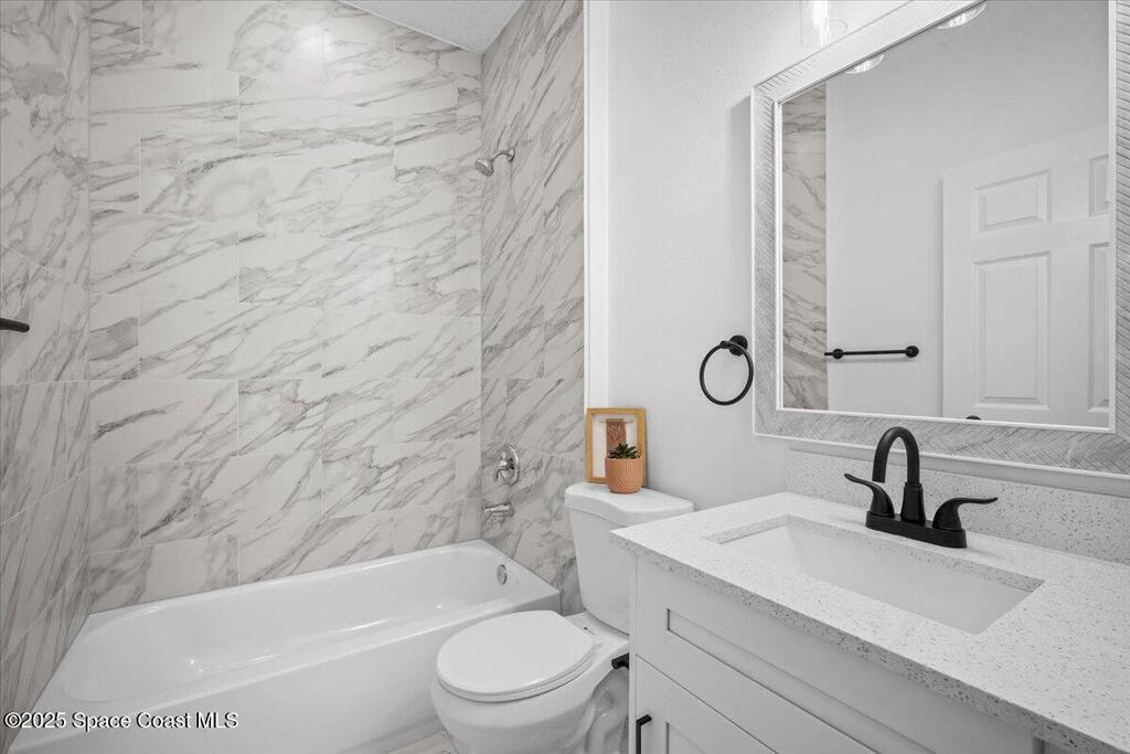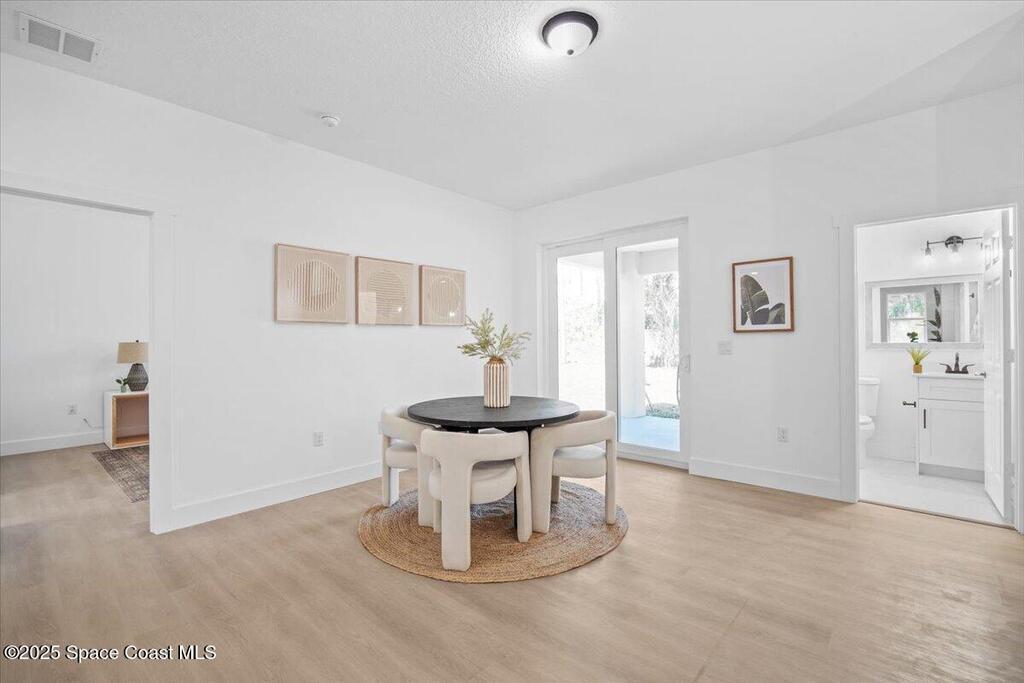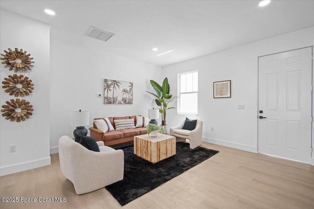 HUGE OPPORTUNITY to own this stunning New Construction Home nestled on a quiet cul-de-sac street. This thoughtfully designed 4 Bedroom, 2.5 Bath residence offers an Open Floor Plan, Soaring Volume Ceilings, Recessed Lighting & Luxury Vinyl Flooring. The Ultra-Modern Kitchen features Quartz Counters, Breakfast Bar, Pantry, Energy Star SS Appliances & Soft-Close Cabinetry. The Primary Suite is a Private Retreat with an Oversized Walk-in Closet, Spa-like Bath with a Walk-in Shower, Separate Water Closet, Double Vanity, Sleek Quartz Counters & beautiful Tile Floors. Spacious Guest Bedrooms provide comfort, while a Covered Back Patio offers the perfect place to unwind. Built with CBS Construction & Impact Windows, this home combines style with peace of mind. Landscaping just installed with New Sod & Palm Trees. Easy access to St Johns Heritage Parkway & I-95. 30 min to Indiatlantic Beach & 20 min to Melbourne Int'l Airport!