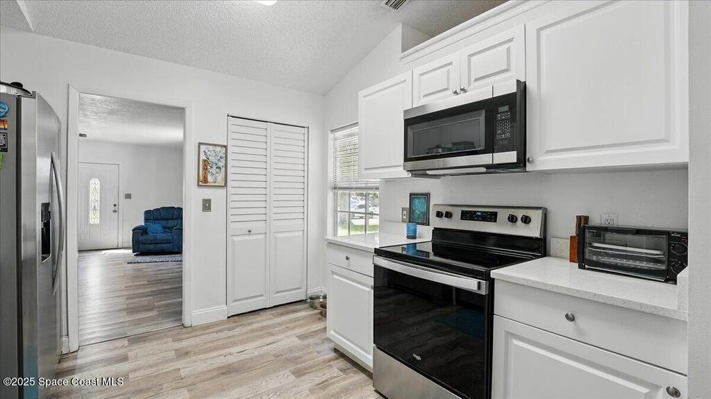 Offering 1% Lender credit & free appraisal when using preferred lender! Renovated in 2022, This 3-bed 2-bath home is move-in ready! No HOA! Great Location! This home features modern upgrades, extra living space & fully fenced backyard perfect for any lifestyle! The kitchen has quartz counters, newer cabinets & stainless steel appliances. Other updates include no carpet, updated vanity tops & hot water heater. The poly plumbing has been replaced for added peace of mind! Converted attached garage adds 400 sq.ft. of additional living space, perfect for a den, family room, or flex space to fit your needs. Step outside to the screened back porch, where you can relax in the shade while the kids or pets enjoy the fully fenced backyard & watch the rockets launch from your back yard! Located just mins from public boat ramps & parks easy access to the Indian River fishing & boating. Great for 1st time home Buyer/Retiree. Easy commute to NASA, Orlando, beaches, Schools, shopping & dinning.