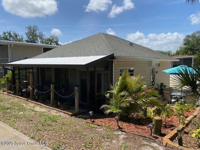 This resort home on the golf course is move in ready with recently updated appliances, AC and full house water treatment system. The screen lanai overlooks the golf course with a perfect view of rocket launches! One bedroom and one and a half baths with a bonus room for office, TV or guests attached to the half bath. There is plenty of parking for your vehicles and golf cart. An attached exterior storage building for tools or bikes. There are well kept planter gardens and an outside patio area by the lanai. This active 55+ community has an executive golf course on property, gated entrance, clubhouse, heated pool, pickleball, tennis and more. Close to beaches, airports, theme parks, shopping and restaurants.