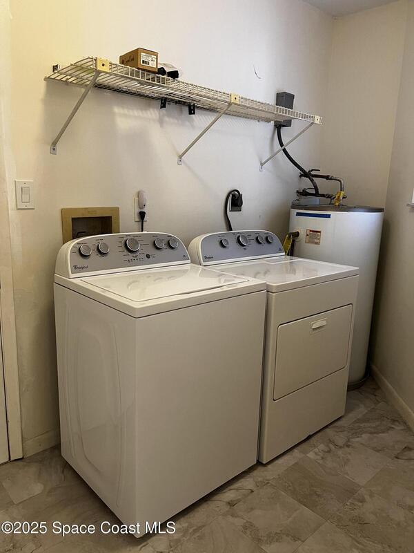 Ready to move in! BRAND NEW AC, water tank, electrical panel and priced to sell quickly! Charming townhouse/condo in the prestigious La Cita golf course community in Titusville. This pristine 2 bedroom, 2.5 bathroom home has been gently used by the owners as an occasional vacation home and backs to the 3rd hole of the golf course. Other upgrades include vinyl plank/laminate floors, Corian kitchen countertops, new skylight, no popcorn ceilings, primary bathroom shower, updated electrical outlets & switches. The kitchen has a breakfast counter, eat in area and is conveniently adjacent to the laundry room. Enjoy the convenience of an attached garage and ample storage. The spacious living/dining combo opens to a screened back porch leading to the golf course. This home has 2 large bedrooms, each with it's own ensuite bathroom and balcony. The primary suite is spacious with multiple closets plus oversized sliders that open to a huge all weather porch overlooking the golf course.This home