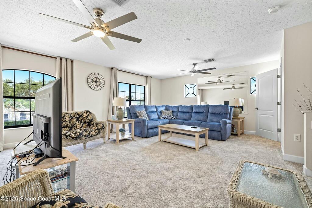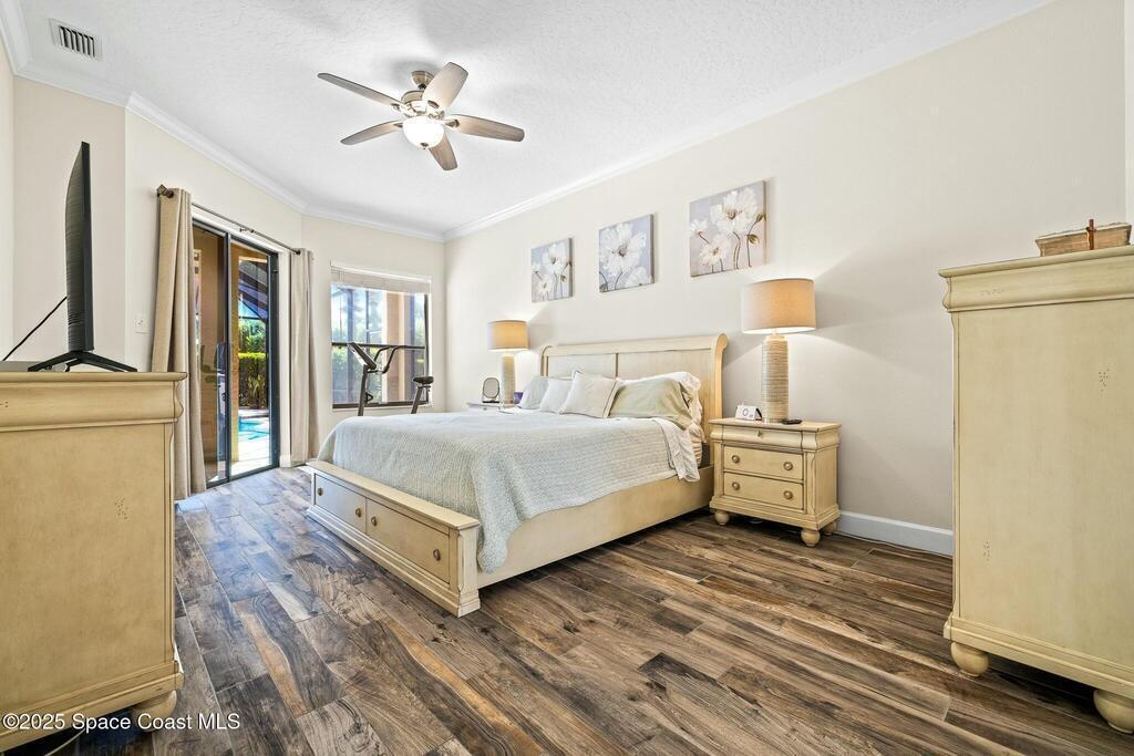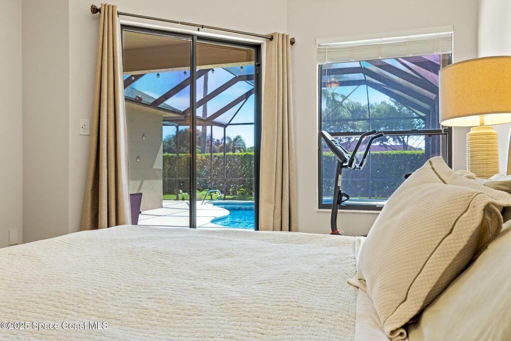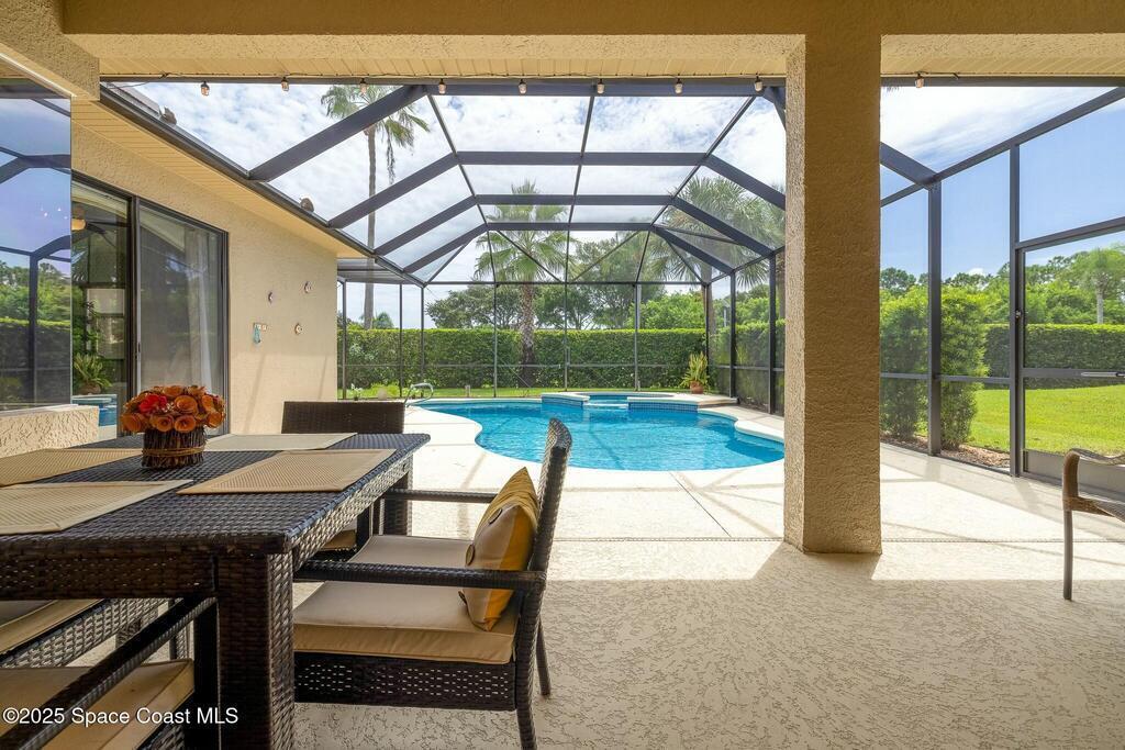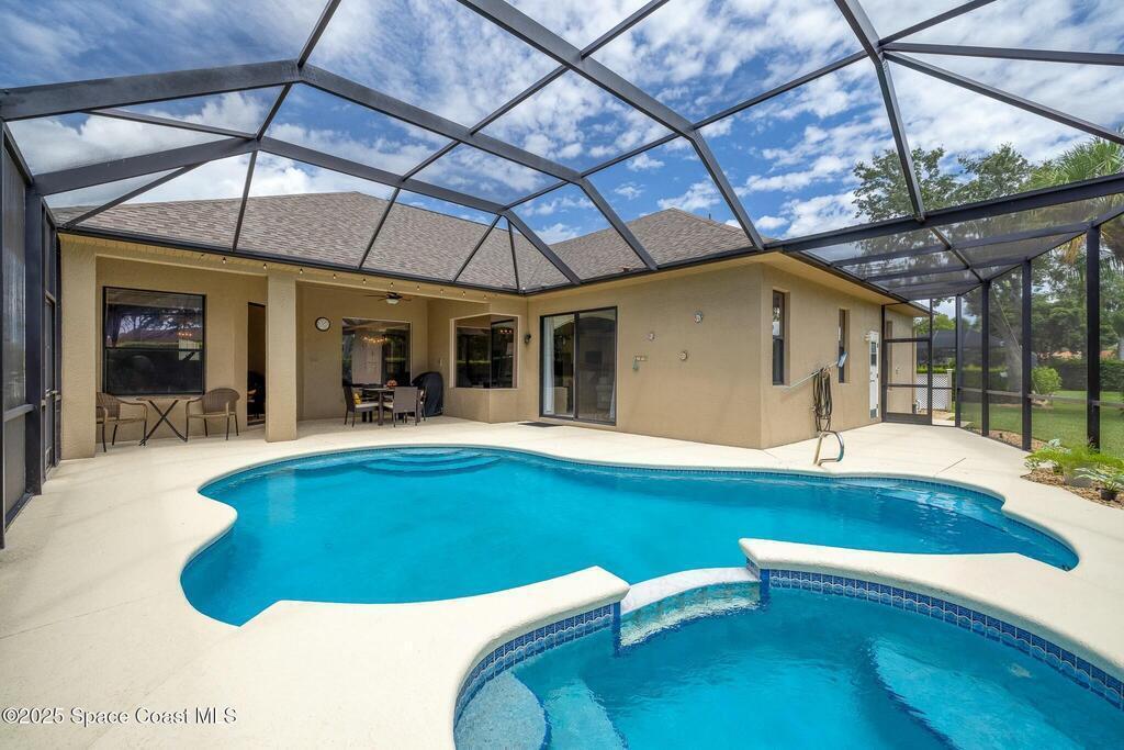 BACK ON THE MARKET AT NO FAULT OF SELLER! Pristine Suntree 4 bed, 3 bath home plus upstairs loft and half bath nestled on .23 acres by cul-de-sac. Inside this 3069 sq ft home, you will find a main level Primary Suite overlooking the pool. Bath has claw foot tub, walk-through shower, his and hers closets and vanities; Kitchen boasts slate appliances, Corian counterops and island, under cabinet lighting; gas range; double electric ovens; pantry; and breakfast bar. Gather in the open Sitting Room, Formal Dining, and Eat in Kitchen and Living Room, all with open pane windows to the Pool and Jacuzzi. Large upstairs loft has 1/2 bath and could serve as 5th Bedroom, Office or Game Room. Pool has new screen and resealed frame; two gas heat pumps, one for pool and one for jacuzzi; plus outdoor shower. 3 car garage has insulated garage doors complete with new tracks, painted floors and thermostat telling the temp and time. Roof- 2019 AC units- 2020 Gas Water Heater- 2020