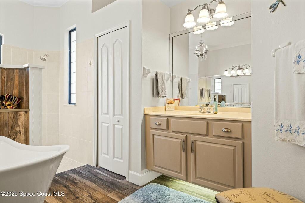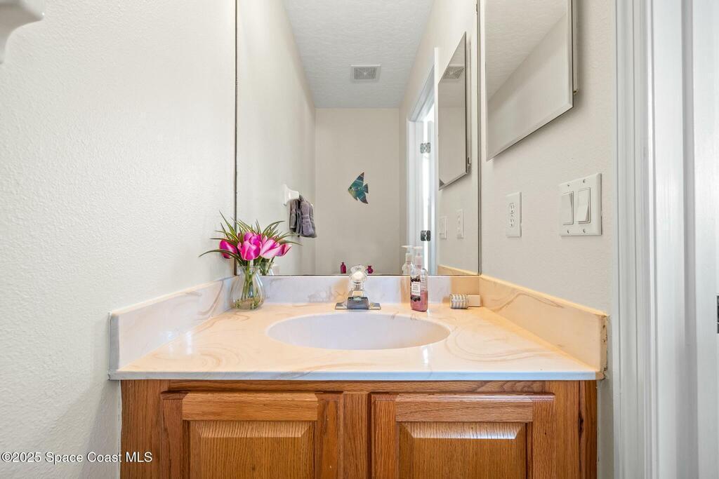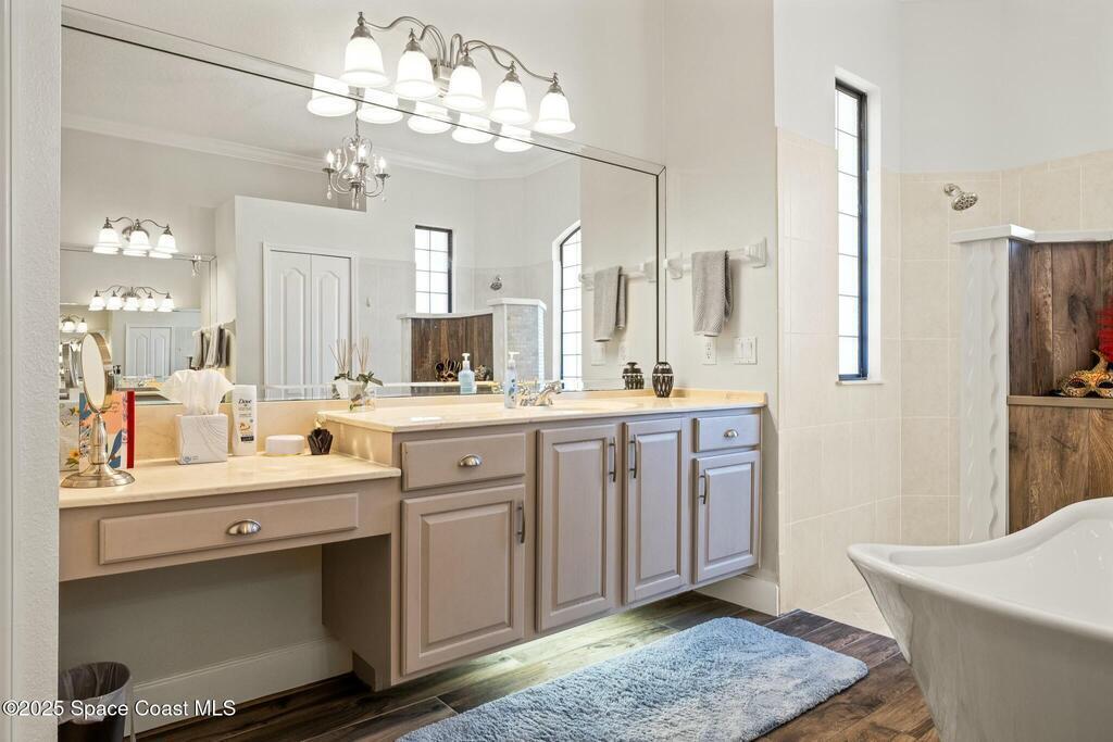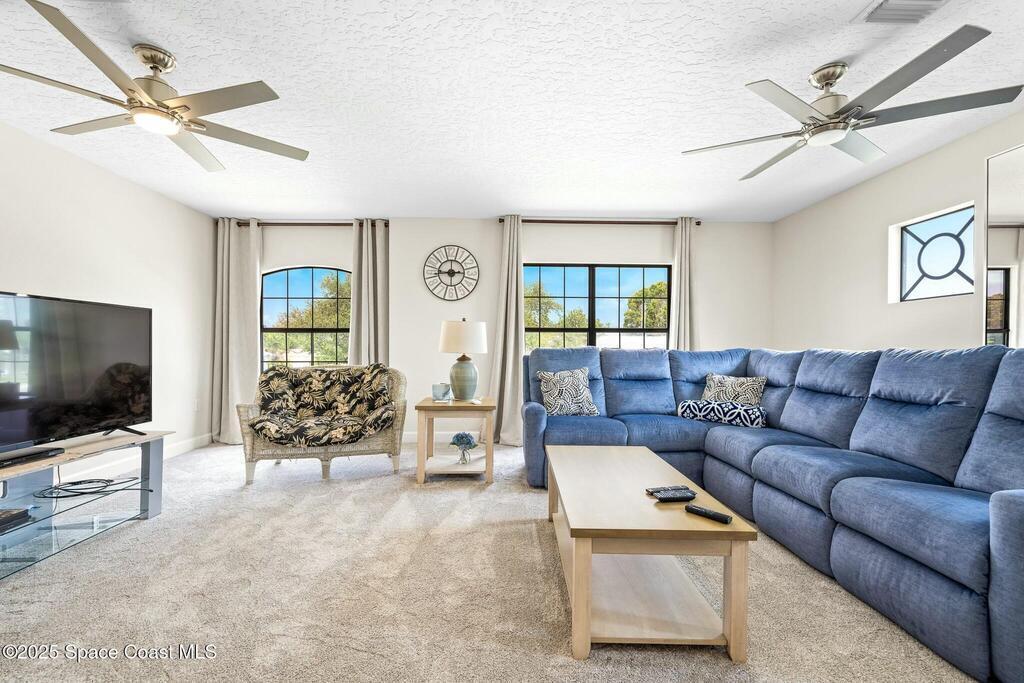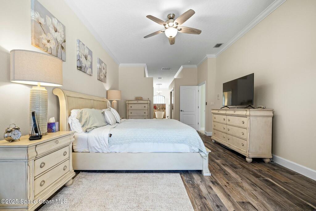 BACK ON THE MARKET AT NO FAULT OF SELLER! Pristine Suntree 4 bed, 3 bath home plus upstairs loft and half bath nestled on .23 acres by cul-de-sac. Inside this 3069 sq ft home, you will find a main level Primary Suite overlooking the pool. Bath has claw foot tub, walk-through shower, his and hers closets and vanities; Kitchen boasts slate appliances, Corian counterops and island, under cabinet lighting; gas range; double electric ovens; pantry; and breakfast bar. Gather in the open Sitting Room, Formal Dining, and Eat in Kitchen and Living Room, all with open pane windows to the Pool and Jacuzzi. Large upstairs loft has 1/2 bath and could serve as 5th Bedroom, Office or Game Room. Pool has new screen and resealed frame; two gas heat pumps, one for pool and one for jacuzzi; plus outdoor shower. 3 car garage has insulated garage doors complete with new tracks, painted floors and thermostat telling the temp and time. Roof- 2019 AC units- 2020 Gas Water Heater- 2020