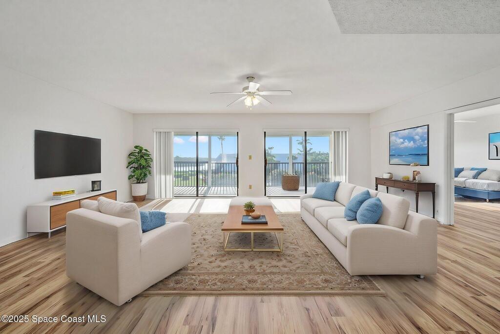 Welcome to your serene riverfront escape-where every day ends with a breathtaking sunset. This spacious 2 bed/2bath condo offers the perfect blend of comfort, light, and water views in a beautifully maintained community. Lots of natural light with 3 sliders to the large screened balcony. Primary suite includes an en-suite bath and generous closet space, while the second bedroom is ideal for guests, home office or both. Don't forget the garage right across from the elevator! Enjoy resort-style amenities such as a heated pool, hot tub, tennis courts, pickleball and direct river access perfect for paddle boarding, kayaking and fishing. Just a short walk to the beach, shopping, and restaurants. Experience the best of beachside living right here! A short bike ride away to downtown. Close to Port Canaveral, NASA, SPACEX and Blue Origin.