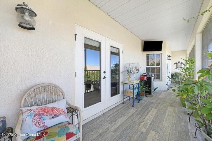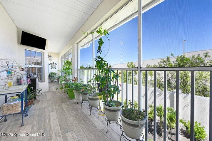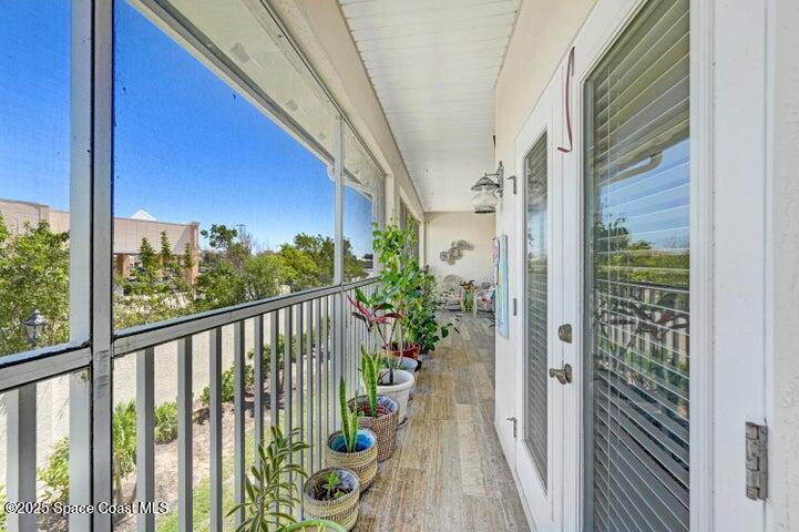 Contemporary, modern & elegant, updates you want find anywhere else. Beach side Community with large POOL /waterfall, Clubhouse, Fitness center, Tennis court. ThisUnit has one of the best locations with shady Park area in front and nobody behind. This Unit is in superb condition 12 recessed lights were ADDED to the soaring ceilings and brighten up this elegant place as no other. Abundant kitchen space with lg. breakfast bar, stainless steel appliances and walk in pantry. Delightful front balcony with French doors from a 17x15 room, with the latest modern decor. All doors & windows Hurricane proof. Lg. Master his & her oversized walk-in closet & Master bath, separate garden tub, glassed in shower and private toilet stall. The screened back balcony spans across the entire back, with tile floors. Travertine & matching luxury vinyl plank floors throughou