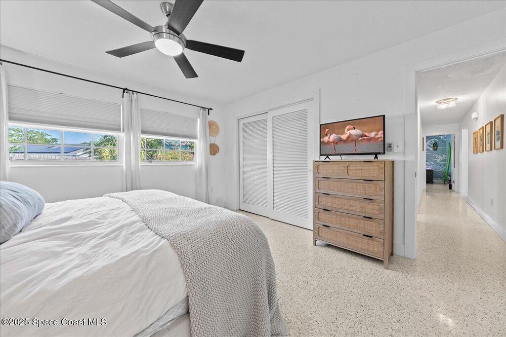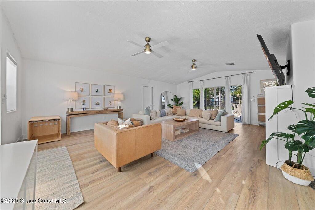 This 4 bedroom 2.5 bathroom home in Indian Harbour Beach literally has it all. Huge lot with inground, sparkling pool, cabana half bath, a 180 sq ft workshop. RV/Boat Parking, fully fenced and that's just the outside. When you enter through the new front door, you're left speechless by the massive great room with upgraded flooring, a fireplace focal point and cathedral ceilings. Other stand out features include polished terrazzo floors, a chef's kitchen designed by a renowned, local interior decorator complete with gas cooking, stainless appliances, quartz countertops, a marble backsplash and eat-in banquet seating. Enjoy peace of mind with a 2020 roof, 2023 panel and 2024 HVAC. Just minutes to the sand and the added option to short term rent make Indian Harbour Beach attractive to all buyers.