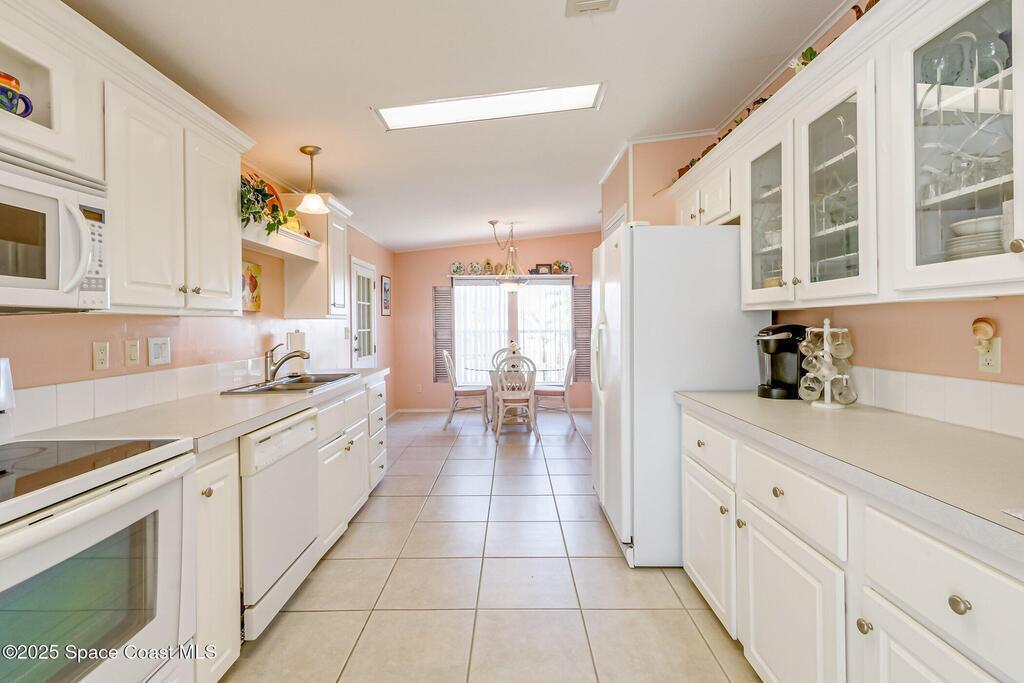 A coveted home in this Community 3/2 with a garage and waterview.Open floor plan with an extra large patio make this home perfect for family and friends to enjoy a party. extra parking spaces as well as a garage on a lovely corner lot make this home memorable' Dining for 8 on the patio as well as seating areas to view the sunset. Front door faces East for a perfect view of Rocket launches.You Own The Land and hoa covers lawncare.security cable and internet.