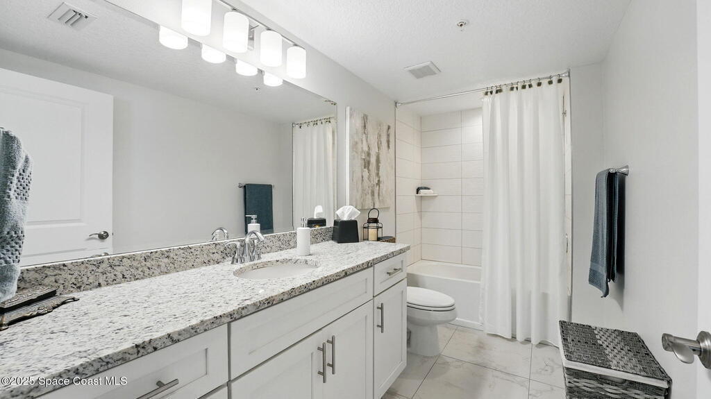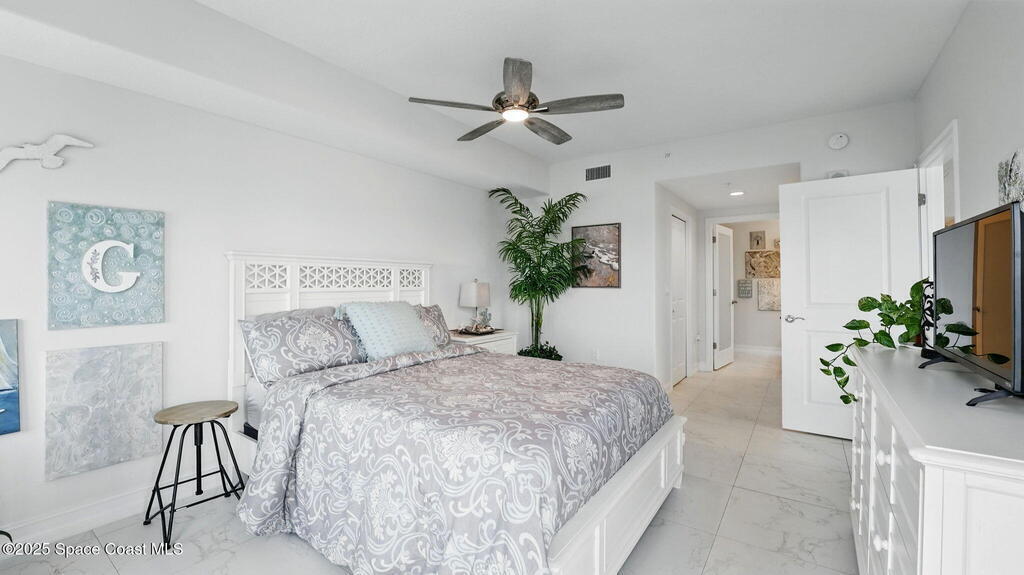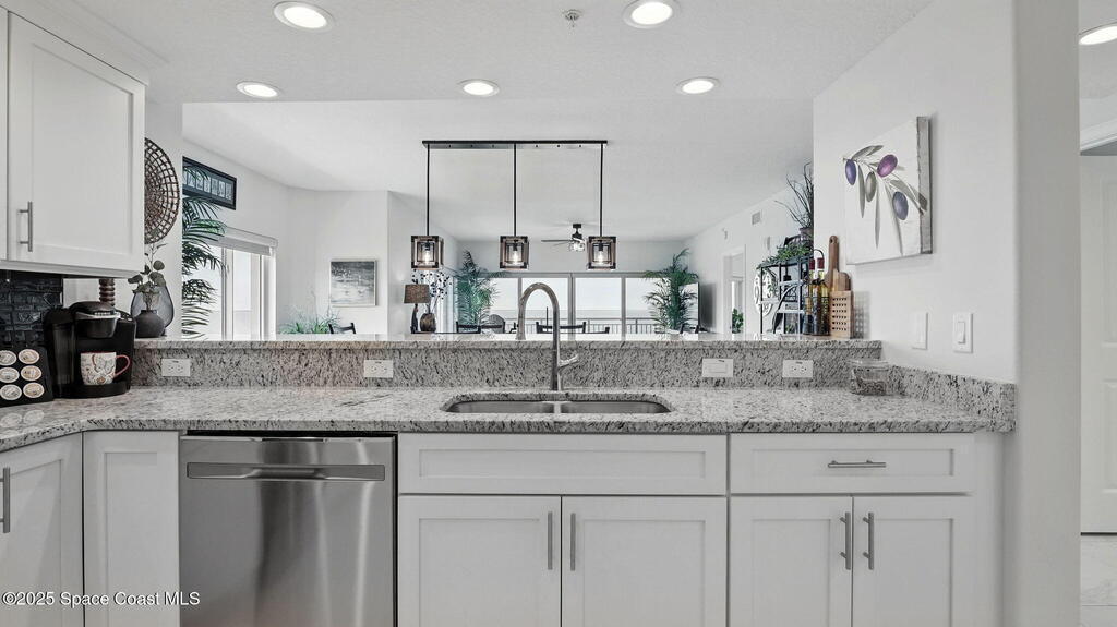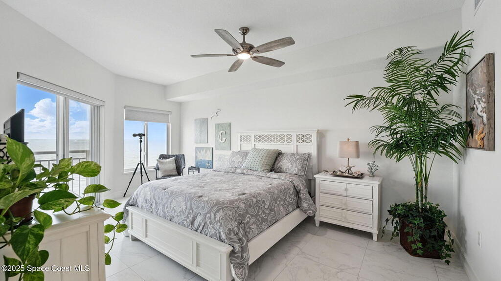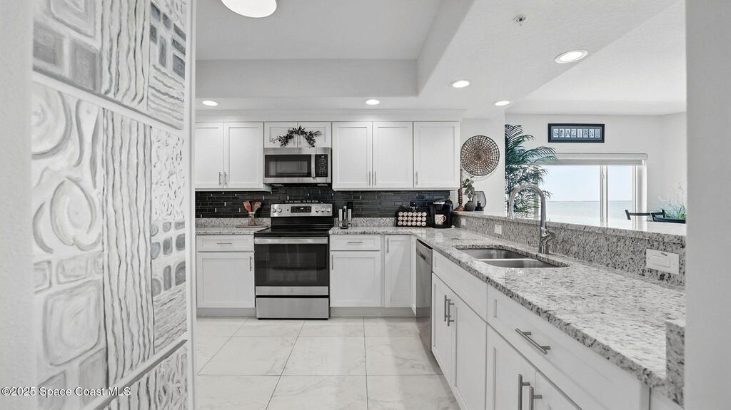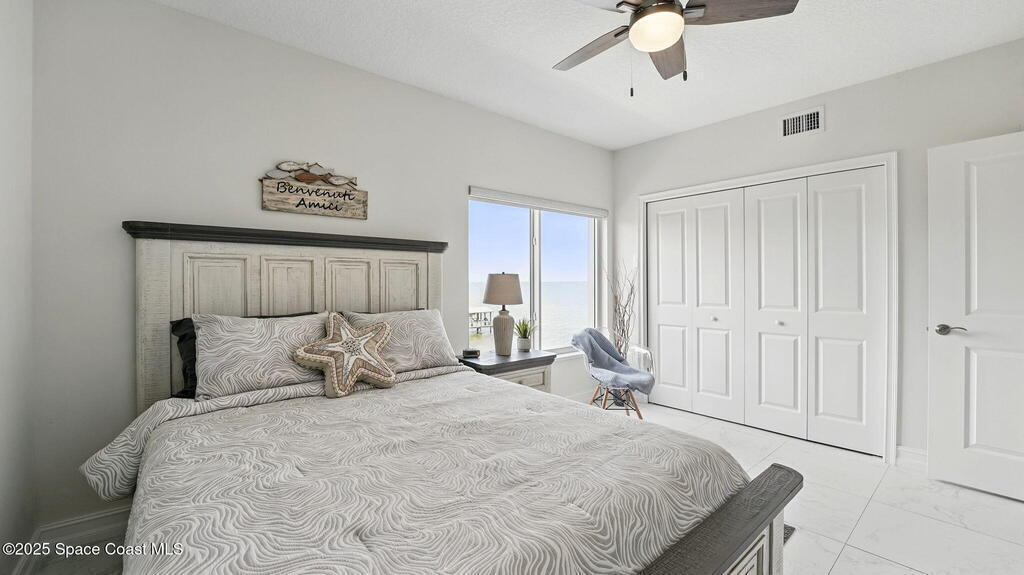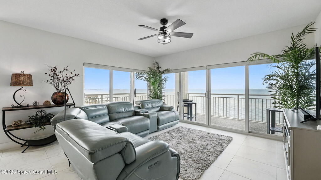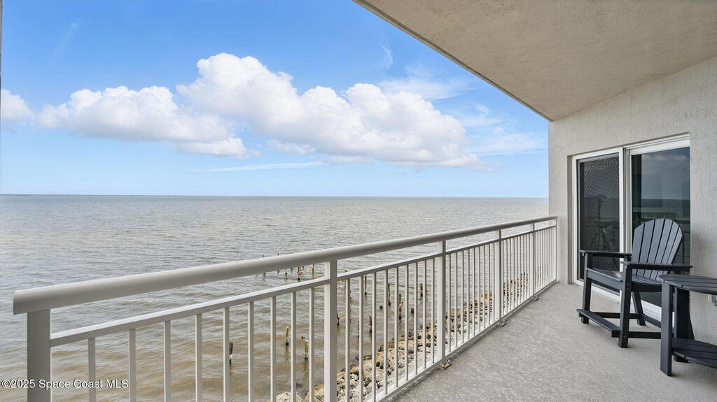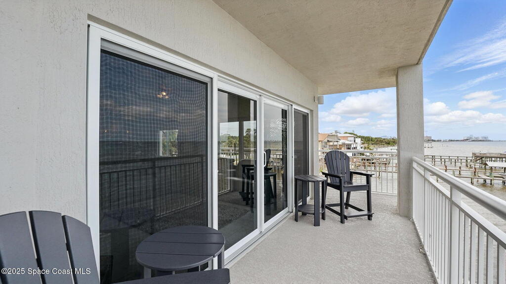 PRISTINE WATERFRONT VIEWS! This corner unit with unobstructed views to the east (Watch rocket launches from your private balcony) and north (Max Brewer Bridge) is MOVE IN READY. This spacious 3 bed-2 bath home has all available upgrades, including kitchen cabinets, granite counter tops, SS appliances, large laundry room with sink, and remote electric blinds throughout. Located in the heart of Titusville, it is a short drive to beautiful Playalinda Beach, Cocoa Beach, 40 minutes to Daytona Beach. Master suite offers His/Her closets, upgraded vanity and that glorious view. Enjoy a carefree and secure lifestyle with both reserved underground parking (a few feet from entry to elevator) and private entry garage with remote opener. Titusville offers coast to coast bike trails, lots of independent restaurants/shops and parks, only 40 miles to Orlando Airport, and just an hour to World-Famous Amusement Parks! Don't miss out on this highly desirable piece of paradise.