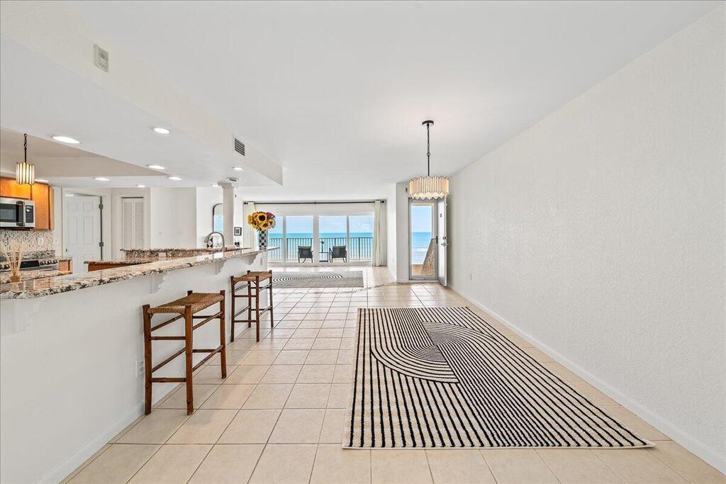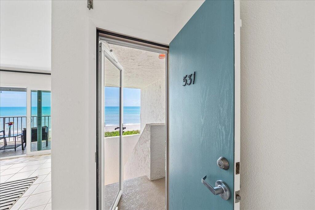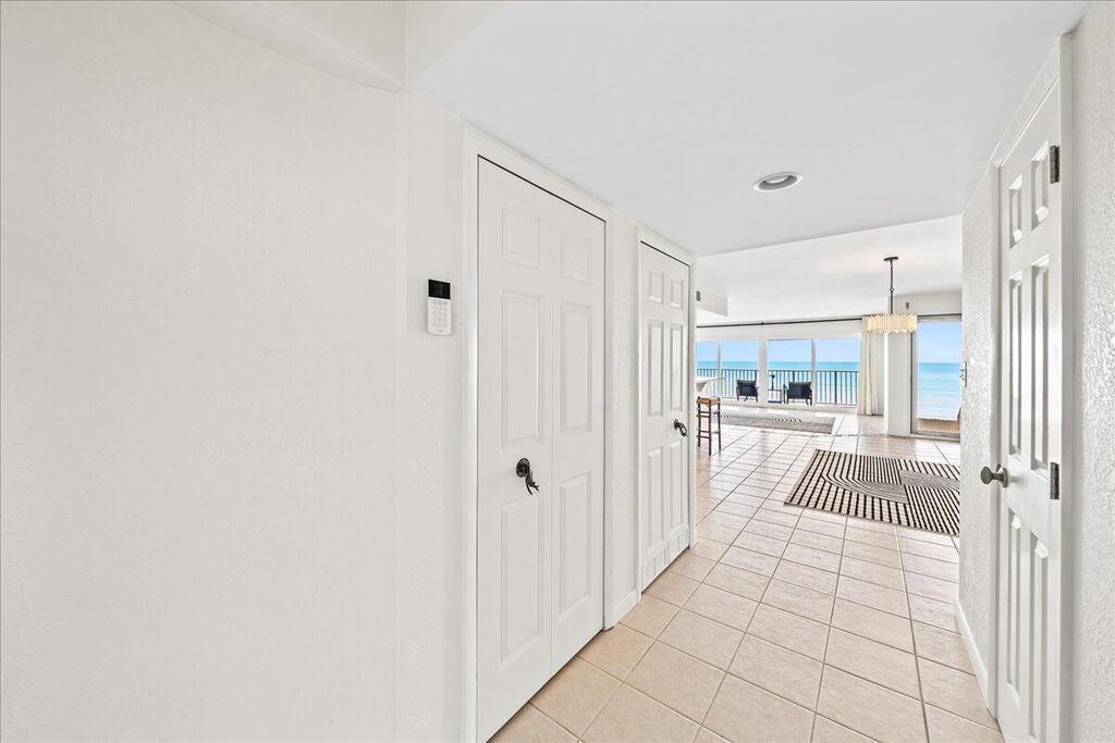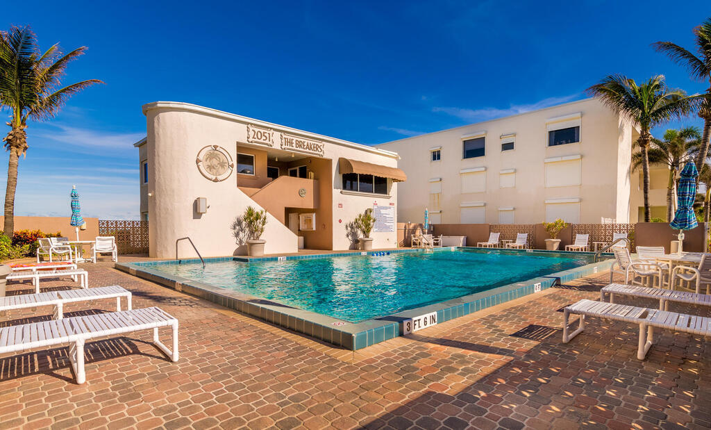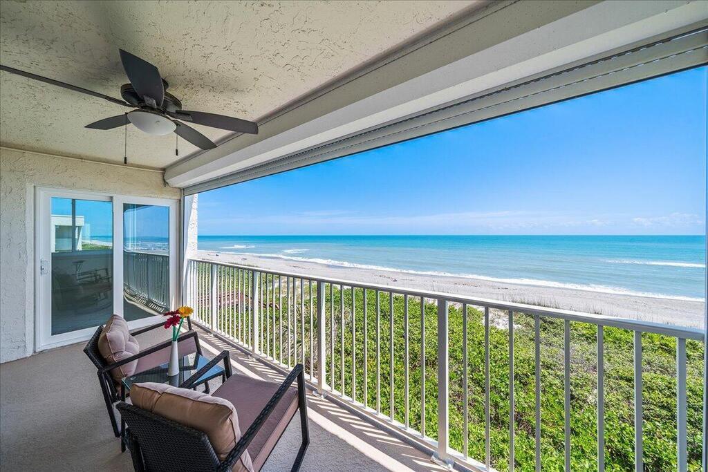 Experience luxury living in this TOP FLOOR , END UNIT PENTHOUSE at the highly sought after Breakers Condo, just south of downtown Melbourne Beach. This home has been thoughtfully updated with floor plan modifications for enhanced functionality. Enjoy the peace of mind provided by all impact glass windows, plus storm shutters, while taking in breathtaking panoramic ocean and coastal views from your primary suite windows and private covered balcony. Perfect for watching sunrises, moonrises, and rocket launches. The home also features a range of high-end upgrades, including remote-controlled blinds, high end water filtration system, a touch-sensitive kitchen sink, elegant Travertine fireplace surround and flooring accents & more! This home also includes two parking spaces and a storage room in the garage. Just steps away from the sparkling community pool, tennis courts, putting green and fitness room, come see this premium Oceanfront home today !