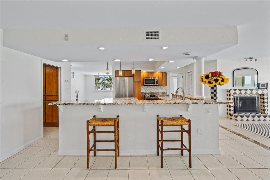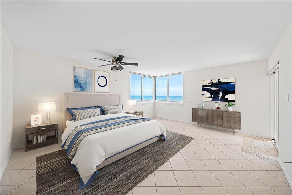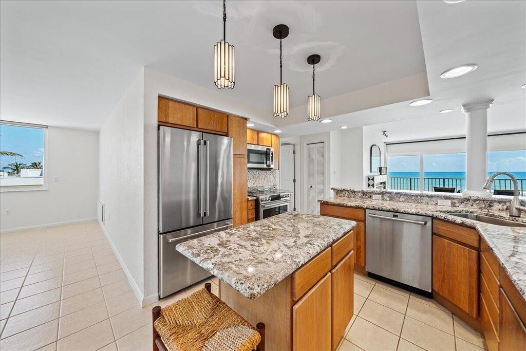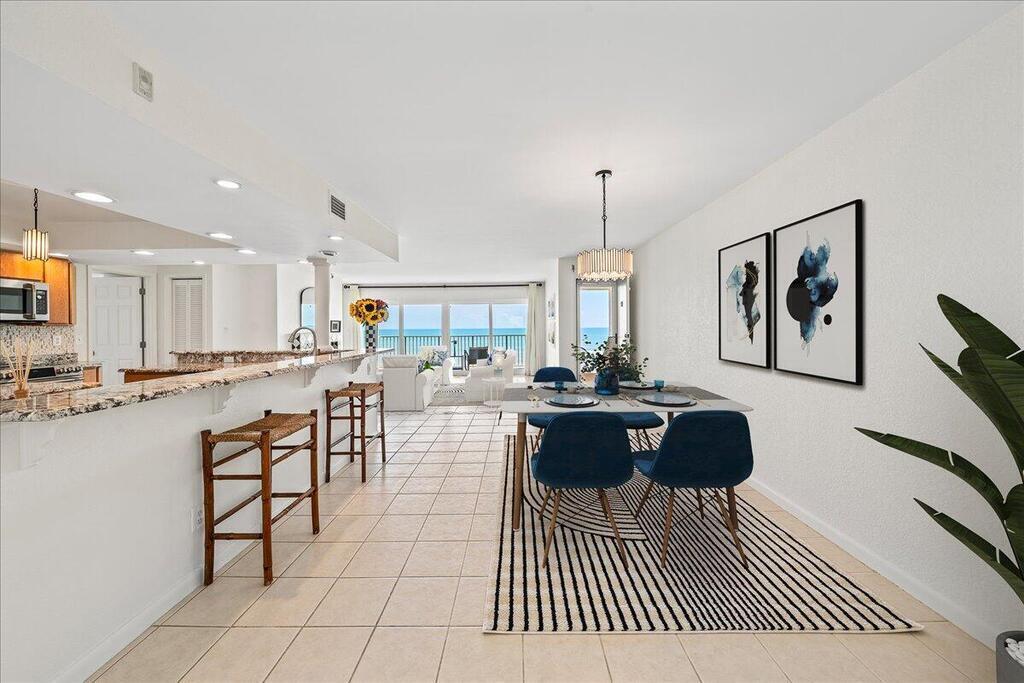 Experience luxury living in this TOP FLOOR , END UNIT PENTHOUSE at the highly sought after Breakers Condo, just south of downtown Melbourne Beach. This home has been thoughtfully updated with floor plan modifications for enhanced functionality. Enjoy the peace of mind provided by all impact glass windows, plus storm shutters, while taking in breathtaking panoramic ocean and coastal views from your primary suite windows and private covered balcony. Perfect for watching sunrises, moonrises, and rocket launches. The home also features a range of high-end upgrades, including remote-controlled blinds, high end water filtration system, a touch-sensitive kitchen sink, elegant Travertine fireplace surround and flooring accents & more! This home also includes two parking spaces and a storage room in the garage. Just steps away from the sparkling community pool, tennis courts, putting green and fitness room, come see this premium Oceanfront home today !