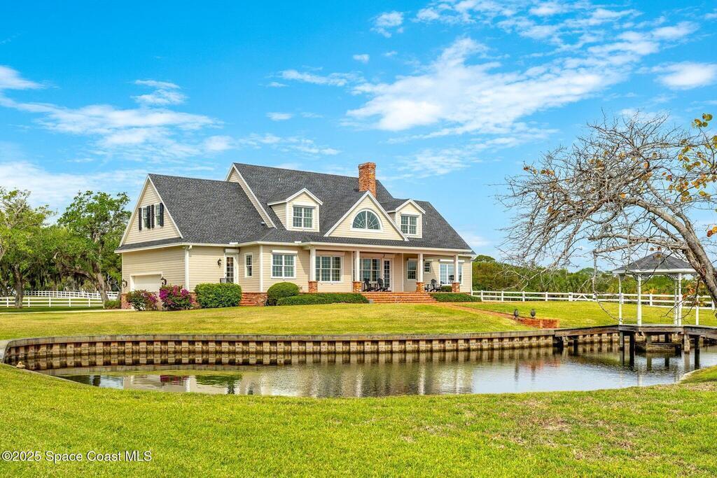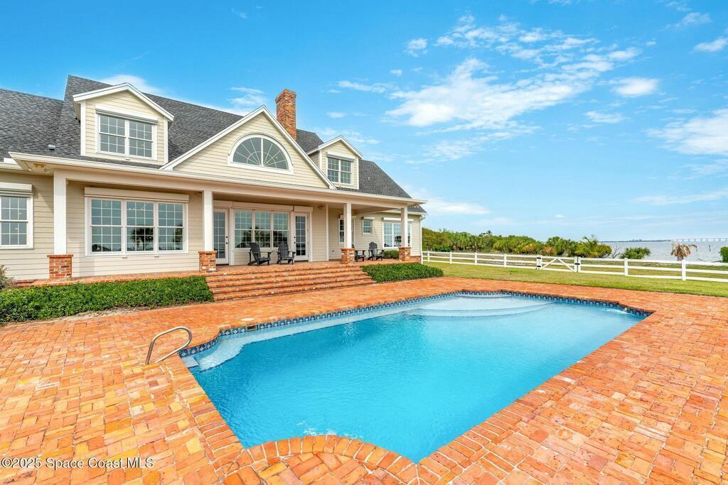 A rare River-to-River estate on nearly 6.2 acres along prestigious S. Tropical Trail offers unparalleled privacy, grandeur, and breathtaking waterfront views. A majestic oak-lined drive leads to this stately residence, featuring 540+ft of Banana River frontage to the east and 200+- ft on the Indian River to the west--both with docks, ensuring stunning sunrises and sunsets. The elegant interior boasts gleaming wood floors, soaring cathedral ceilings, and walls of windows framing serene water views. A river-facing kitchen, spacious living areas, and a luxurious primary suite create an inviting yet refined ambiance. Upstairs, three bedrooms, a Jack & Jill bath, an on-suite, and a versatile bonus room offer ample space. With a new roof (2021) and fresh exterior paint, this estate is a once-in-a-lifetime opportunity to own a rare dual-river property. Experience timeless elegance, unmatched tranquility, and endless possibilities.