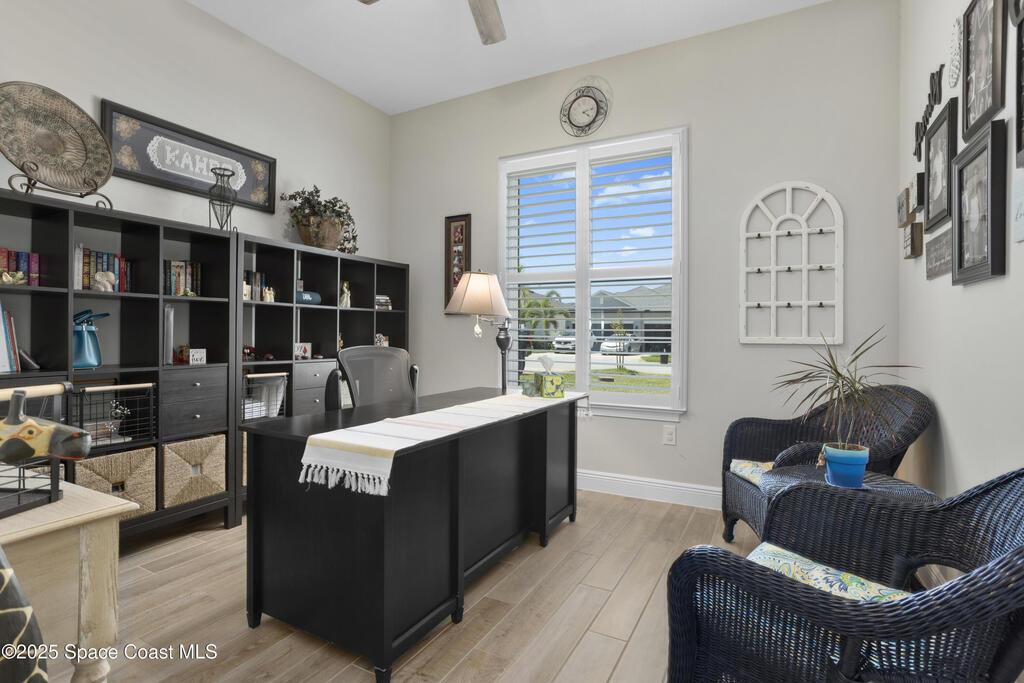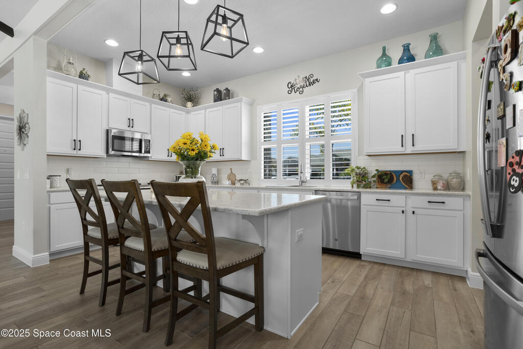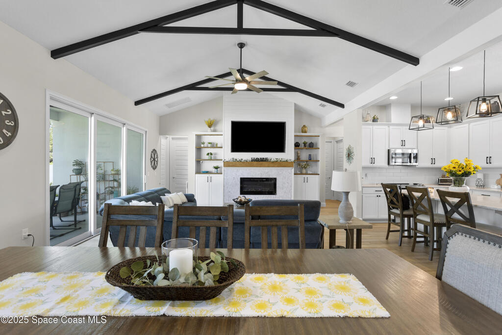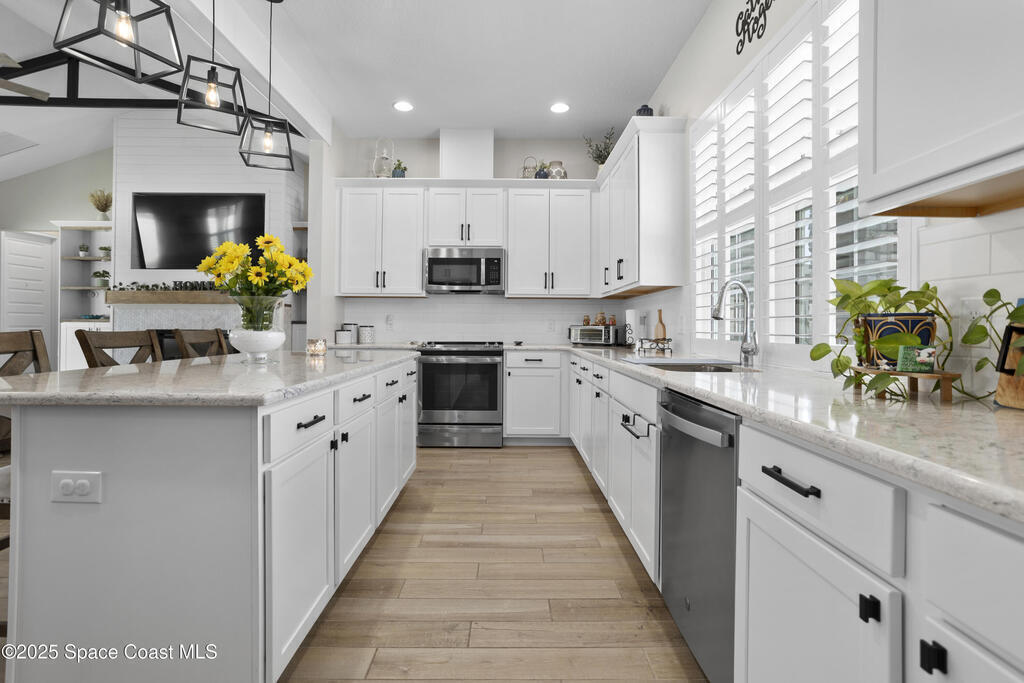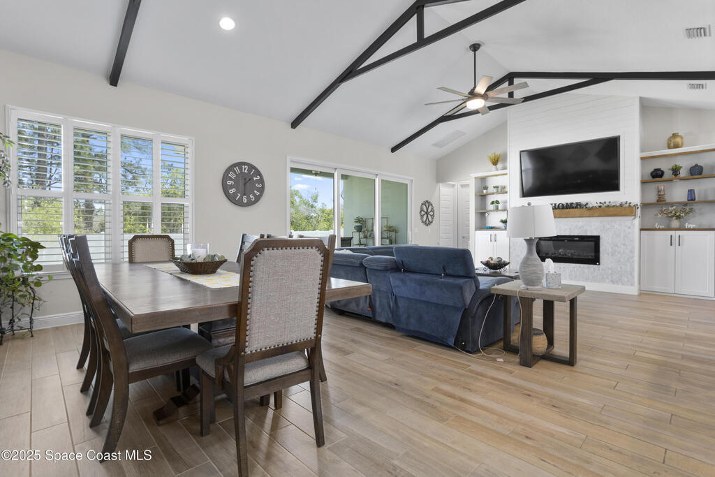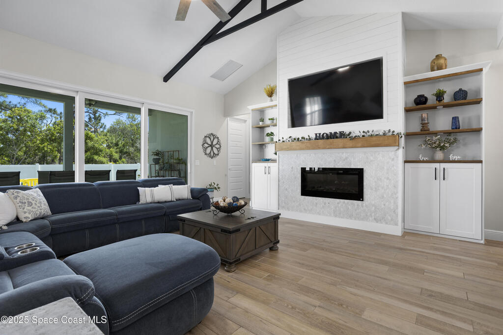 Step into luxury with this stunning home featuring an open floor plan, soaring ceilings, and tall doors throughout. Enjoy high-end finishes, solid stone countertops, and a custom electric fireplace set into a sleek tiled feature wall. The master suite boasts a shiplap accent wall and a custom walk-in closet. Plantation shutters and built-ins add elegance and function, while the triple-wide sliding glass door invites the outdoors in. The pantry is a dream with custom shelving, and the inside laundry adds convenience. Outside, find a new white vinyl fence, decorative touches, garage storage, attic flooring, and a driveway designed to meet permeable earth ratios for a future pool. With low HOA fees and every detail thoughtfully designed, this home is truly one of a kind. Don't wait--schedule your private tour today!