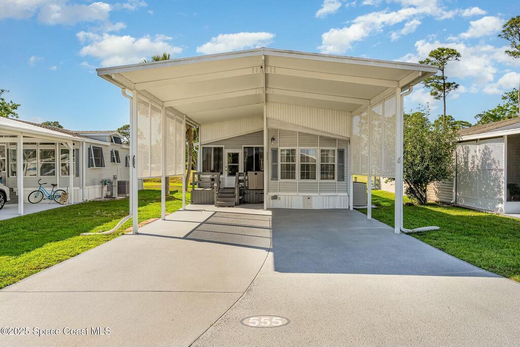Golf Course Frontage Park Model in The Great Outdoors Premier RV/Golf Resort! Seller offering $1075 credit at closing!Enjoy serene golf course views from this charming 2 bedroom, 1.5 bathroom park model home. Roof replaced in September 2024. Located in the sought-after Great Outdoors community, this property features a spacious covered port (24x18 approx)--perfect for your RV, car, or golf cart. Step inside to find a cozy and functional layout, ideal for full-time living or seasonal getaways.Resort-style amenities include access to pools, tennis, pickleball, clubhouse, and so much more. Superior active community, enjoy a quiet street, nature setting, cafe, restaurant, and golf! Walk to the post office or pick up a book at our volunteer library. Live the Florida lifestyle in this vibrant, active community!