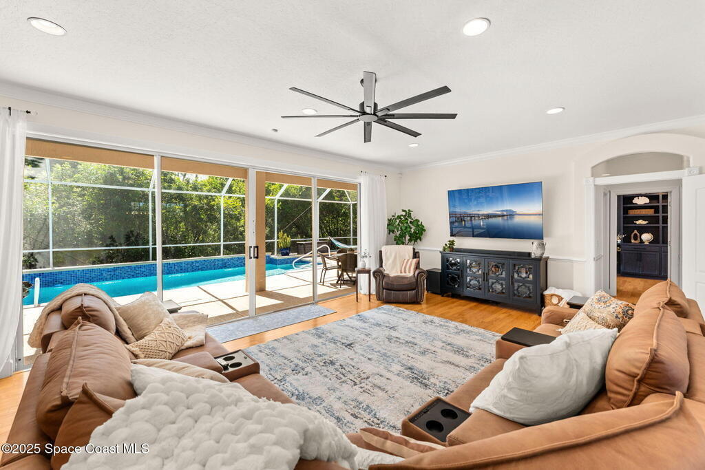 MOTIVATED SELLER!!! WELCOME to this gorgeous luxury family-friendly home located in the Baytree Golf Community! Built in 2001, this incredibly spacious home is just under 4,000 sq ft of living and over 4600 sq ft in TOTAL! The home features stunning updates throughout with a custom office and playroom that could act as a 6th bedroom! Through the front double doors, you're greeted with grand ceilings, hardwood floors, and formal dining that flows directly into the living area with an open view of the back screened lanai and solar heated pool! The large sliding glass doors create an indoor/outdoor experience overlooking a Nature Preserve that makes for a private oasis. The kitchen features granite countertops, custom cabinetry, and a serving window for fun and easy outdoor dining! Upstairs features brand new carpet, an elegant primary suite, 2nd office, cozy seating areas, an extra large bedroom for potential in-law-suite and refreshing views from every bedroom!